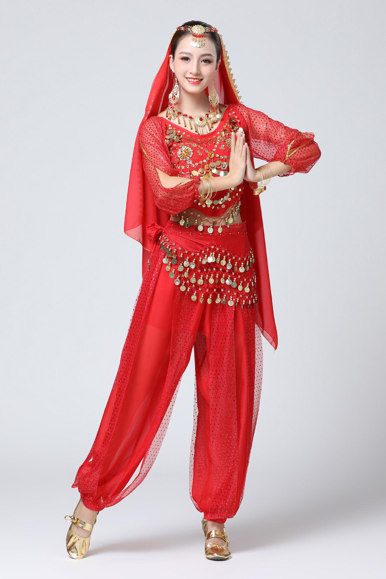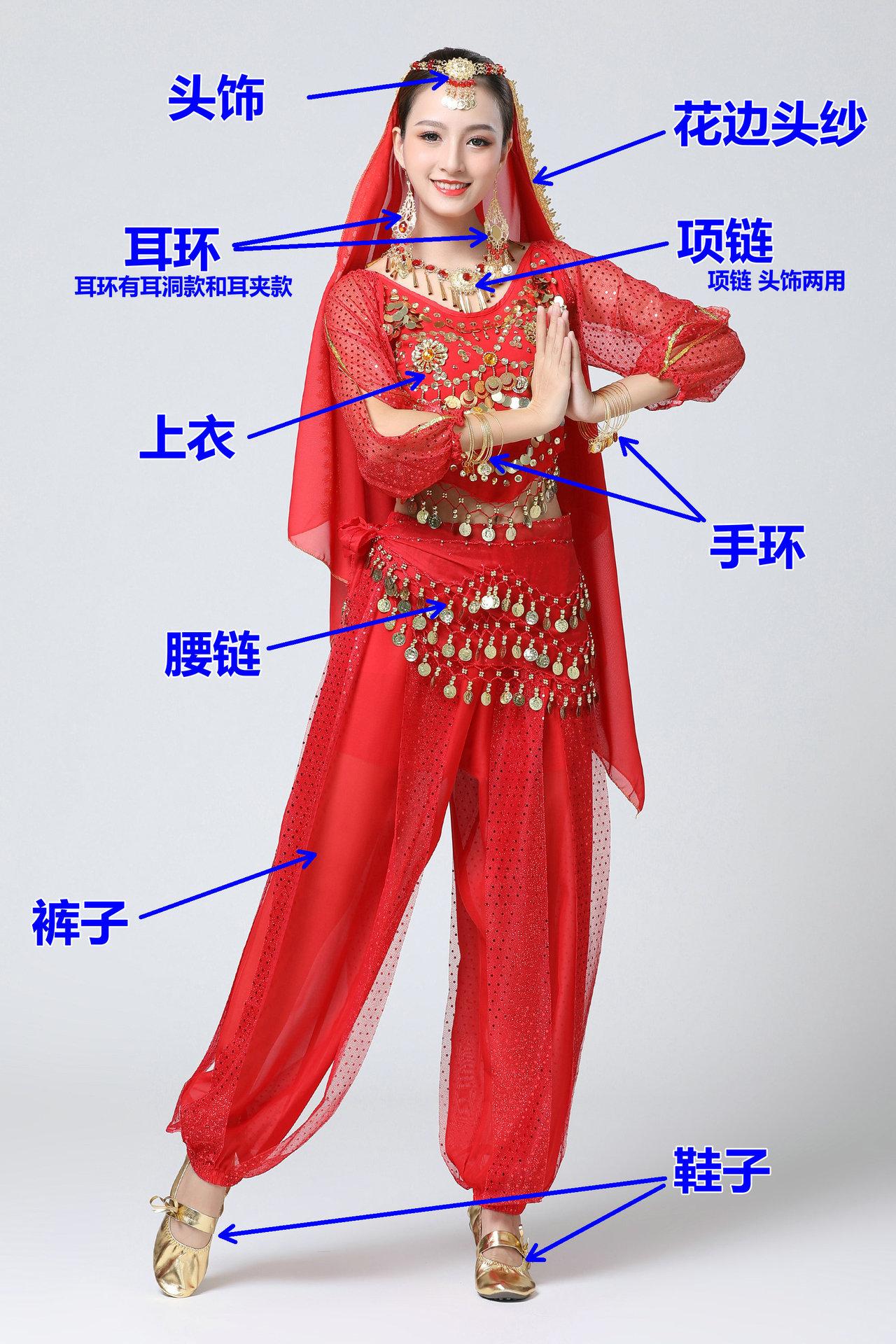 Top + pantalón + tocado + velo+Cadena de cintura+ 2 paquetes de pulseras