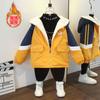 Procesamiento y Personalización de Ropa de Invierno para Niños 2025 Nuevo Estilo Coreano Chaqueta con Capucha Estampada con Letras para Niños y Niñas Chaqueta de Algodón Forrada con Vellón