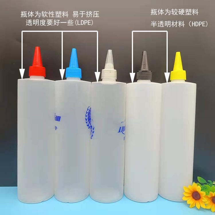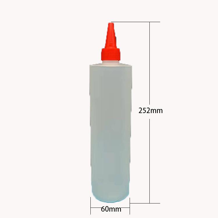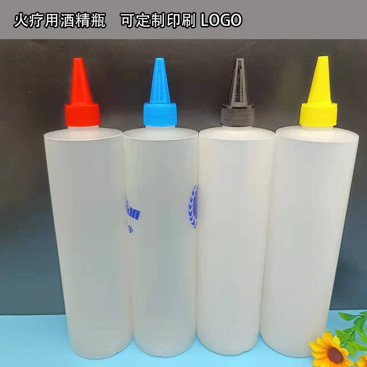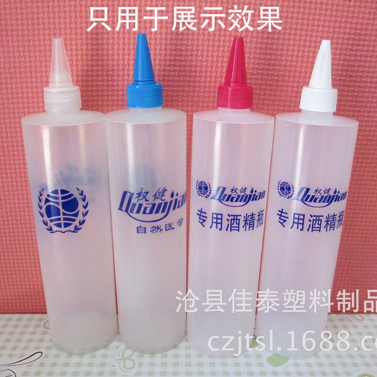 Fabricante en stock suministro 500m botella de boca puntiaguda botella de alcohol para terapia de fuego material suave transparente botella de boca puntiaguda