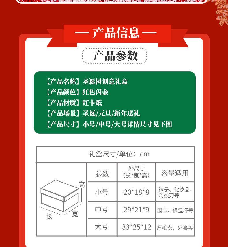 Christmas tree folio box; small size: gift box 20*18*8cm, Christmas tree folio box; medium size: gift box 29*2...