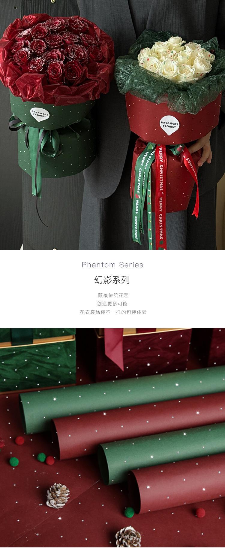 Papel de regalo de la serie fantasma de Navidad, bolsa de diamantes de lujo ligera con flores, papel de flores de alto sentido, materiales de embalaje DIY al por mayor