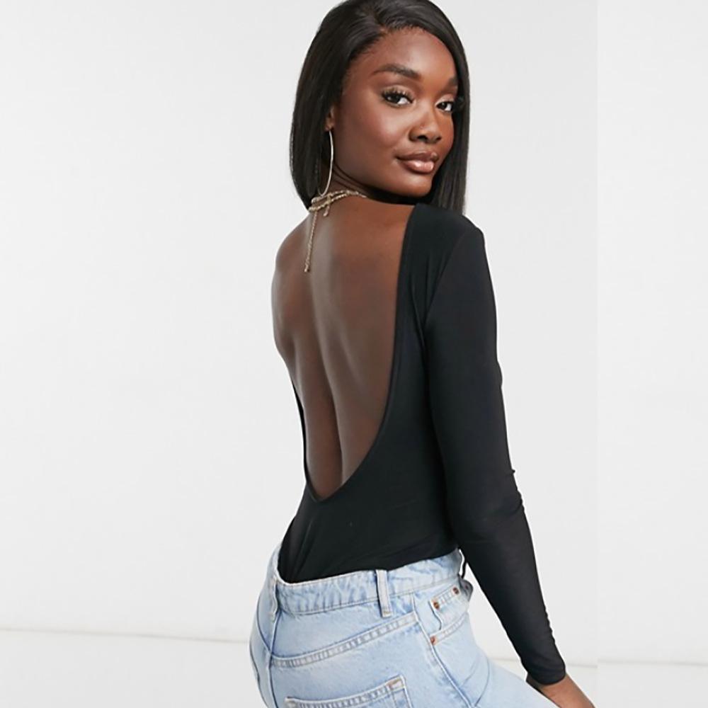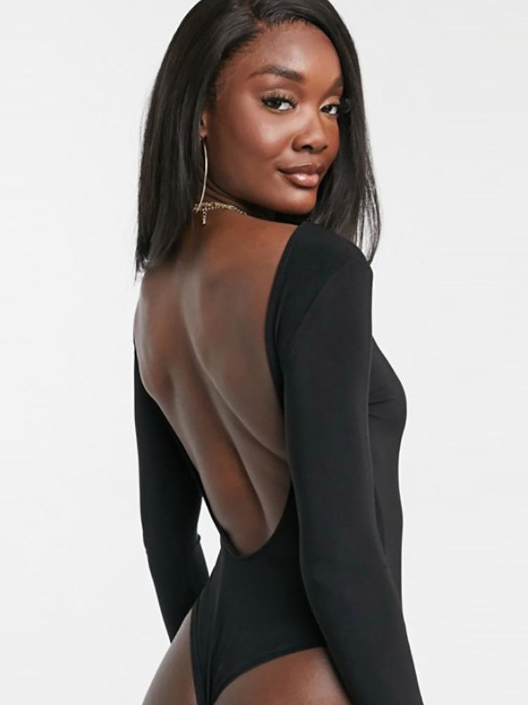 Mallas Negras Fitness Sexy para Mujer Pantalones de Manga Larga sin Espalda Pantalones para Mujer Calados Ajustados Europeos y Americanos