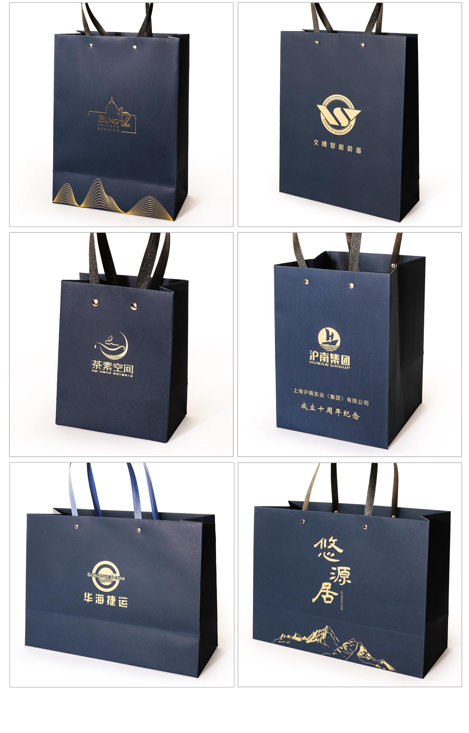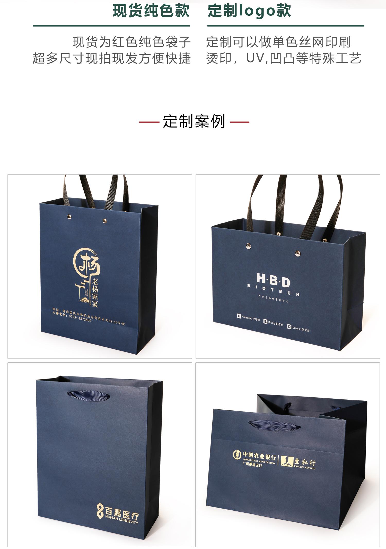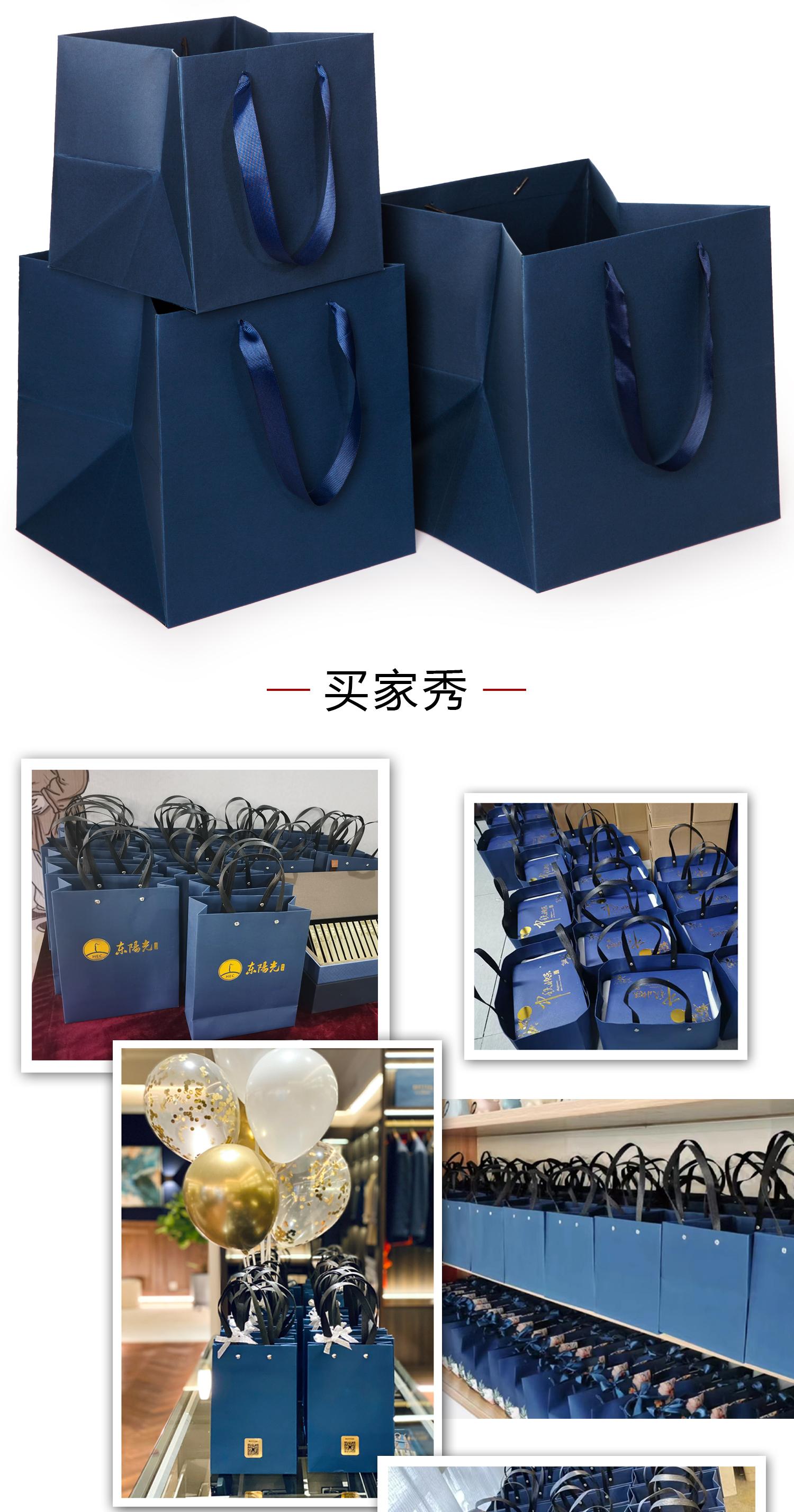 Bolsa de papel azul oscuro, embalaje para ropa, regalo, bolso, bolsa de papel grueso de alta calidad, impresión personalizada de logotipos.