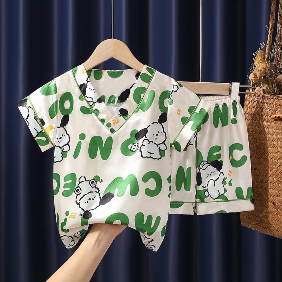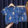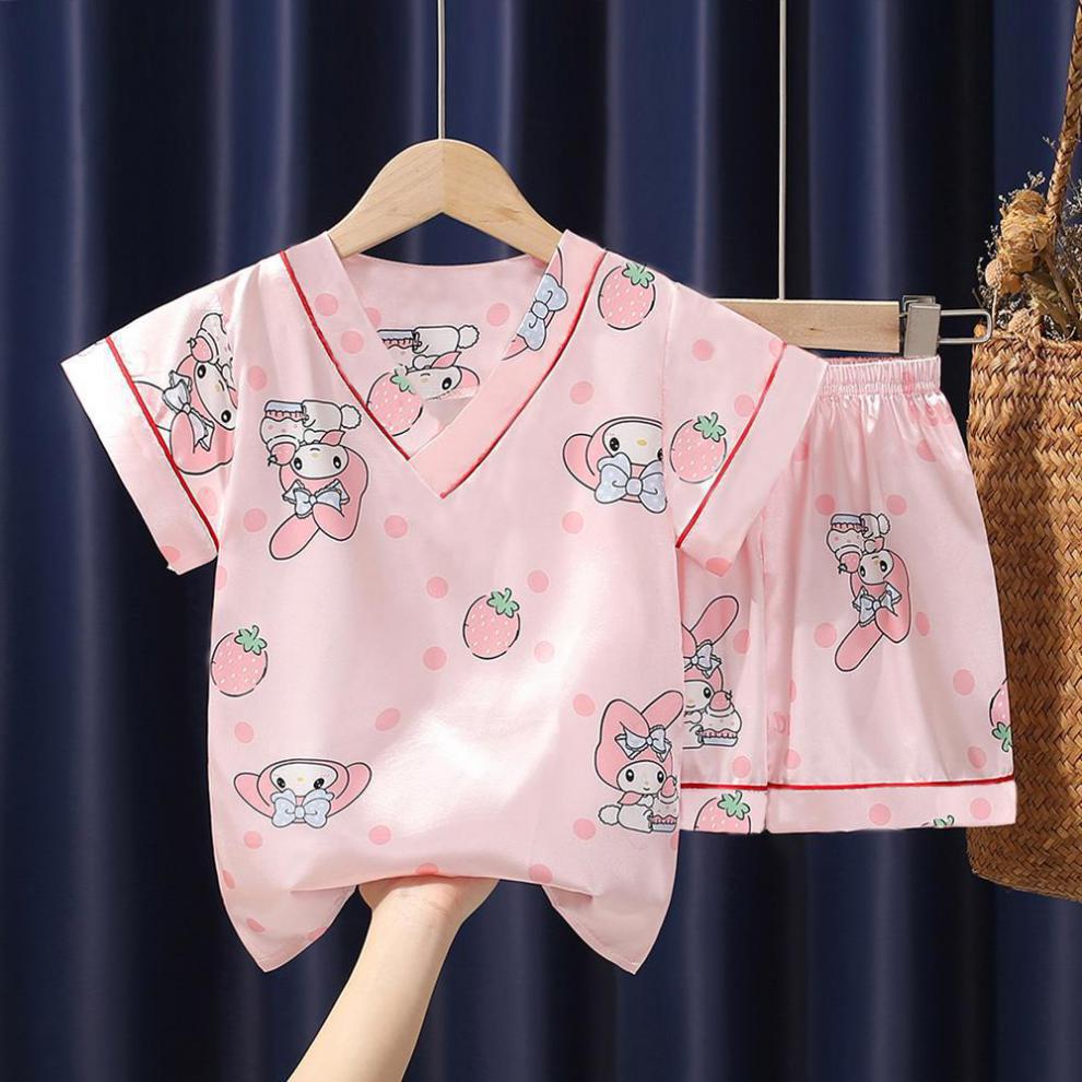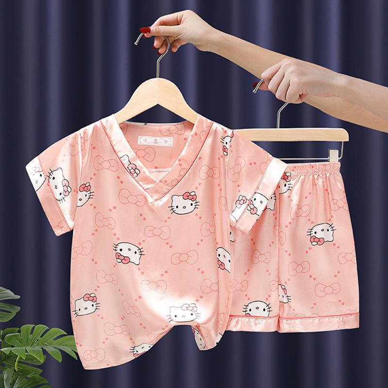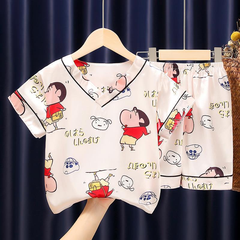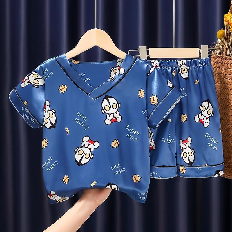 Pijamas para niños, verano 2024, nuevos pijamas de seda de hielo para niñas, finos, de manga corta, talla mediana-grande, para primavera y otoño.