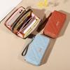Nuevo bolso de mano de pulsera de color sólido para mujer, cartera larga coreana con cremallera, cartera de gran capacidad, venta al por mayor