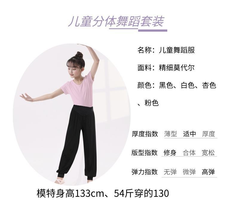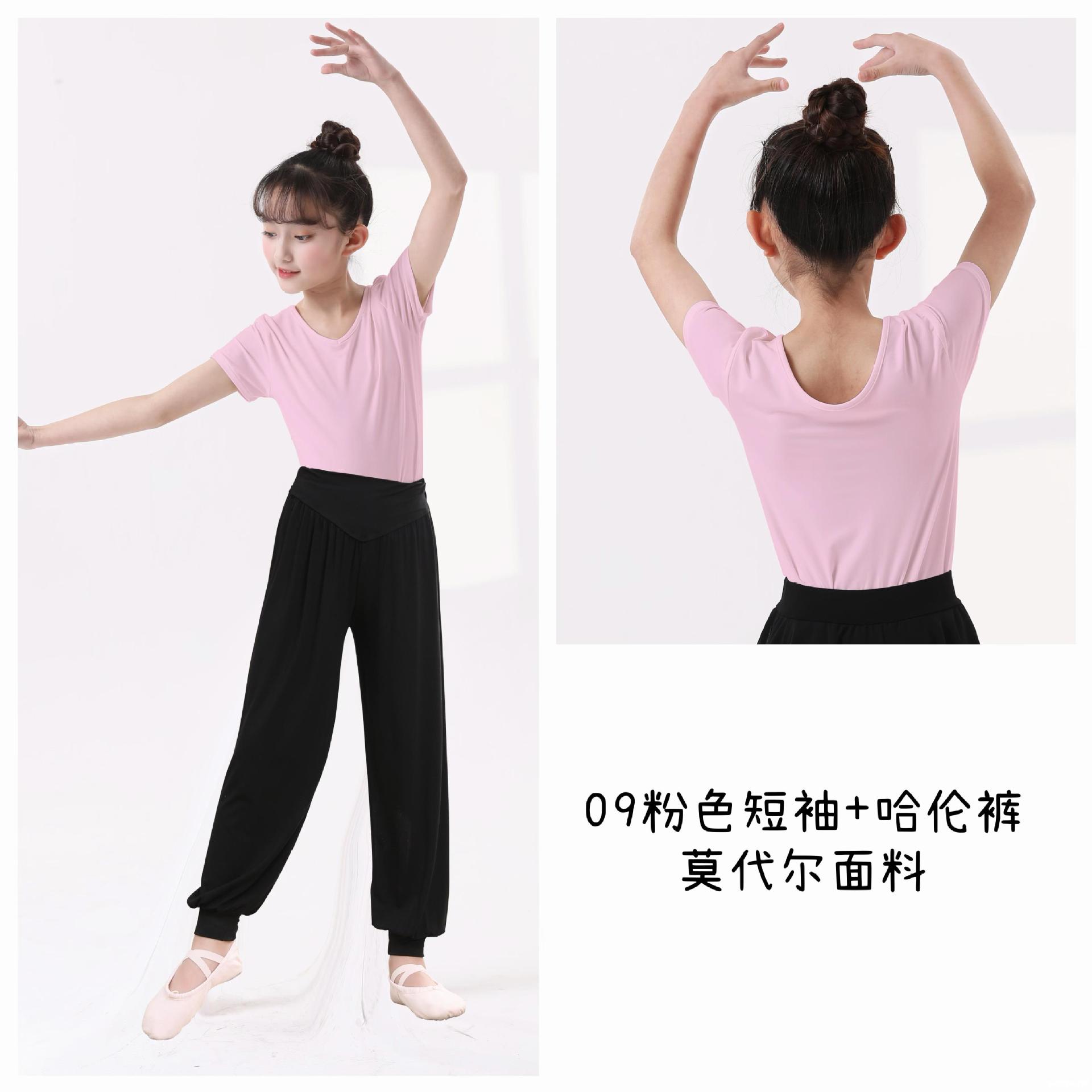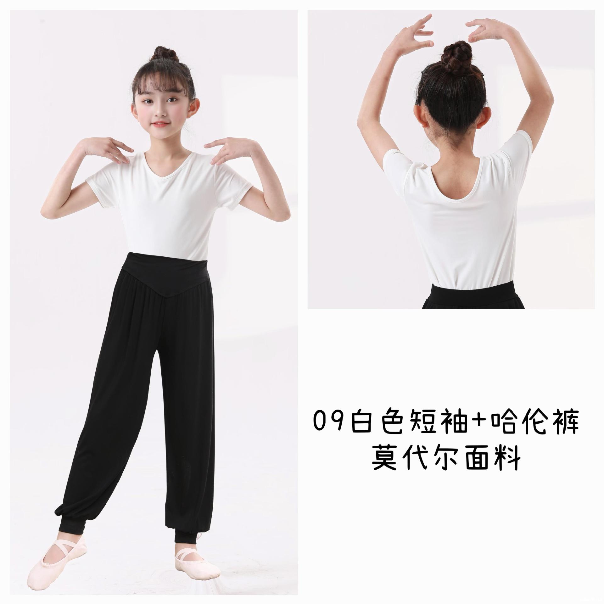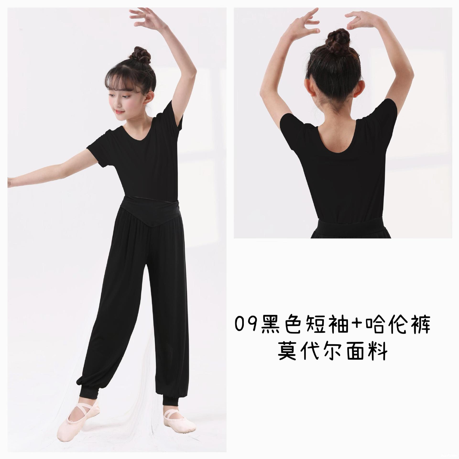 Top de Danza para Niñas Ropa de Danza de Manga Corta Modal Fina Ropa de Práctica para Niños Ropa de Danza China Negro