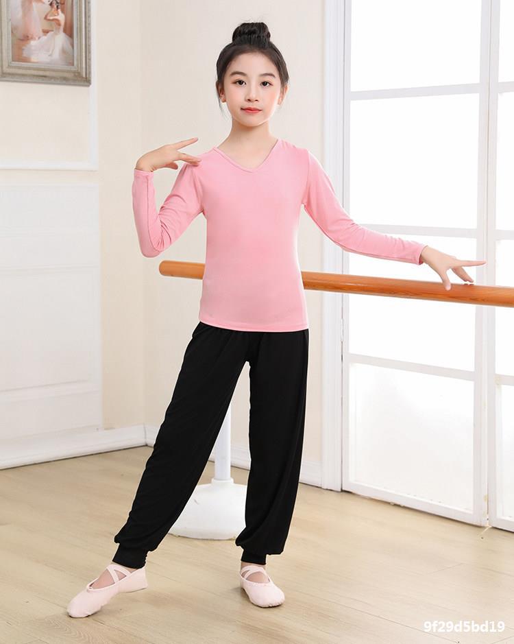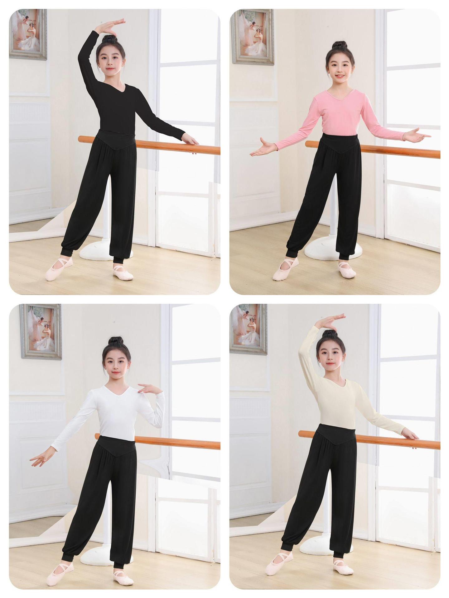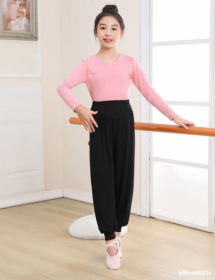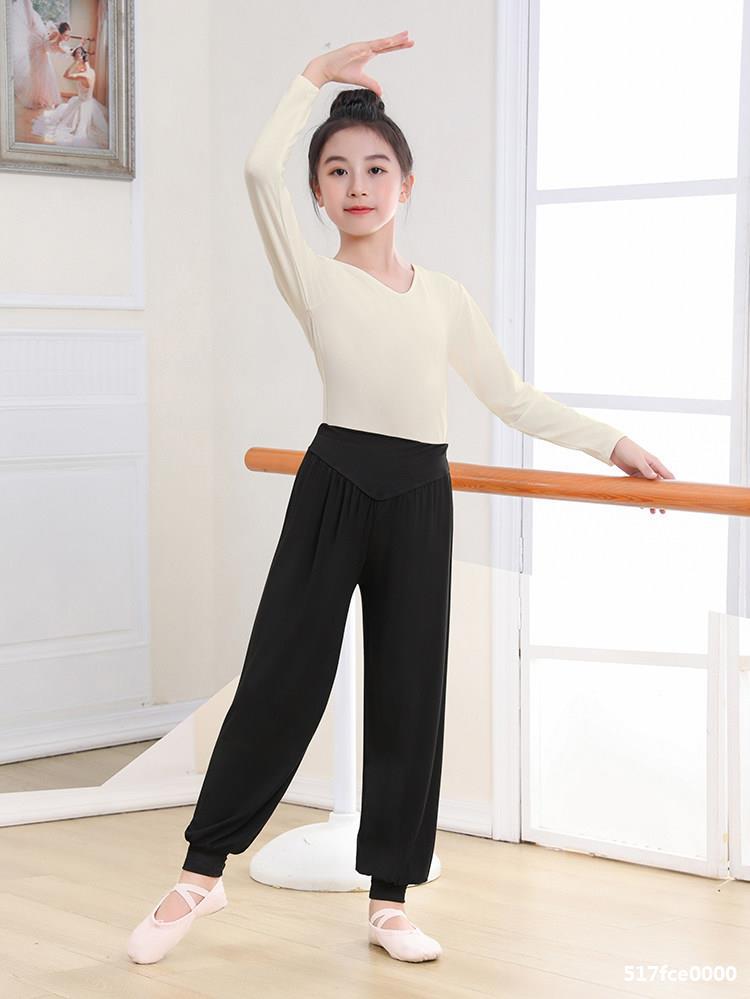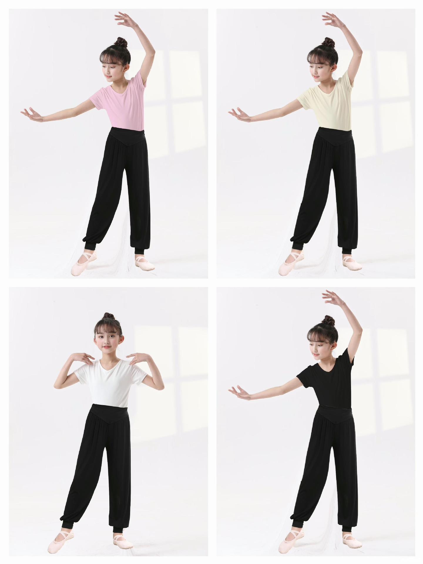 Top de Danza para Niñas Ropa de Danza de Manga Corta Modal Fina Ropa de Práctica para Niños Ropa de Danza China Negro
