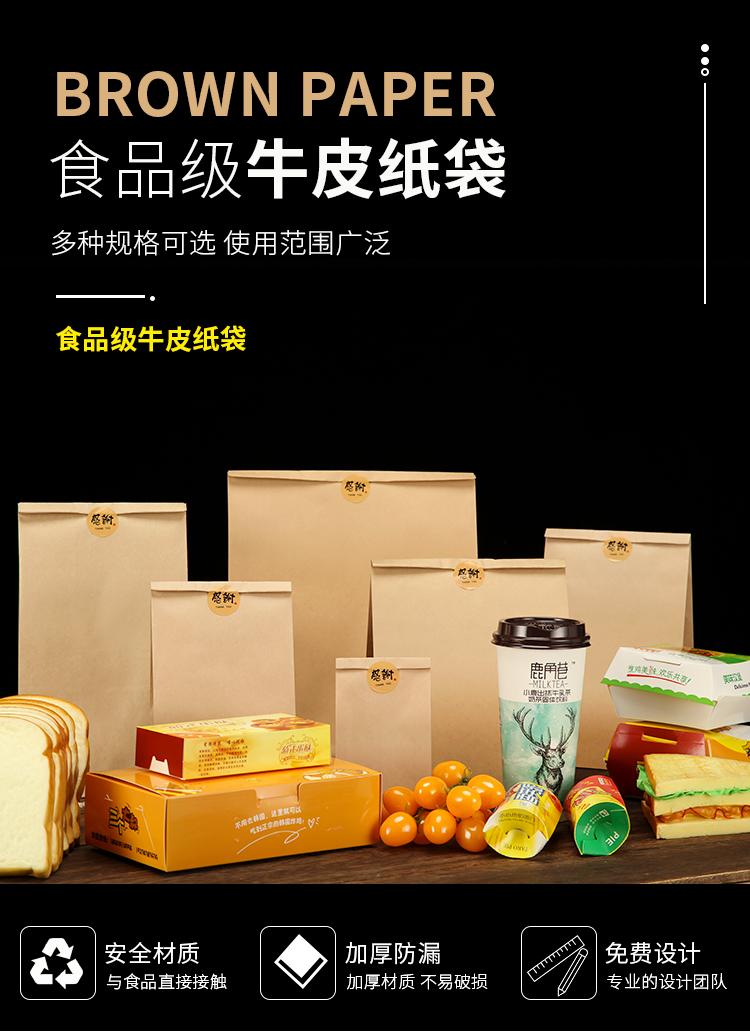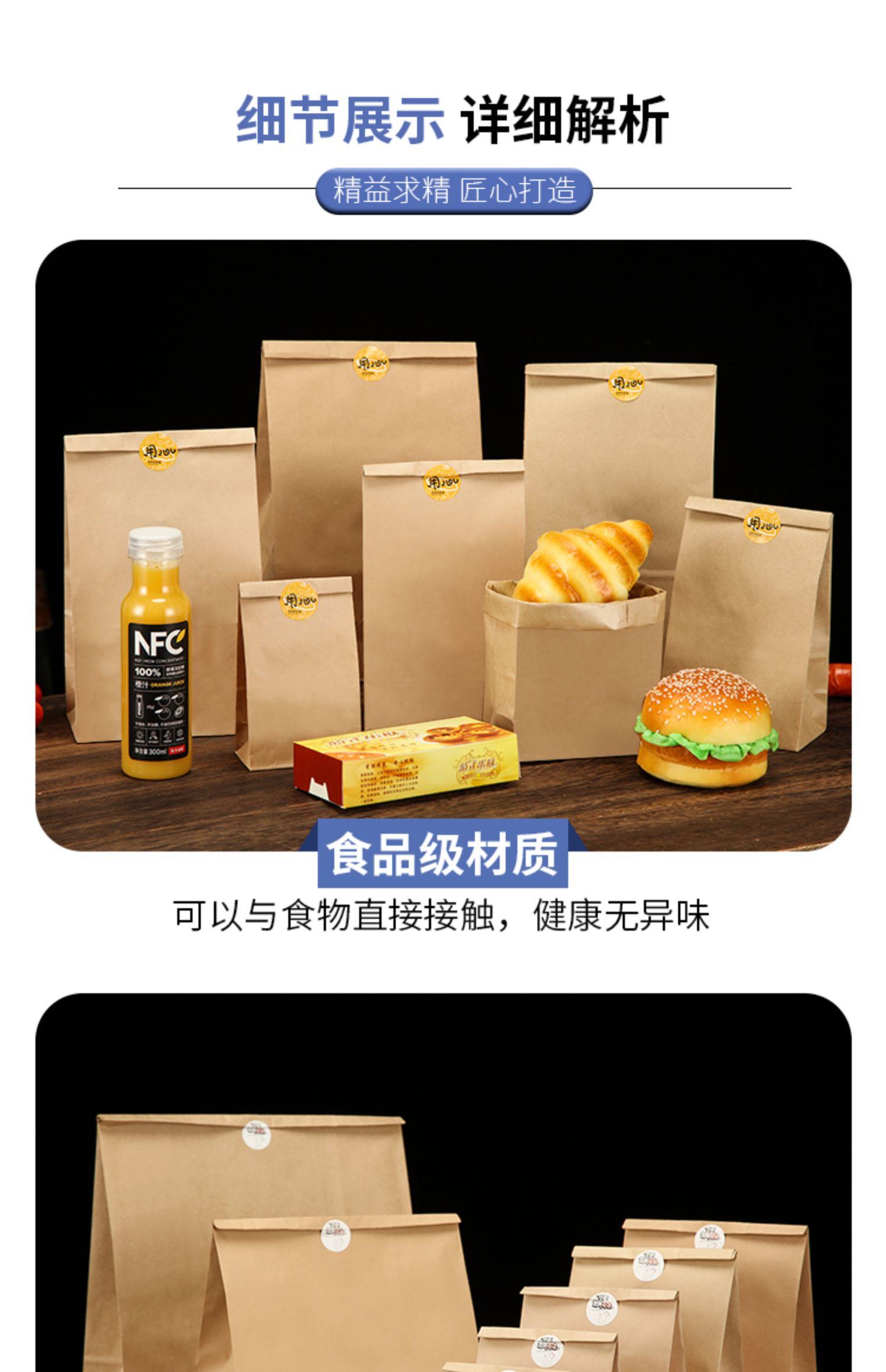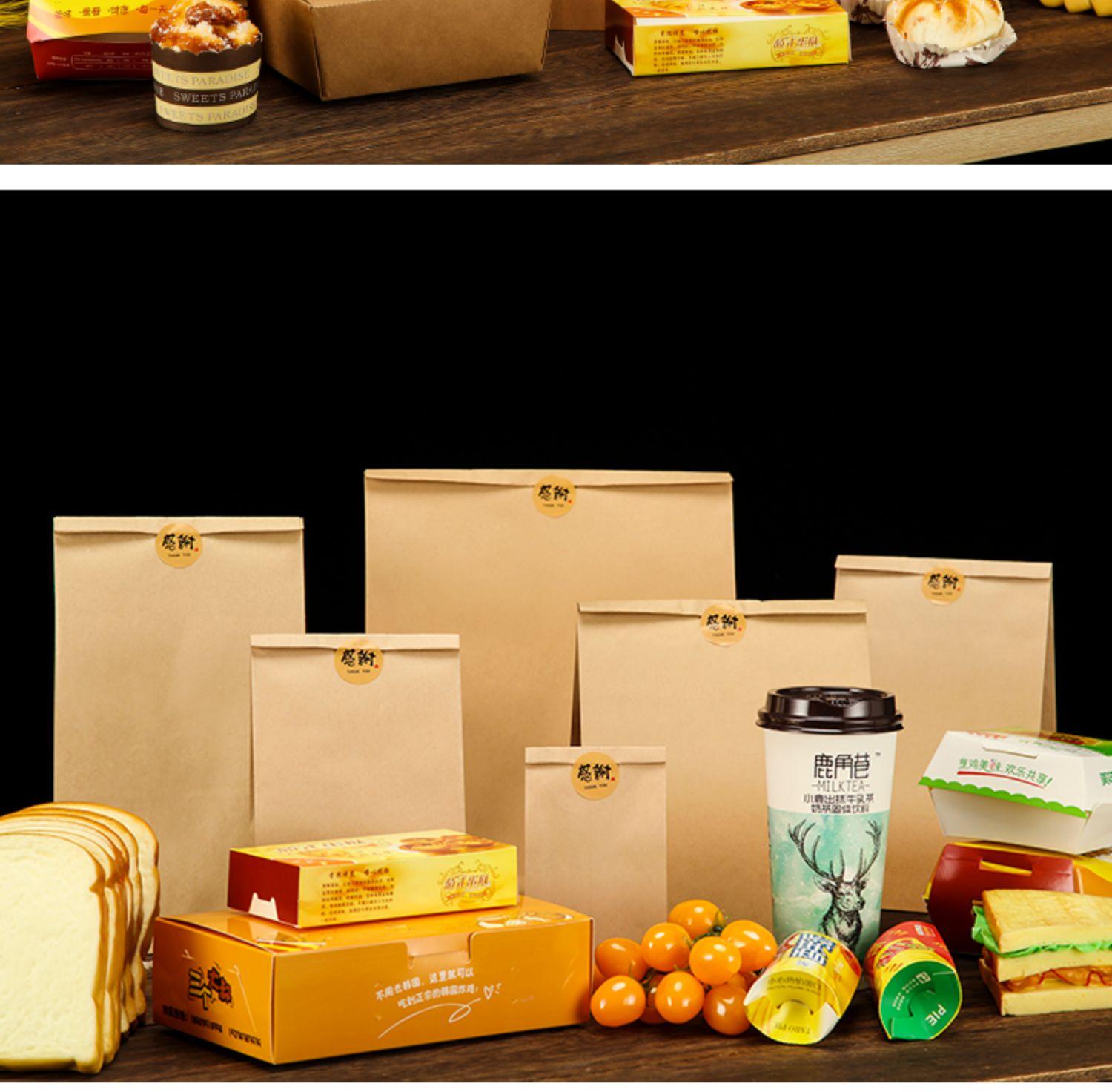 Bolsa de papel kraft engrosada, personalizada, para alimentos horneados, desechable, resistente al aceite, para hamburguesas y comida para llevar.