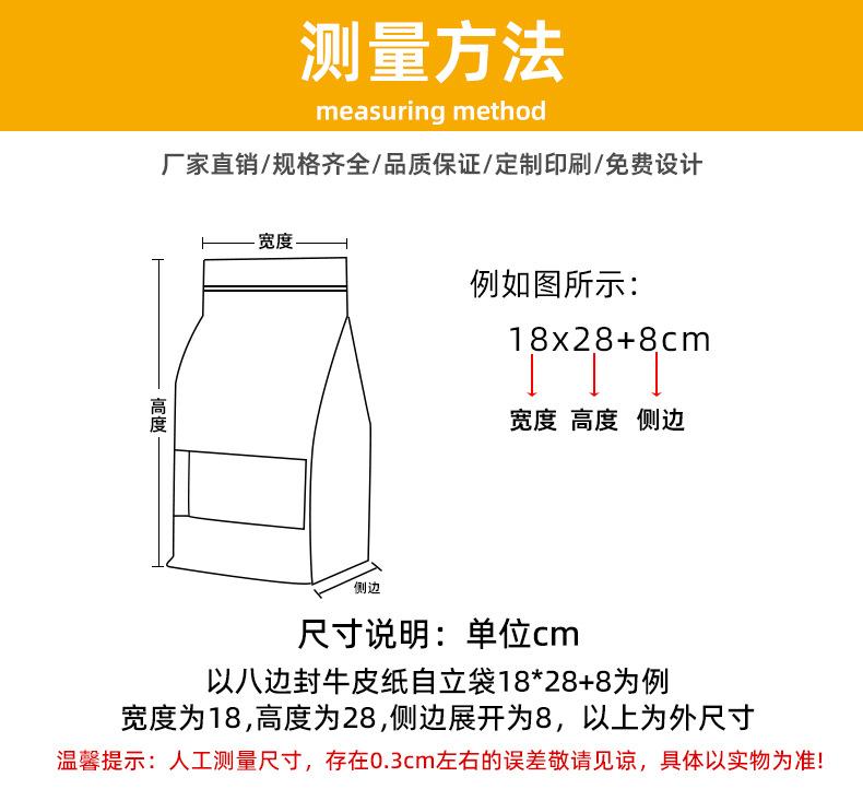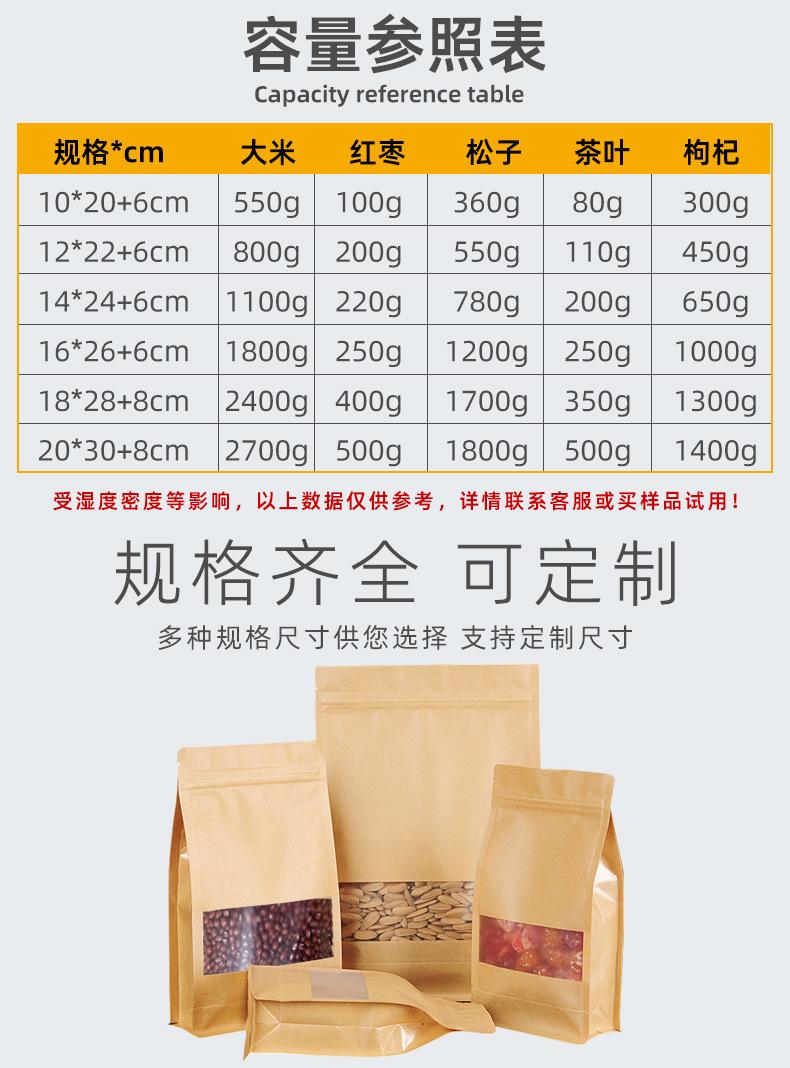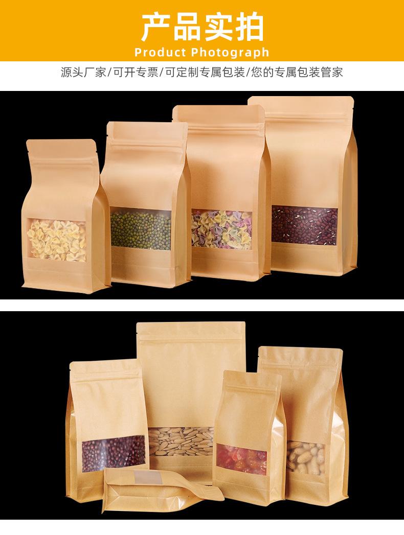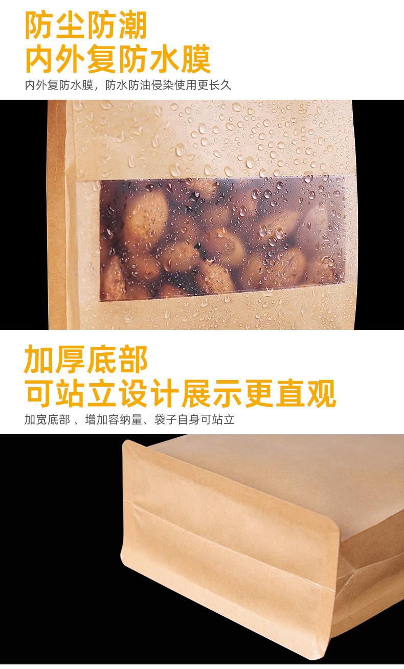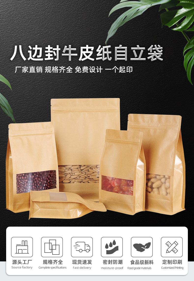 Bolsa sellada de ocho lados, bolsa de papel kraft con ventana para té, bolsa autoportante con autosellado, bolsa para envasado de alimentos secos de níspero, bolsa sellada al por mayor