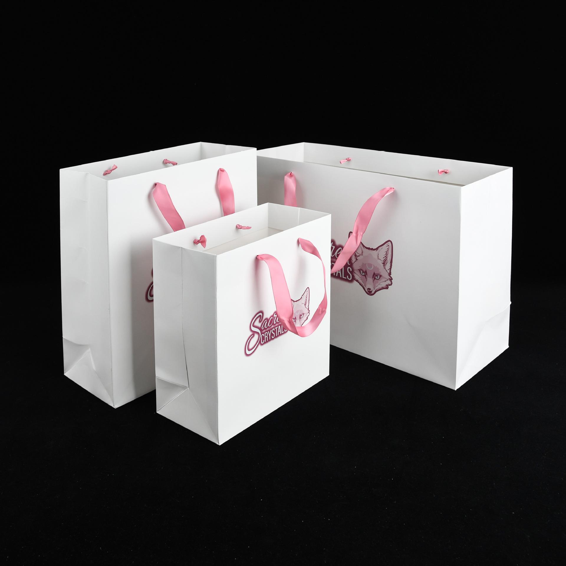 Bolsa de Regalo Hecha a Mano Bolsa de Compras para Ropa Bolsa de Papel Cartón Blanco Bolsa para Joyería de Negocios con Logotipo Impreso Fábrica de Origen