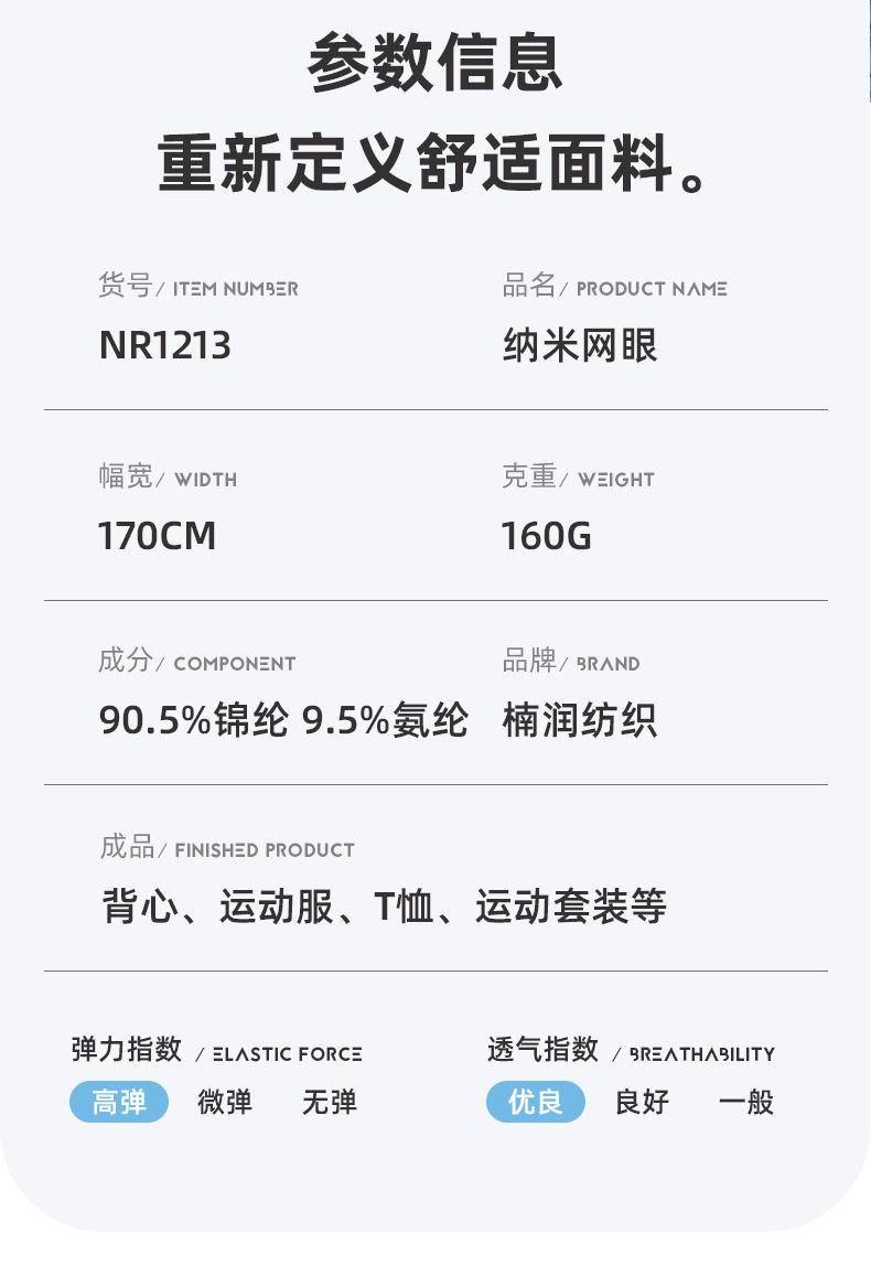 Tejido de Malla de Punto de Nailon de Alta Elasticidad Tejido por Urdimbre Elástico 160g Nano Venta al por Mayor Transpirable y Ligero