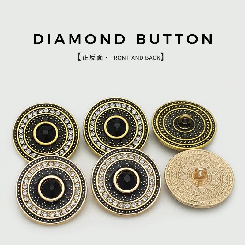 Botón de diamante de doble anilla de alta calidad para chaqueta de traje, suéter, hebilla decorativa, botón redondo de metal, botón de abrigo de piel