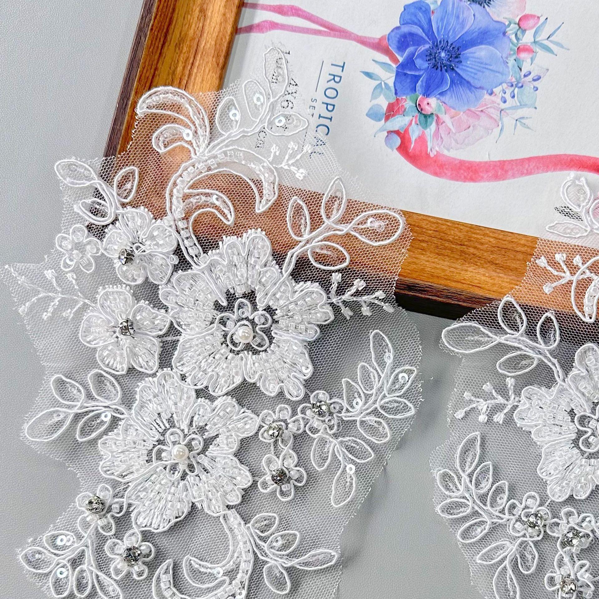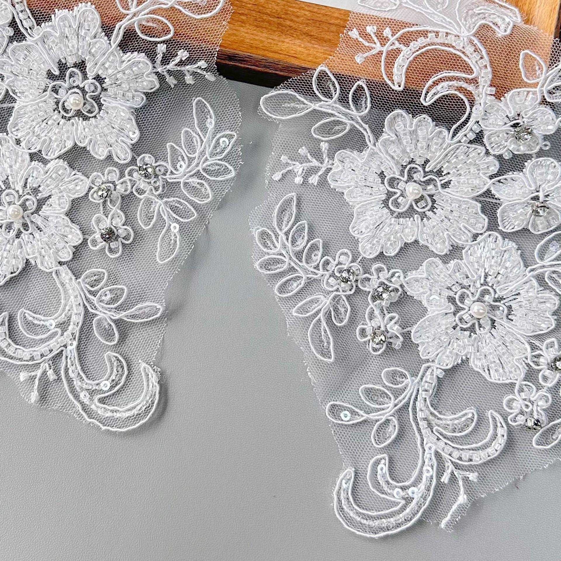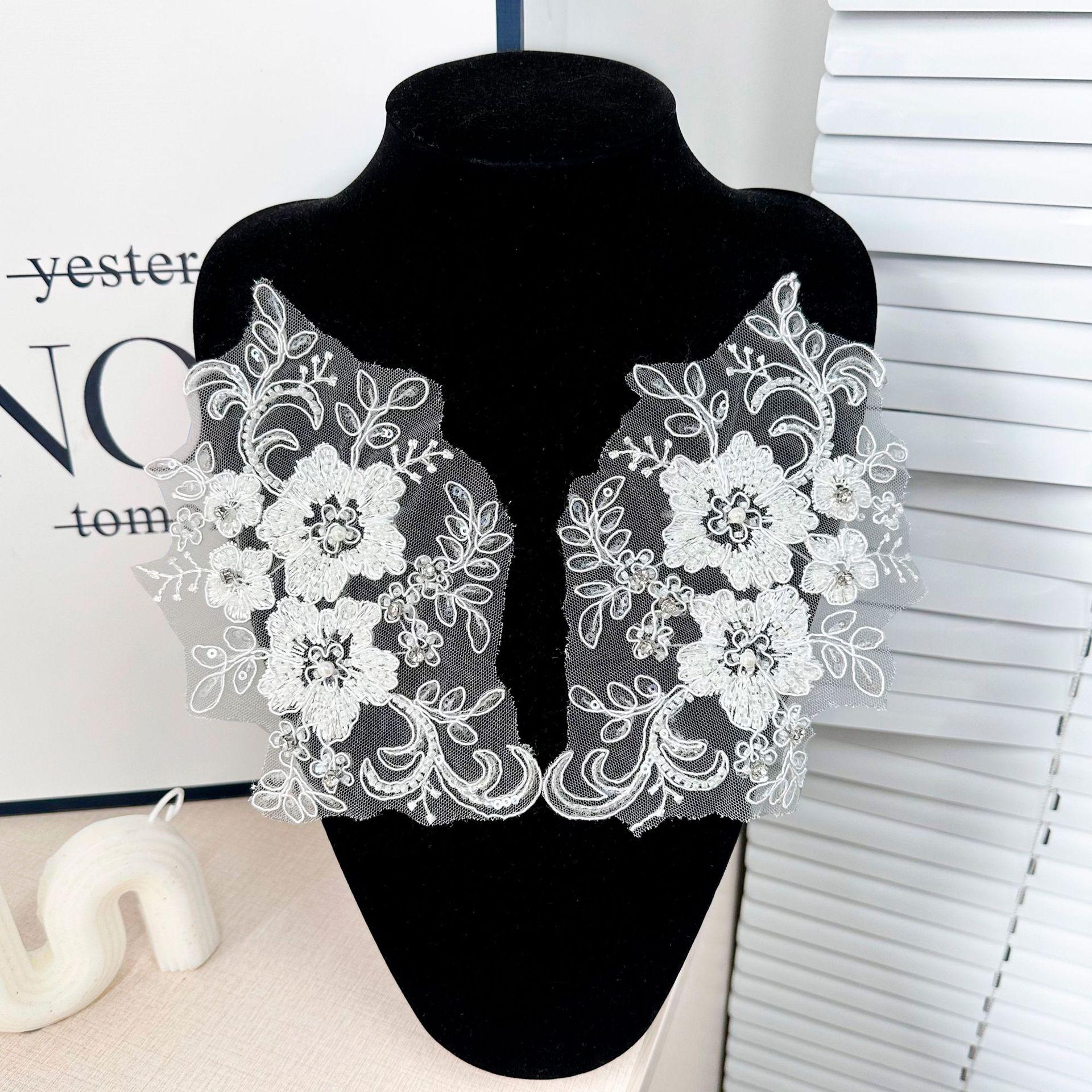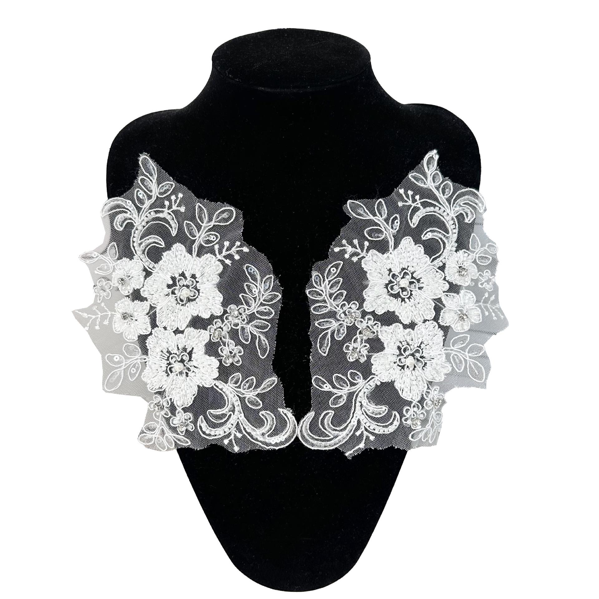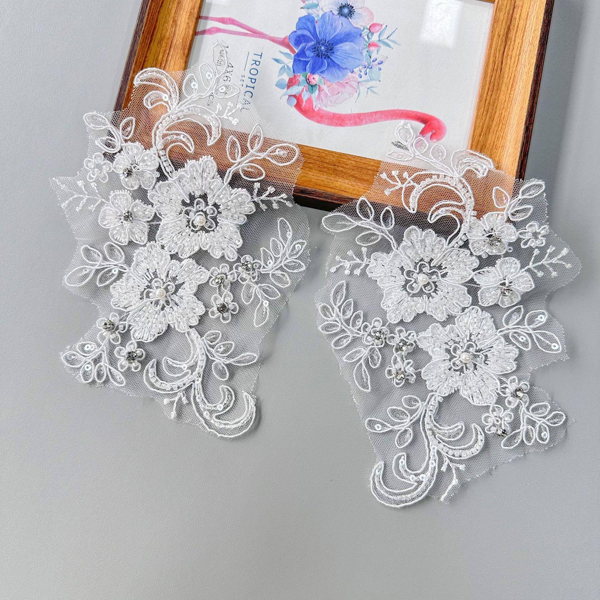 Venta al por mayor de pegatinas de tela de encaje tridimensional blanco para ropa, cheongsam, vestido, parches decorativos, accesorios
