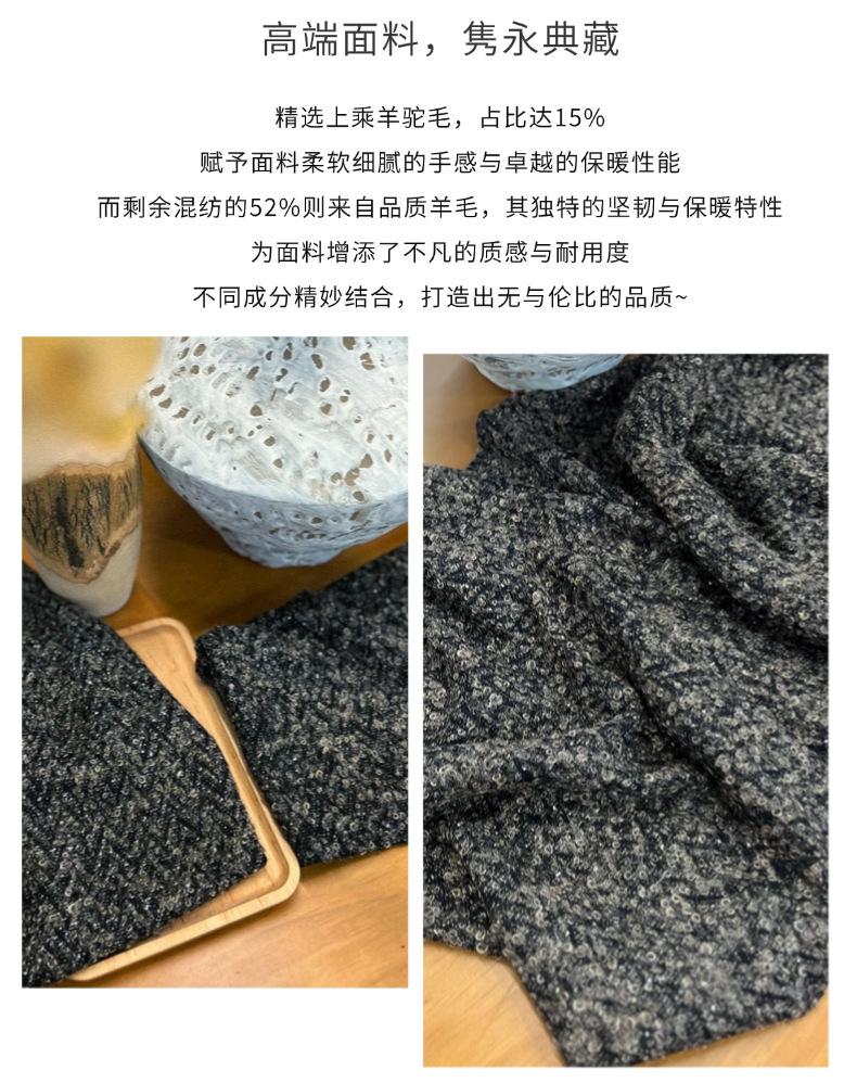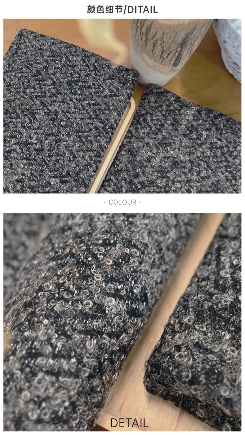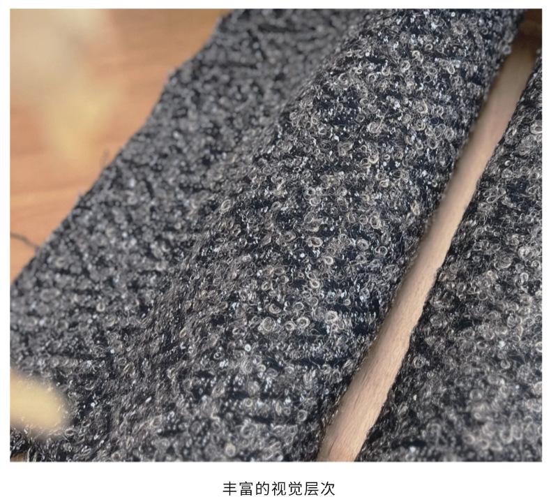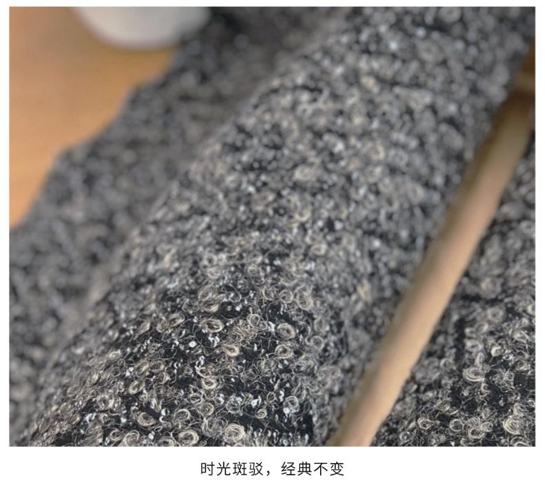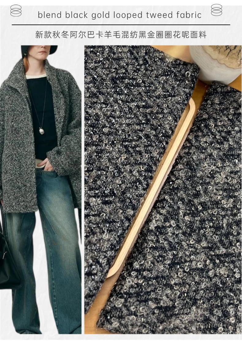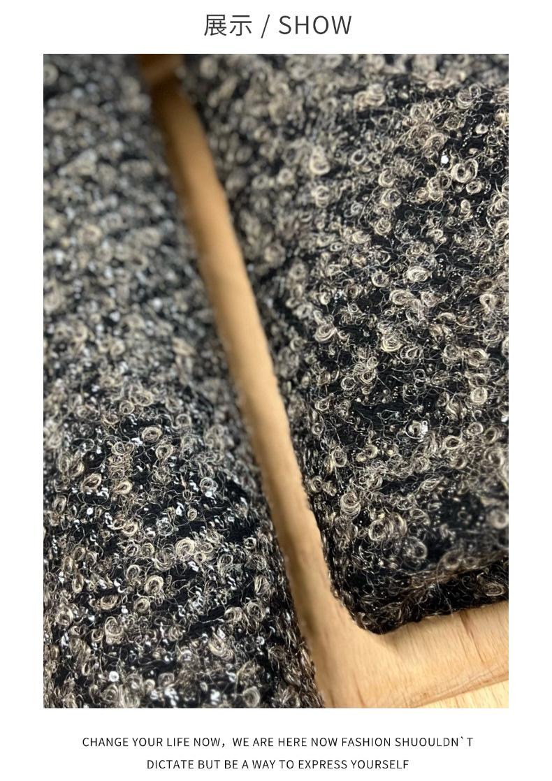 Otoño e Invierno Nuevo Negro Dorado Círculo Bicolor Mezcla de Lana de Alpaca Textura Tejida Abrigo Floral Tela de Moda