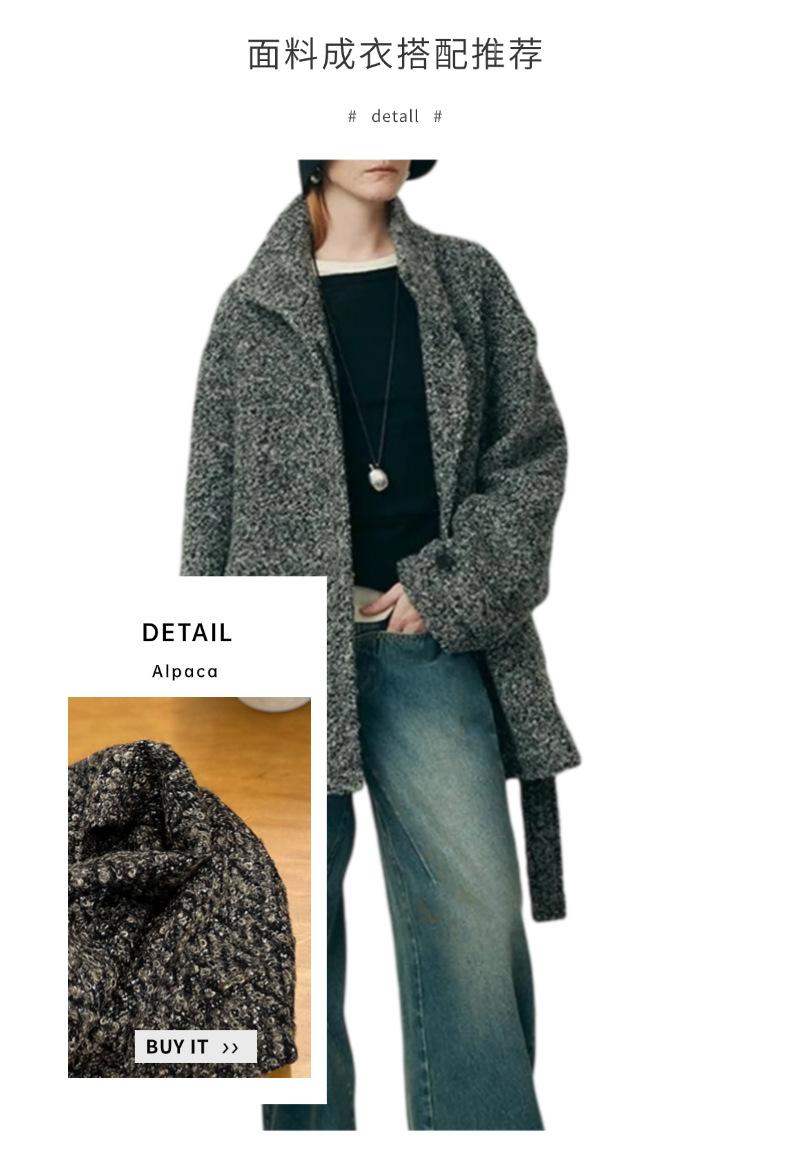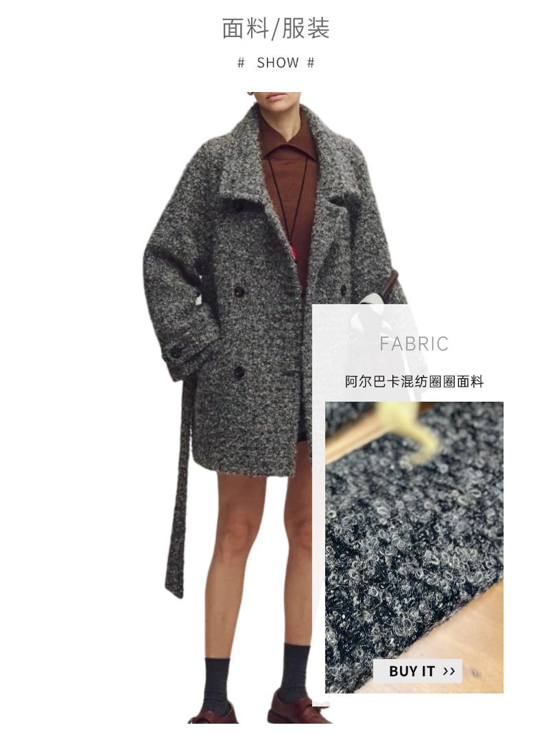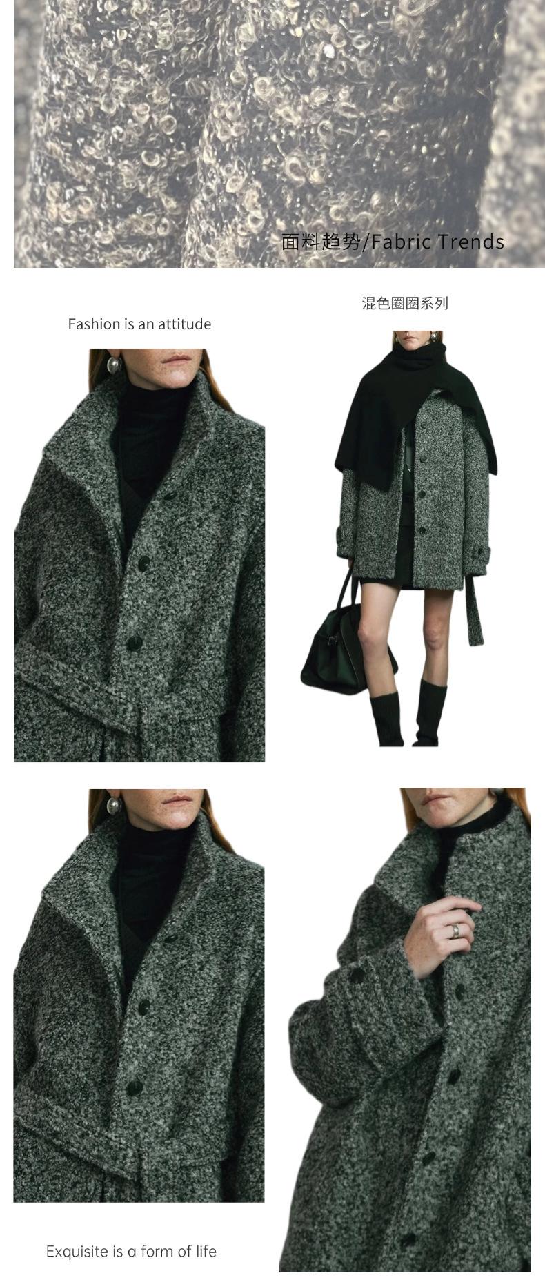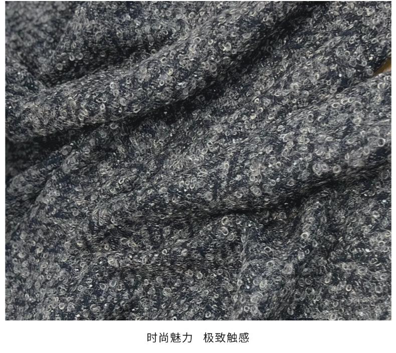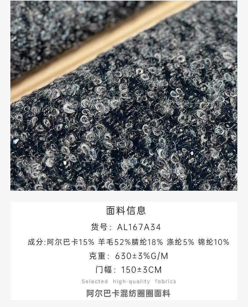 Otoño e Invierno Nuevo Negro Dorado Círculo Bicolor Mezcla de Lana de Alpaca Textura Tejida Abrigo Floral Tela de Moda