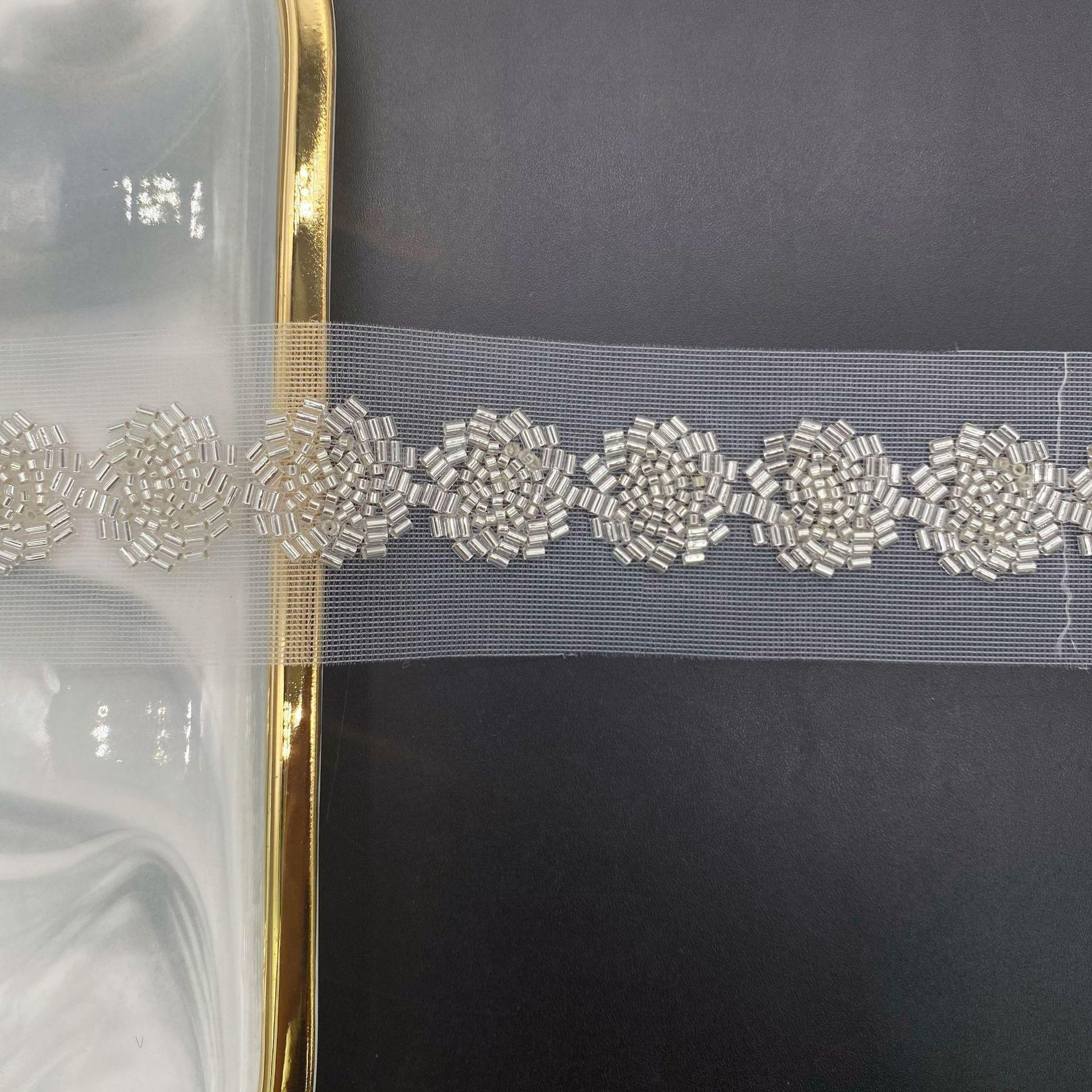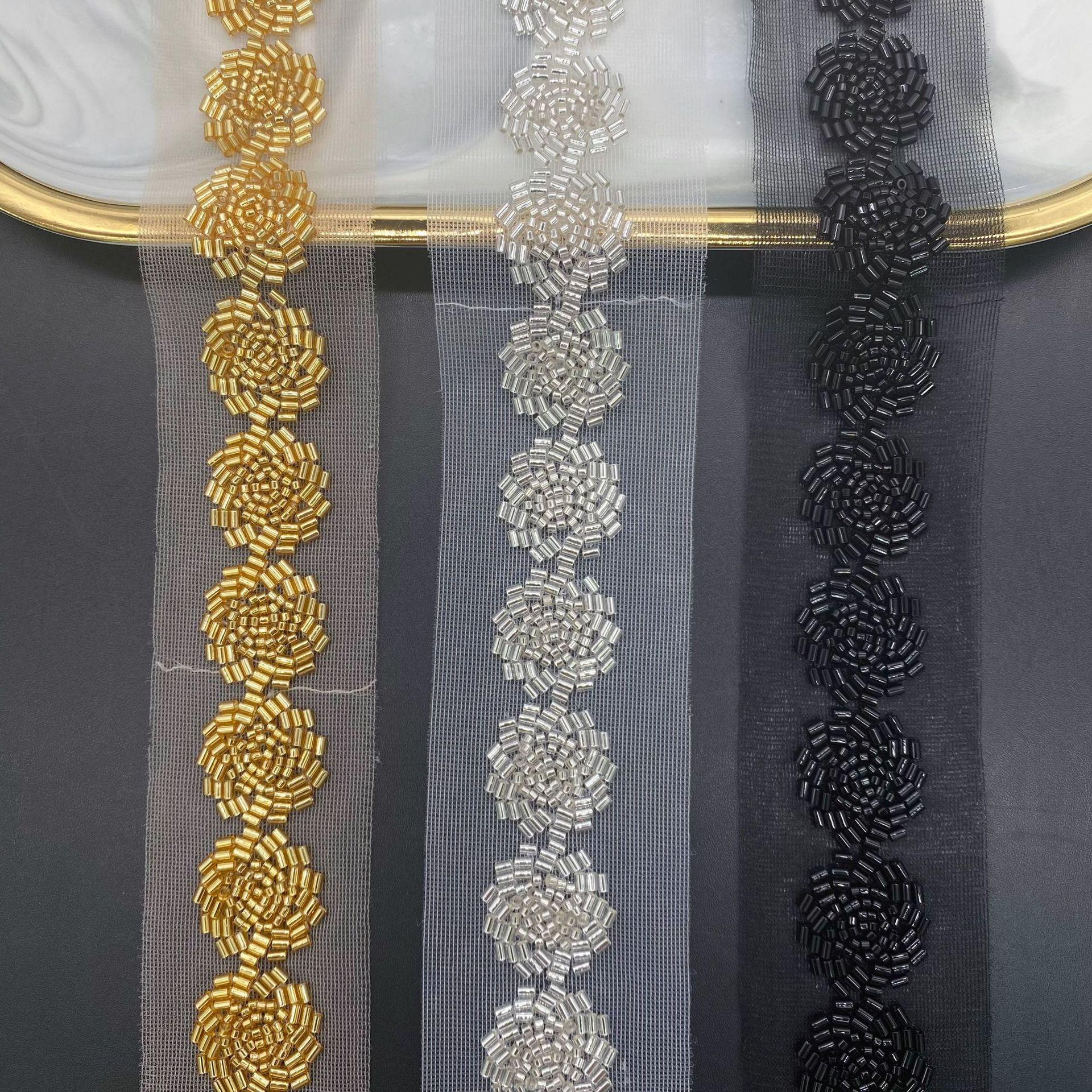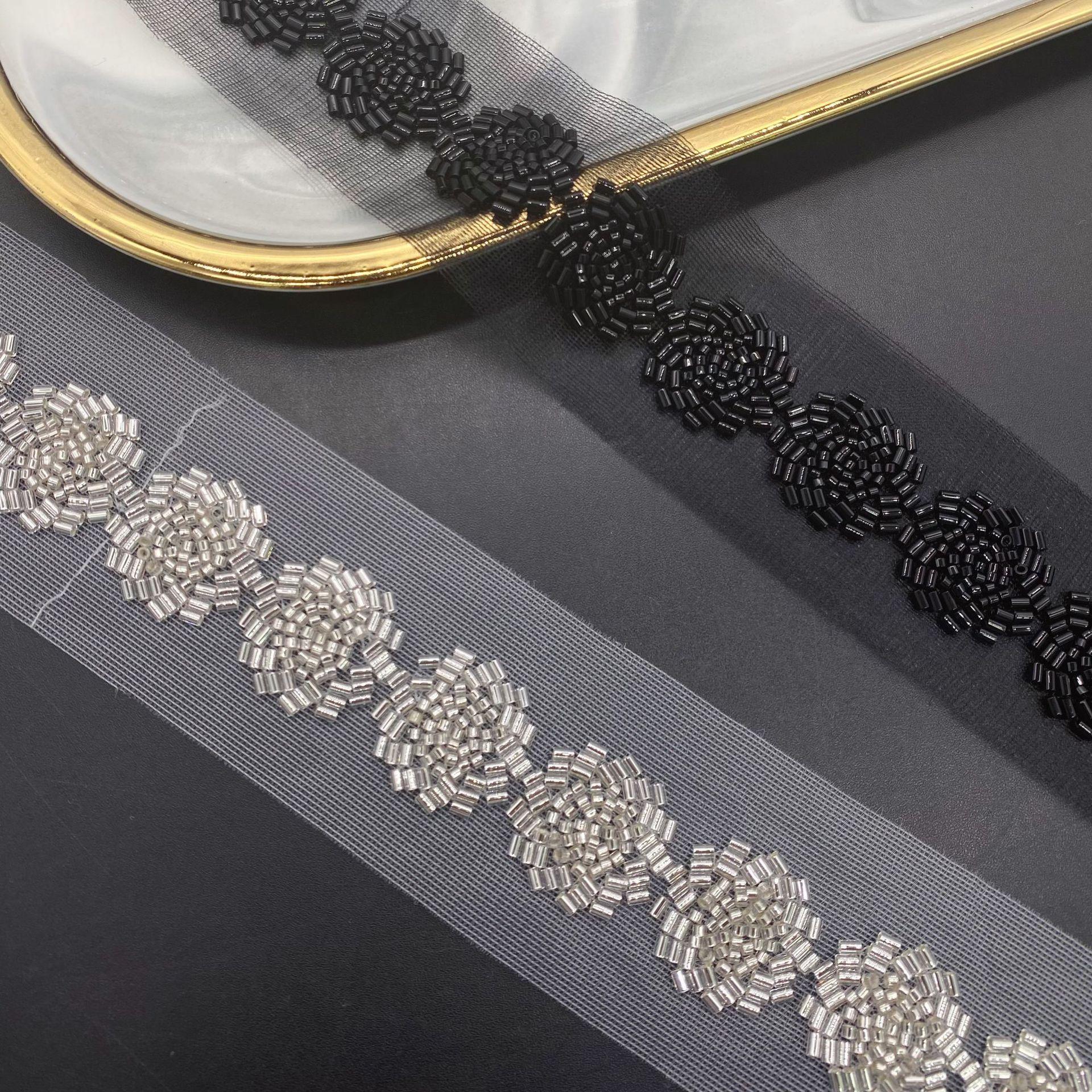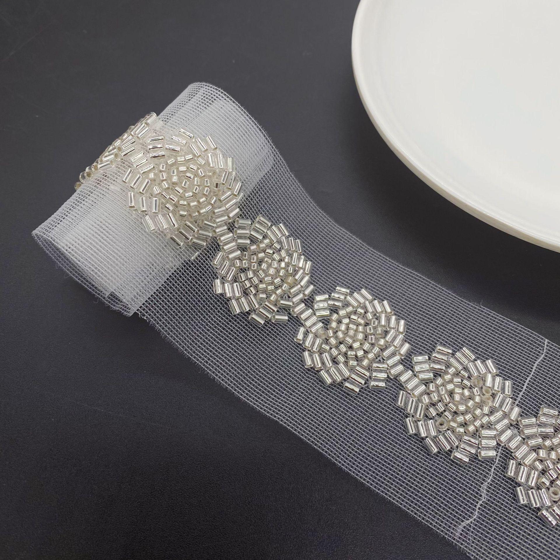 Malla bordada con cuentas, código de barras, industria pesada, perla, ropa infantil, prendas de vestir, cuello, puños, accesorios decorativos, encaje