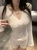 Suéter sexy de manga larga con cuello en V para mujer, otoño e invierno, básico, ajustado, con interior elástico, ajustado, base tipo camisa.