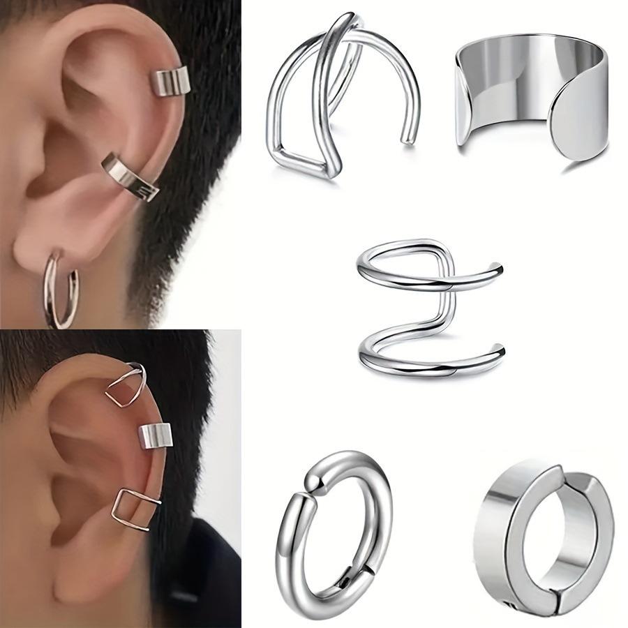 Pendientes de clip de oreja de acero inoxidable de 5 piezas sin orificio para la oreja, combinación de plata y negro, oferta especial de Amazon.