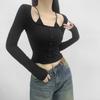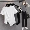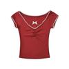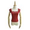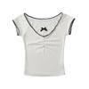 2024 Verano Nuevo Estilo Dulce y Caliente Camiseta de Encaje de Manga Corta para Mujer Estilo Americano Falso de Dos Piezas Ajustada con Lazo