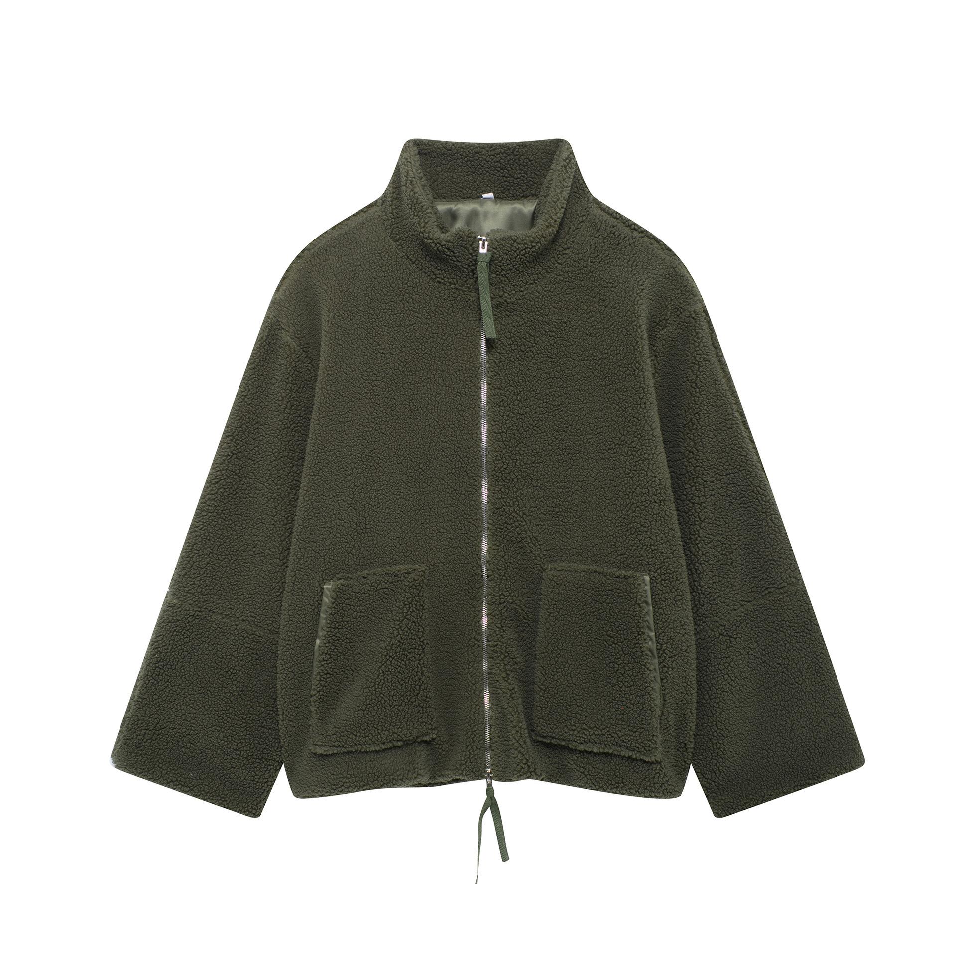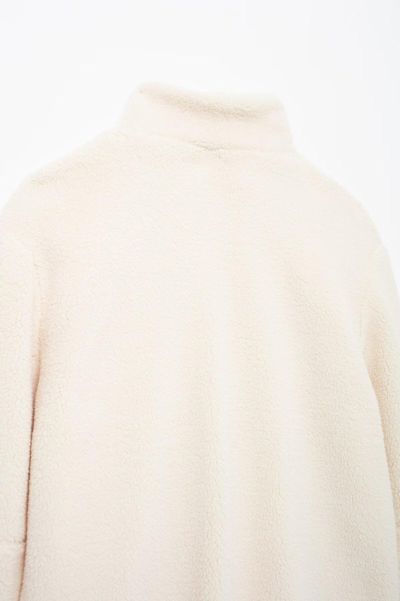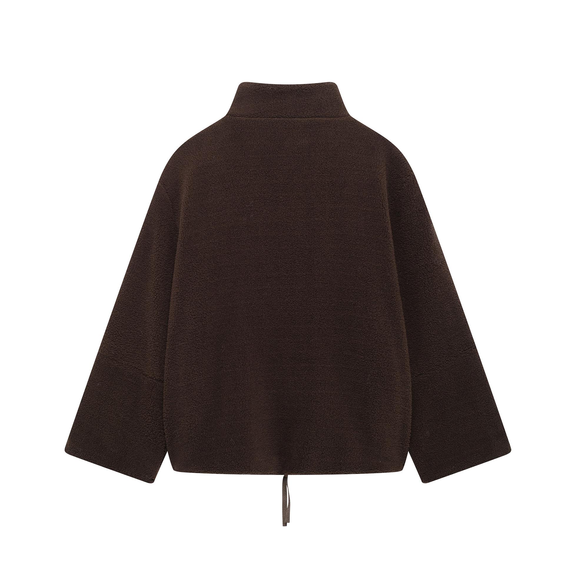 Estilo Europeo y Americano Transfronterizo Otoño e Invierno Ropa Europea y Americana Color Puro Estilo Holgazán Cuello Alto de Lana de Cordero Abrigo de Lana A65002