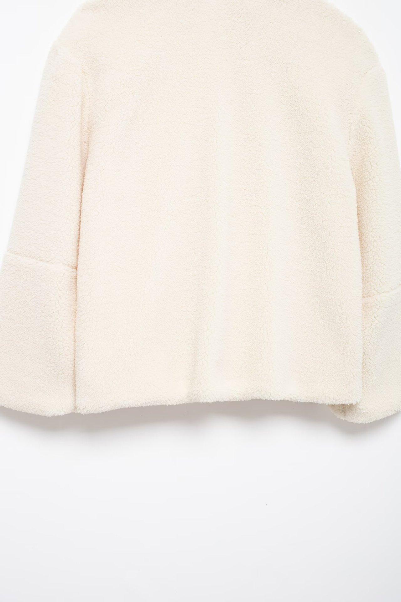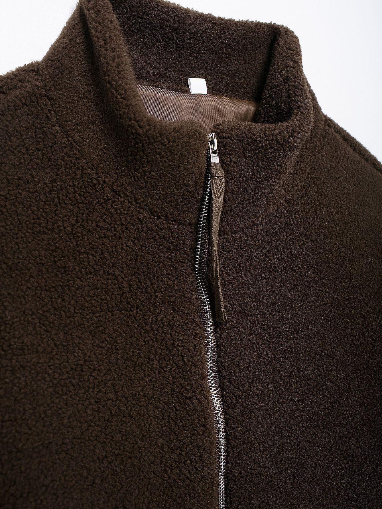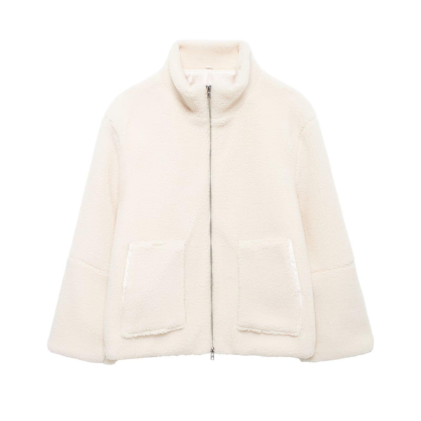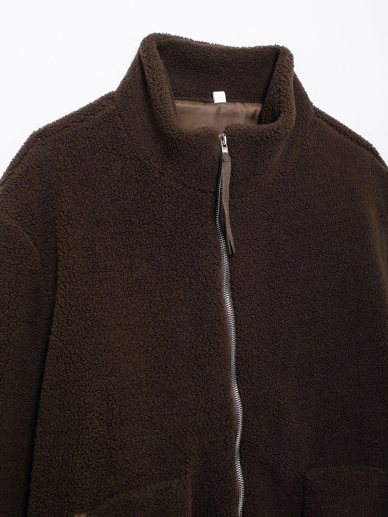 Estilo Europeo y Americano Transfronterizo Otoño e Invierno Ropa Europea y Americana Color Puro Estilo Holgazán Cuello Alto de Lana de Cordero Abrigo de Lana A65002