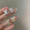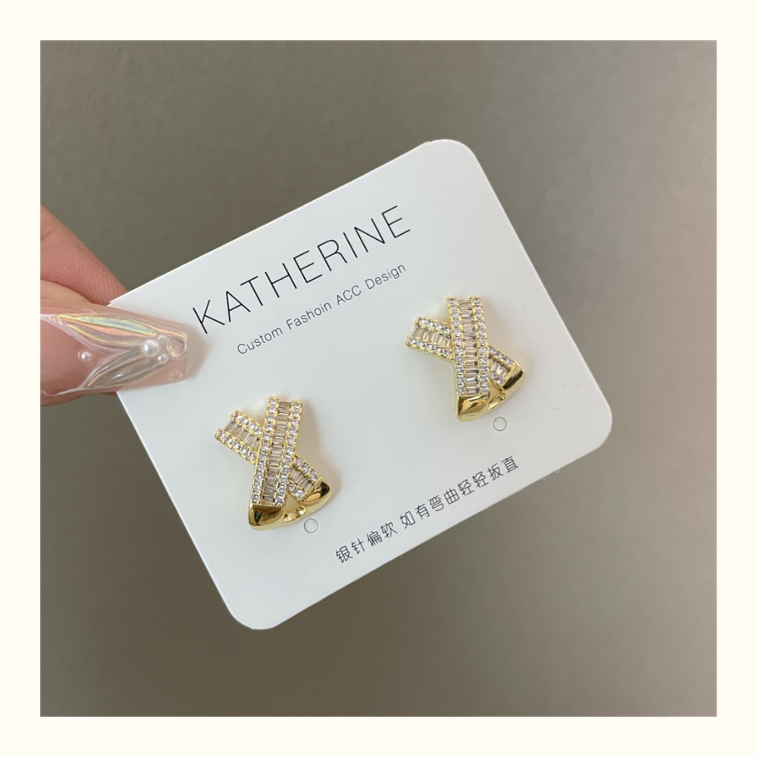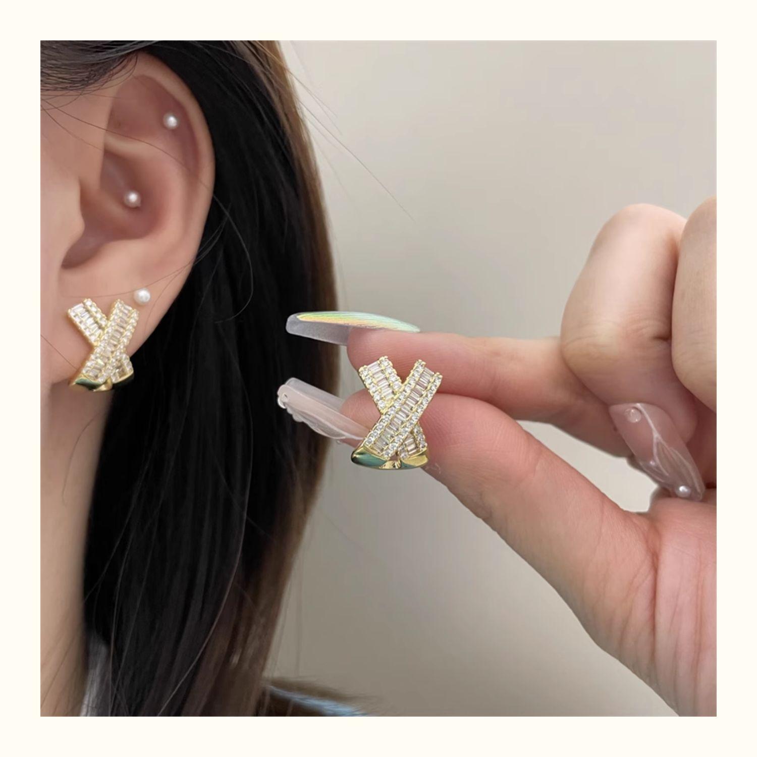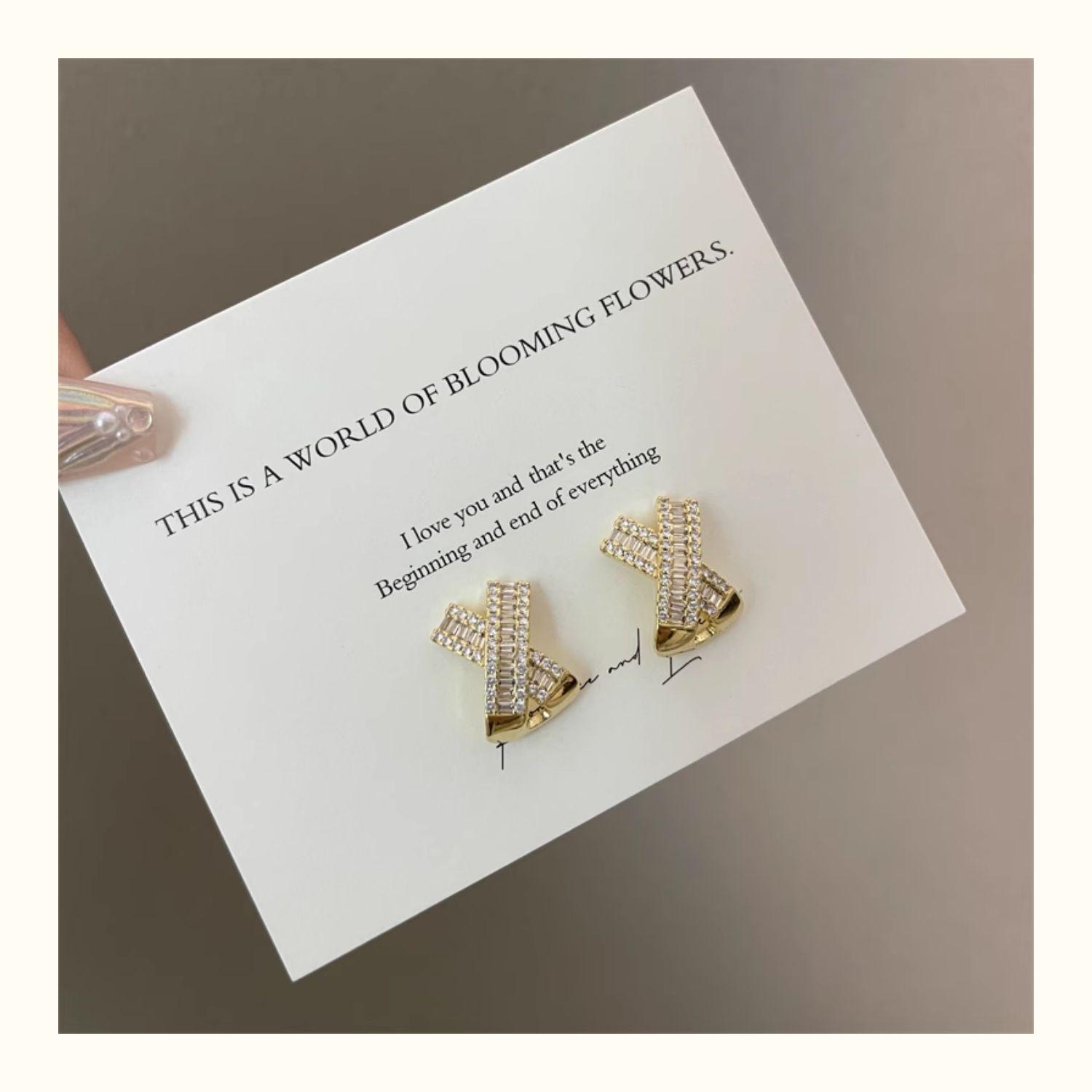 1326 gold x-shaped zircon stud earrings 925 silver needle