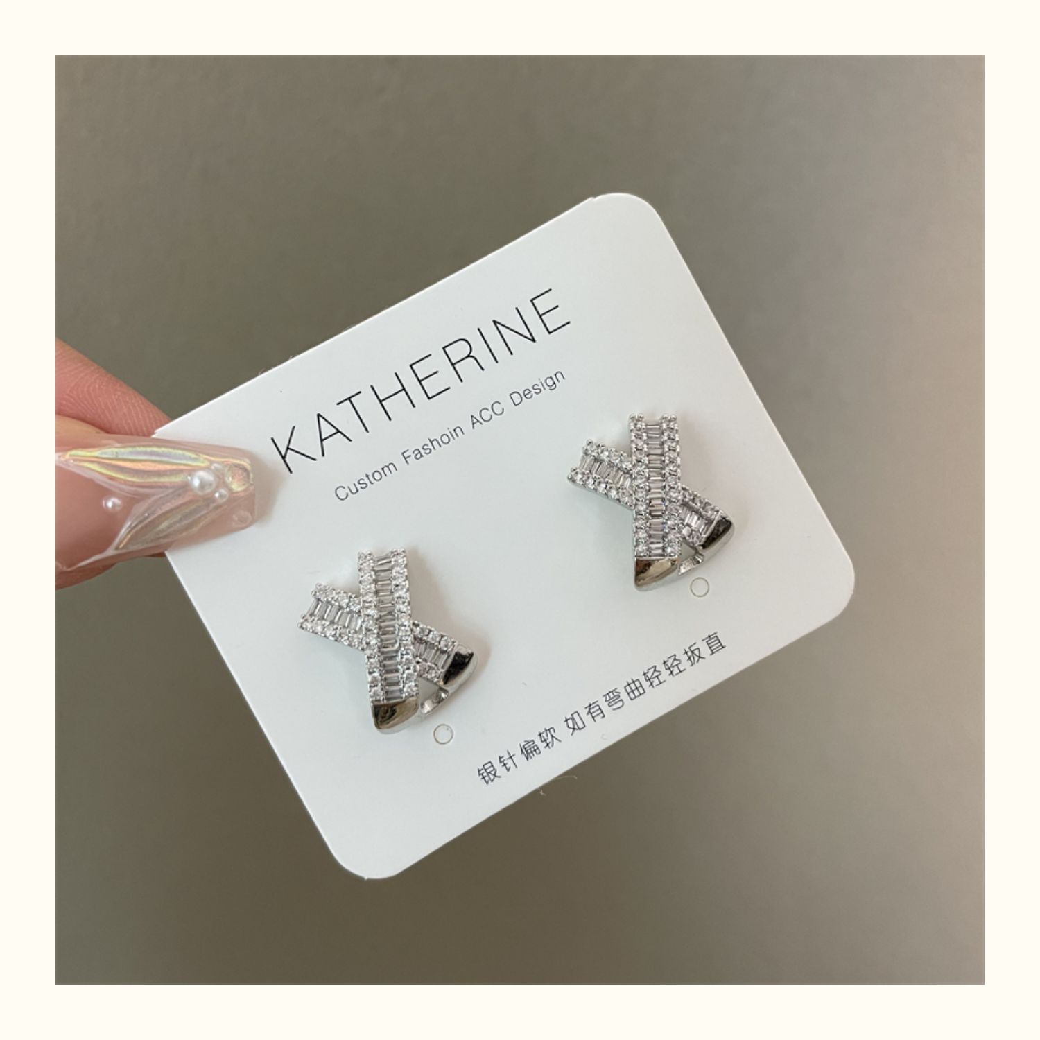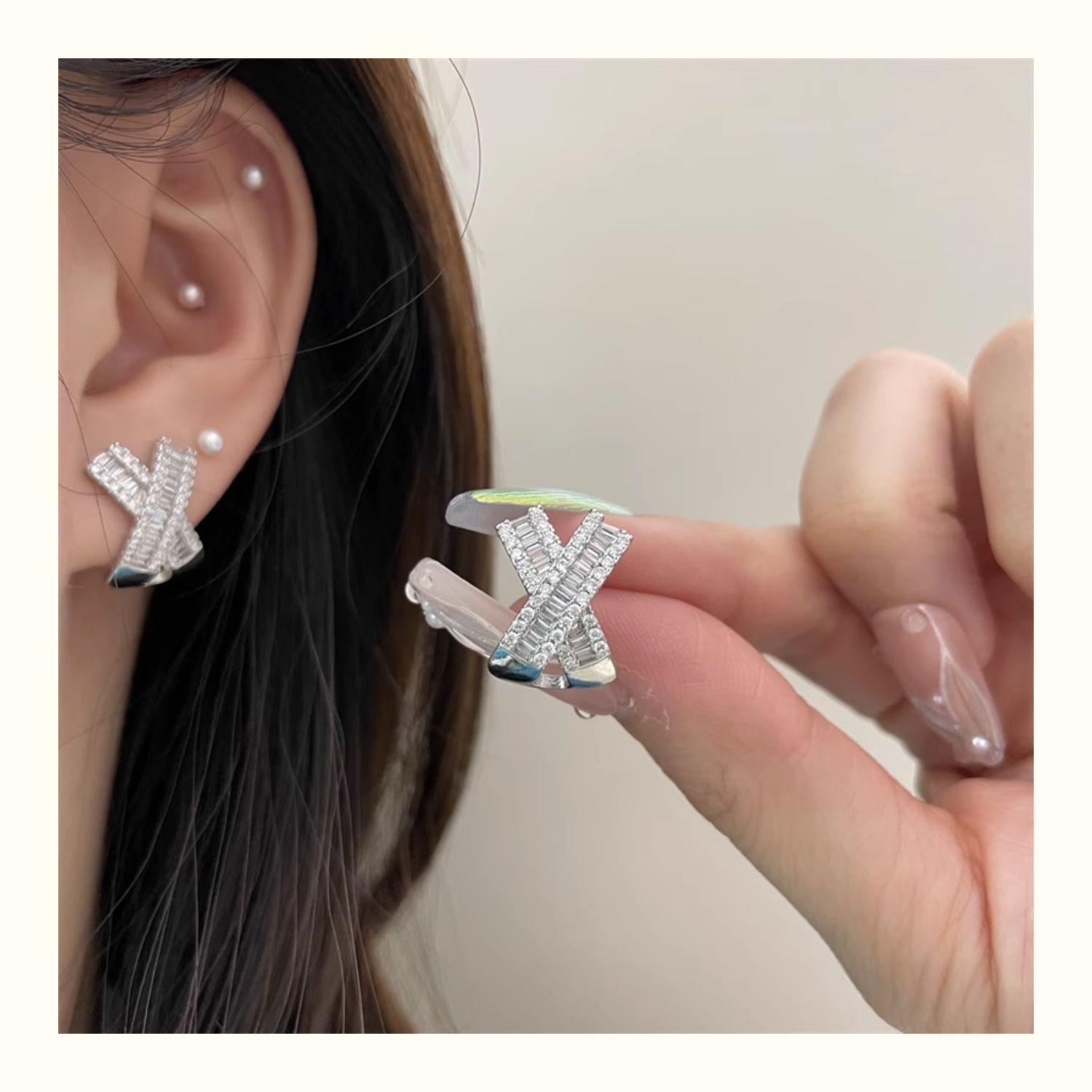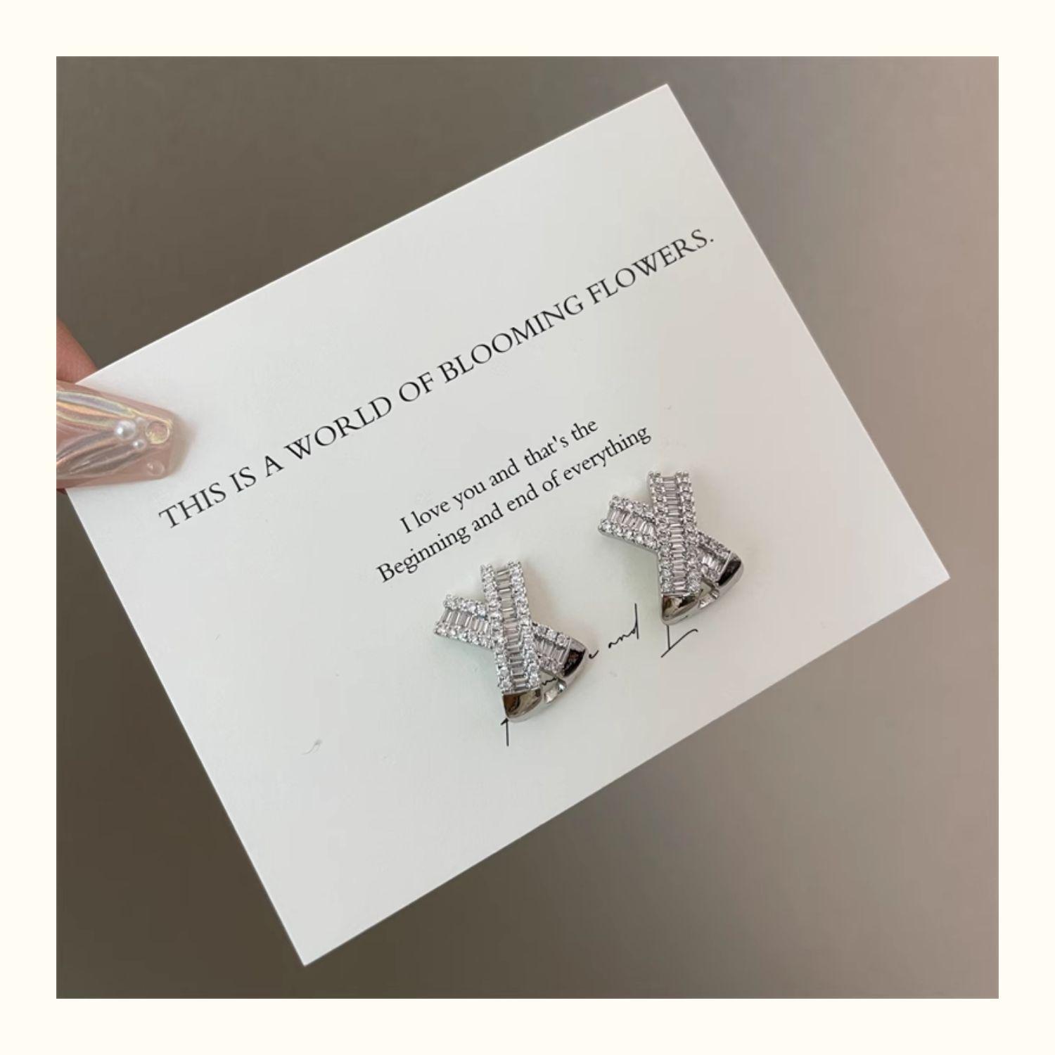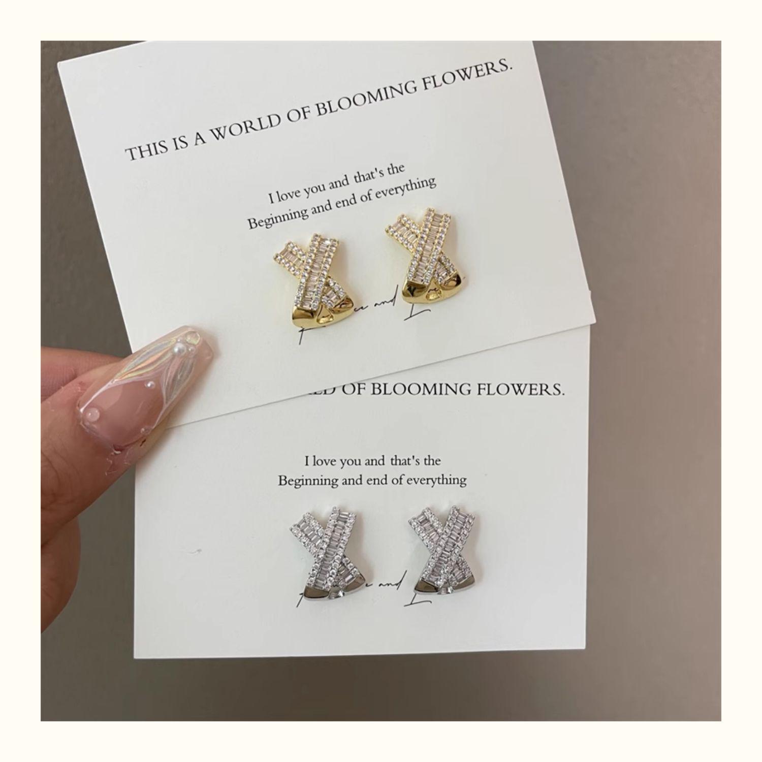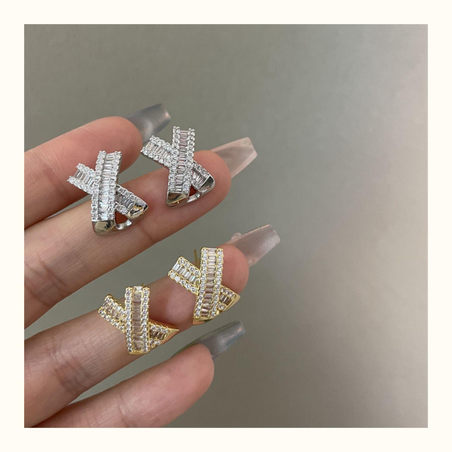 1326 gold x-shaped zircon stud earrings 925 silver needle, 1326 silver x-shaped zircon earrings 925 silver needle