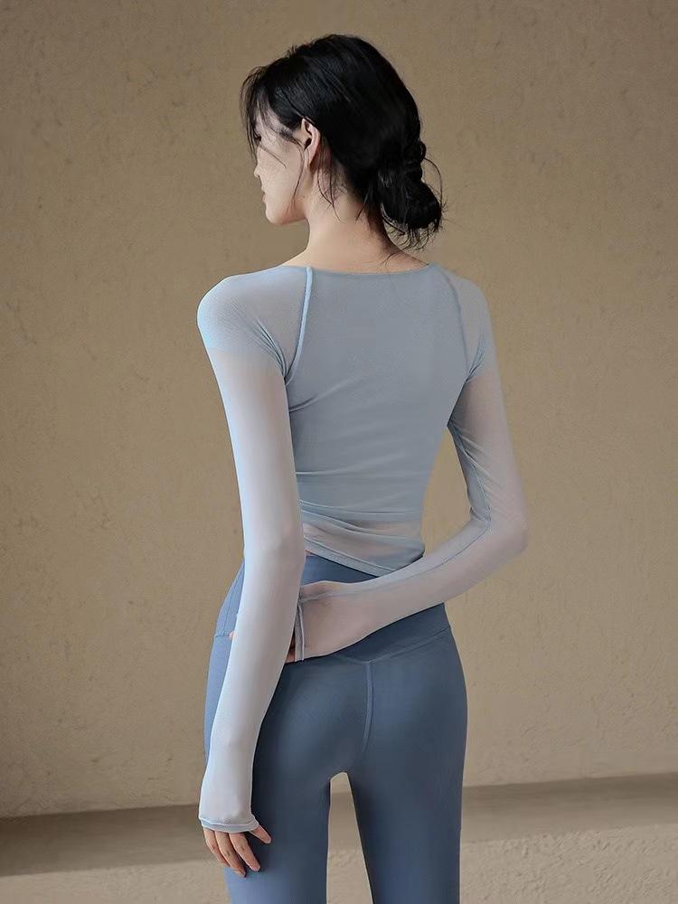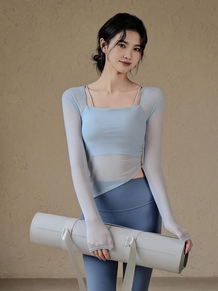 Ropa de yoga para mujer, para correr, fitness, manga corta, entrenamiento deportivo, top de secado rápido, ajustado, otoño e invierno, nuevo traje