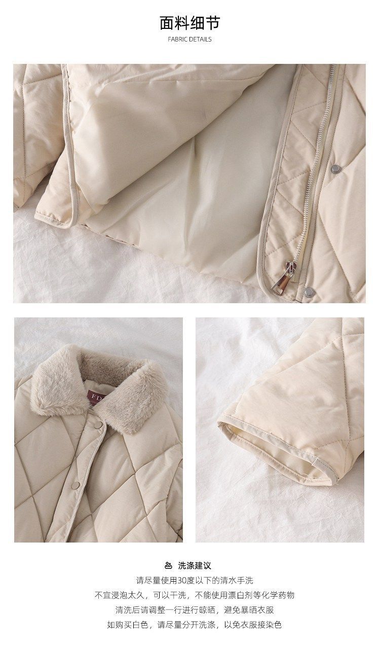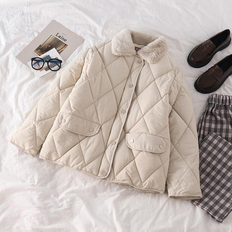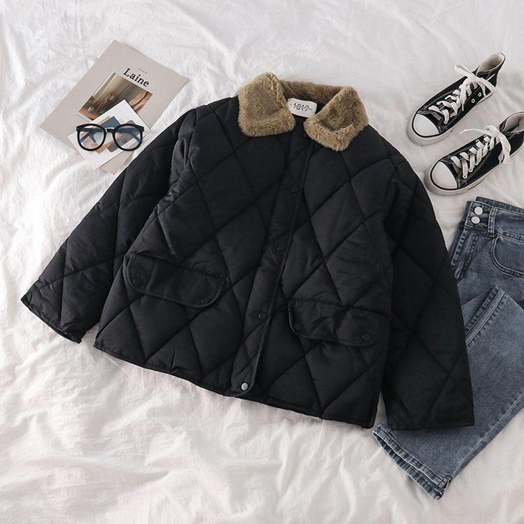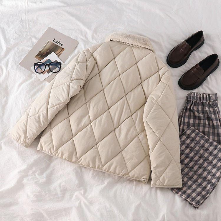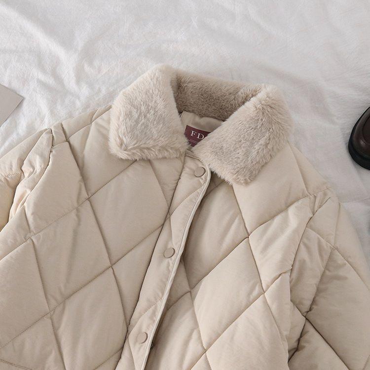 Chaqueta acolchada de algodón para mujer 2023 nuevo abrigo pequeño acolchado de algodón ins cuello de piel rombo abrigo de pan otoño e invierno abrigo acolchado de algodón engrosado
