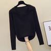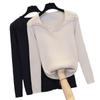 Talla grande para mujer otoño nuevo 200kg cuello en V cubre abdomen top camiseta estilo otoño e invierno versátil estilo occidental camisa básica