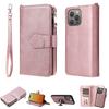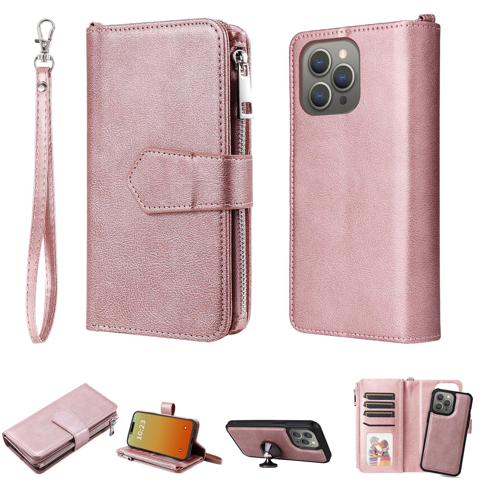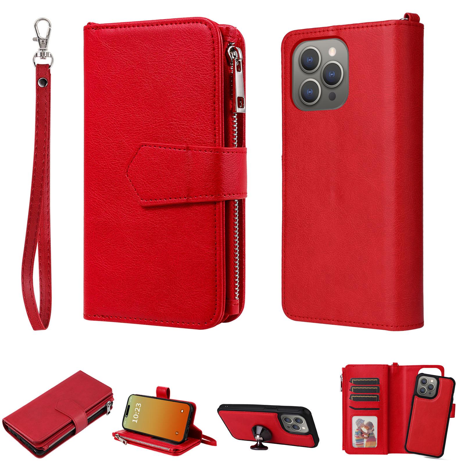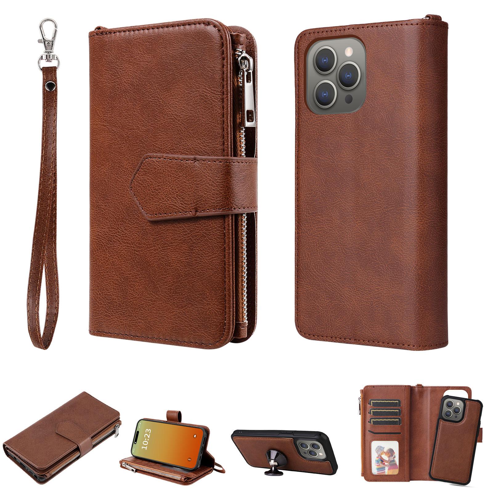Adecuado para Funda de Cuero para Teléfono Móvil Iphone17 16Pro Multifunción Billetera con Cremallera Tarjeta Magnética Dividida Dos en Uno