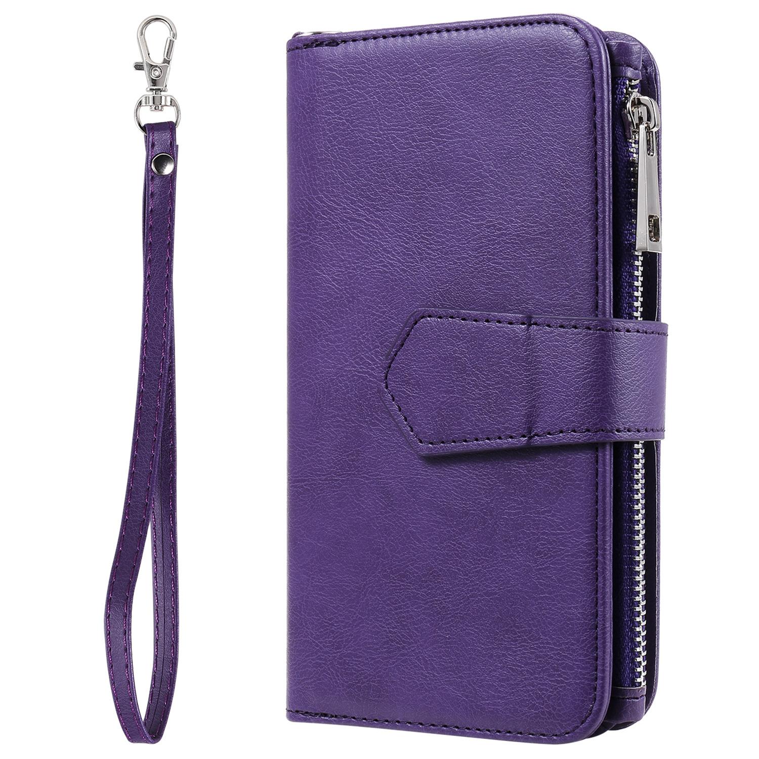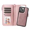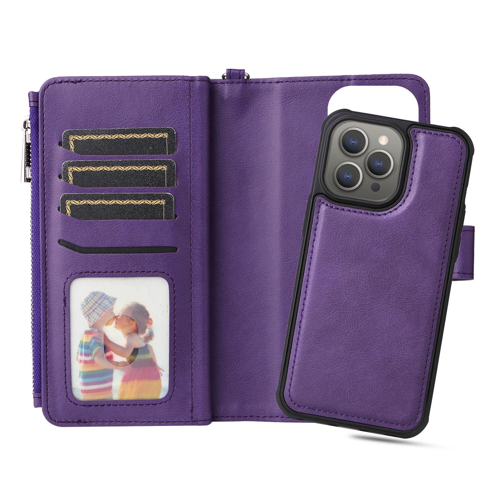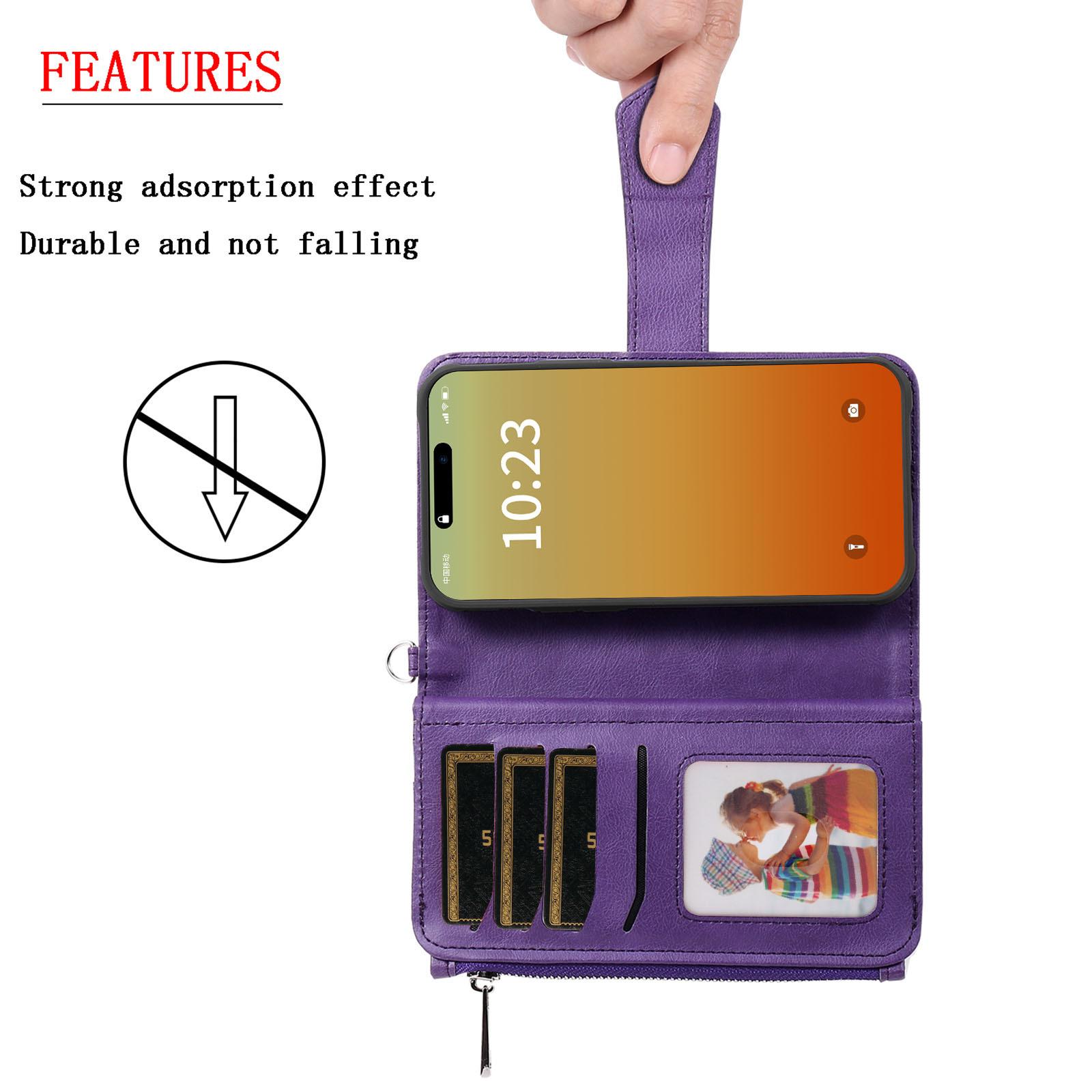 Adecuado para Funda de Cuero para Teléfono Móvil Iphone17 16Pro Multifunción Billetera con Cremallera Tarjeta Magnética Dividida Dos en Uno