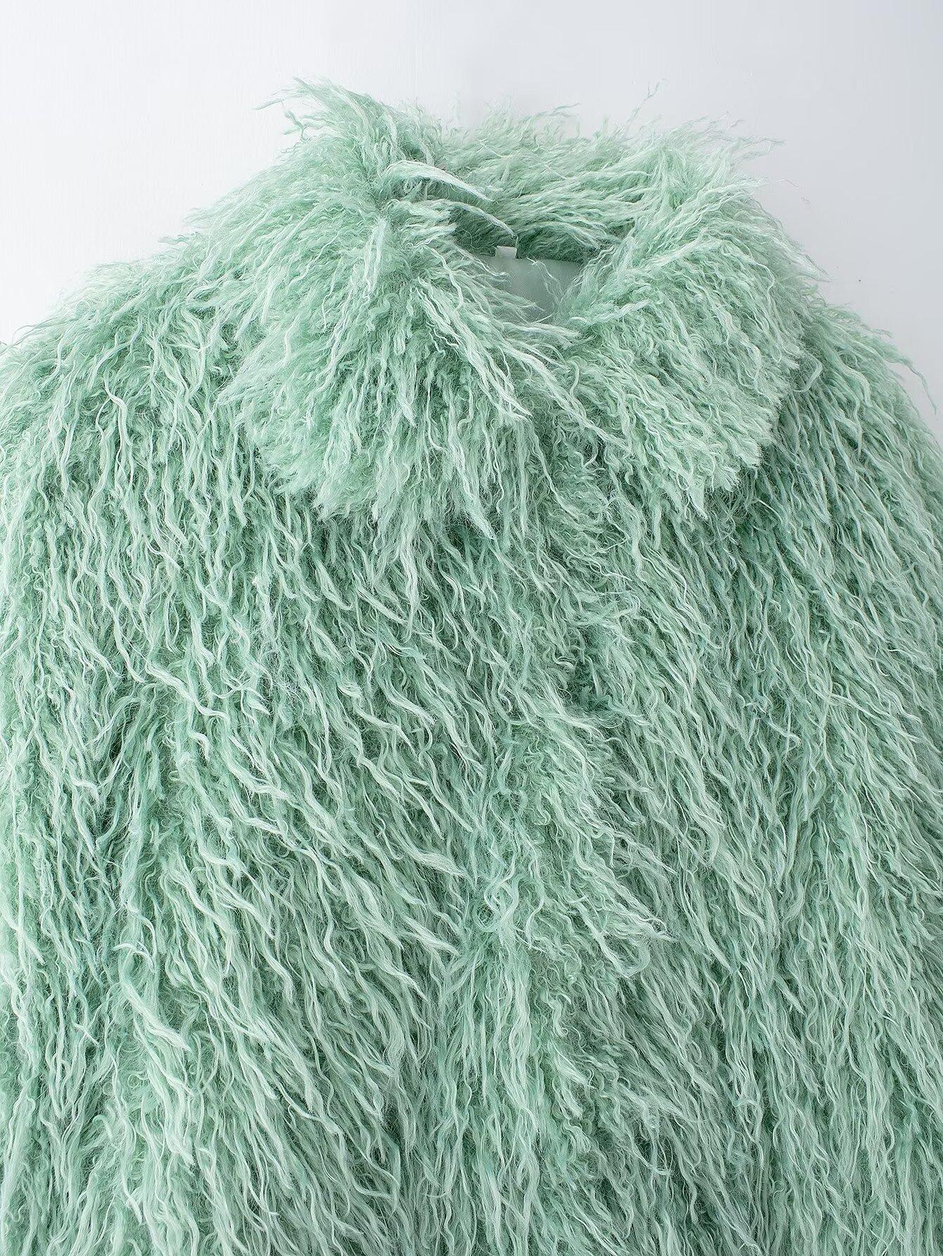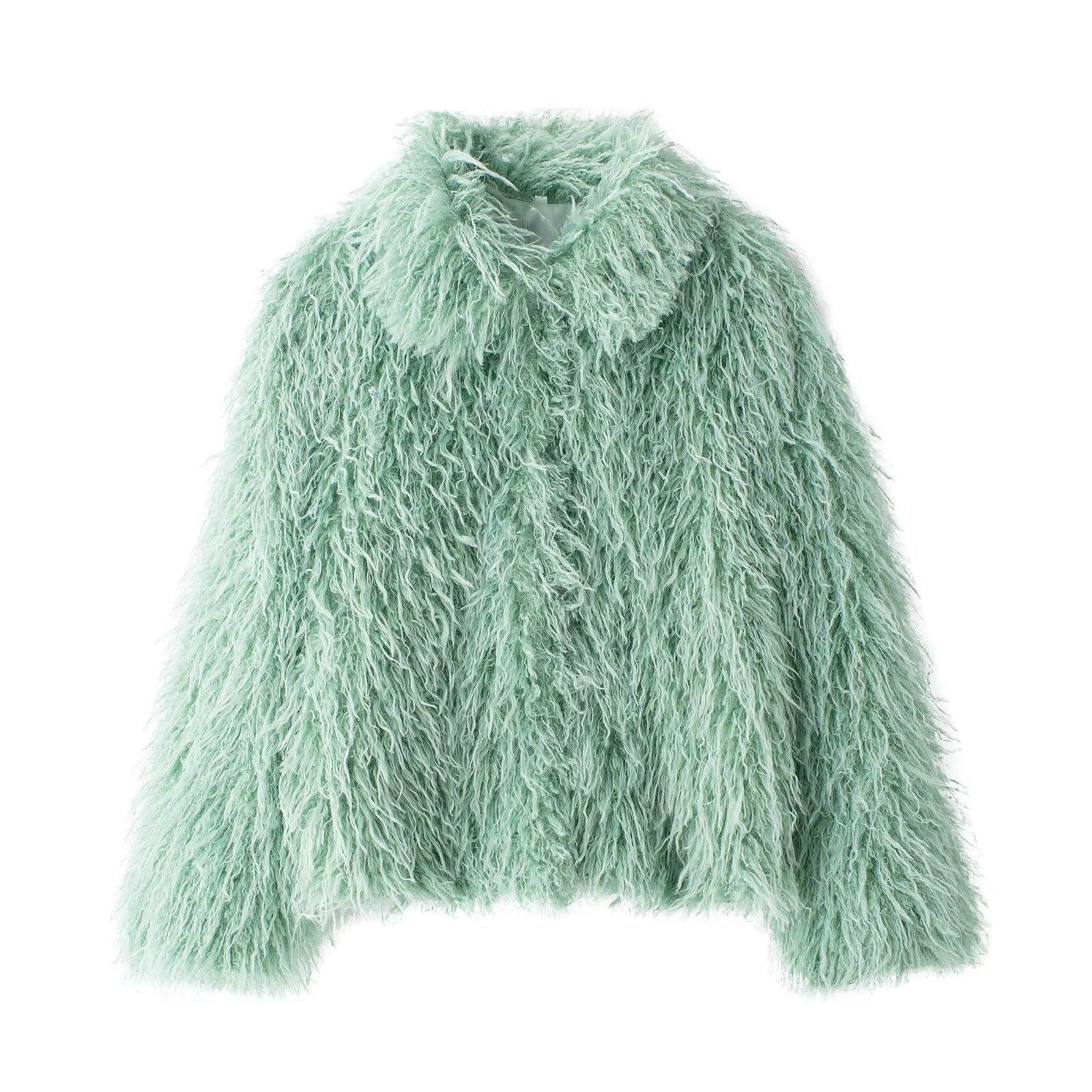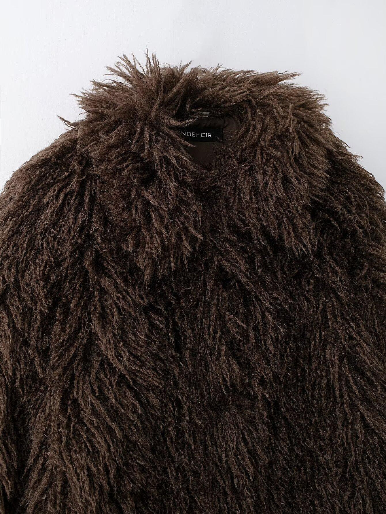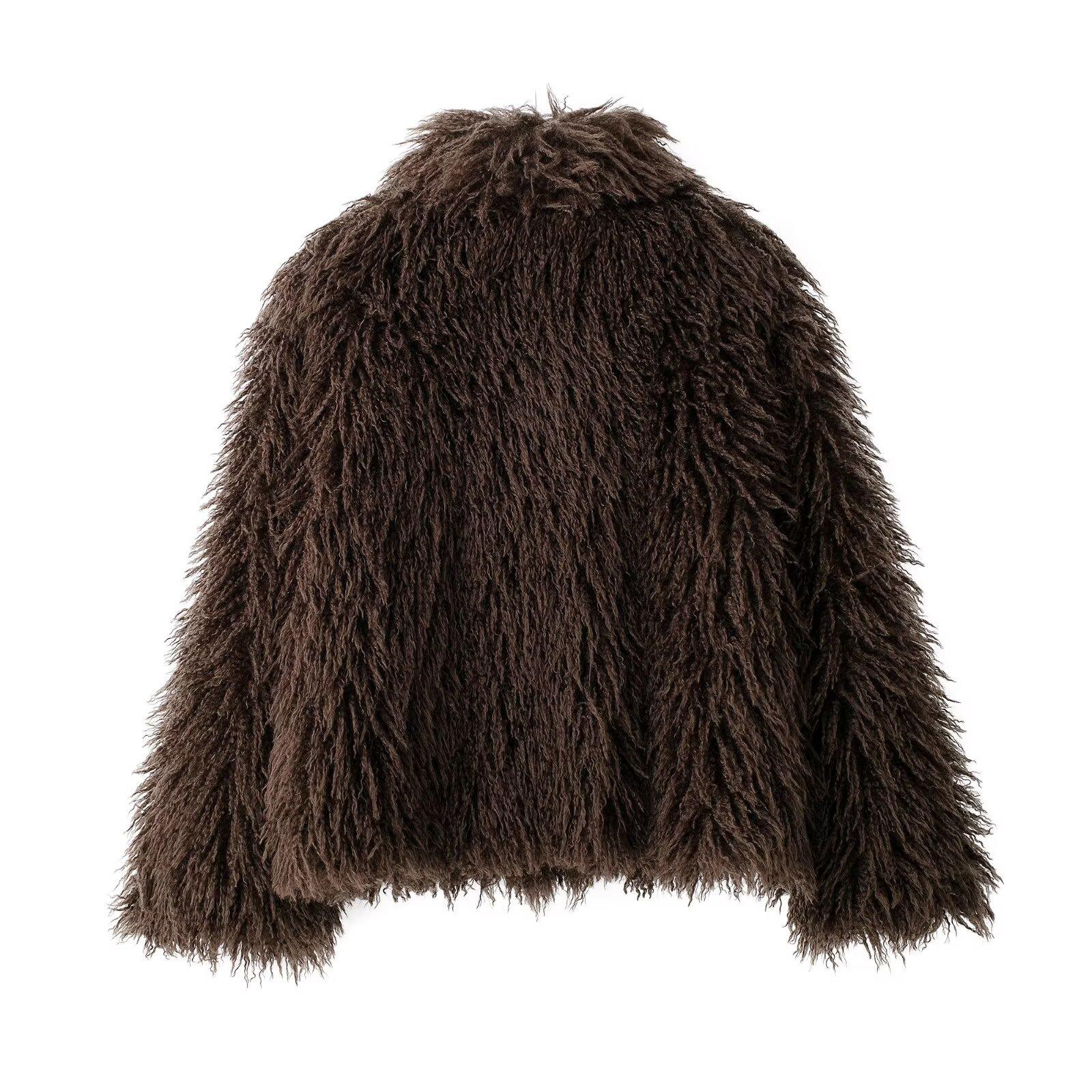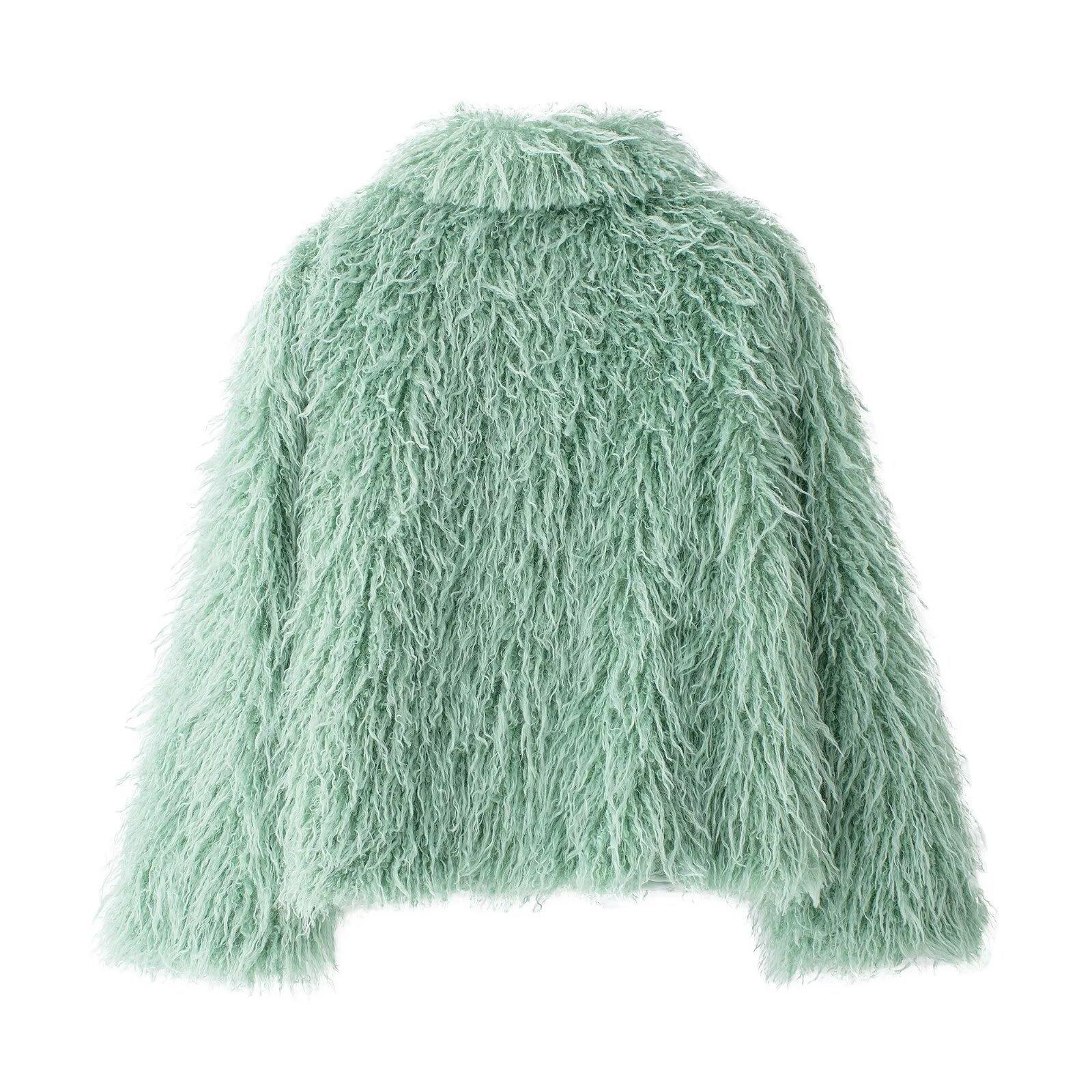 Abrigo de piel sintética de moda para mujer, efecto piel de invierno 2024, estilo europeo y americano, chaqueta de piel sintética con solapa grande