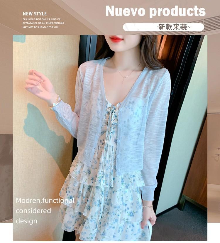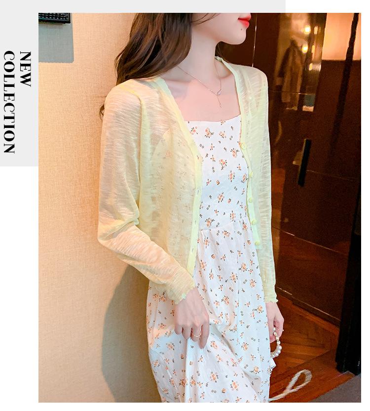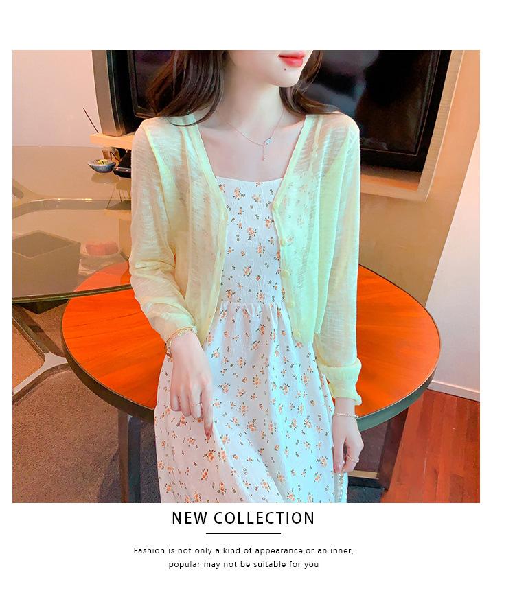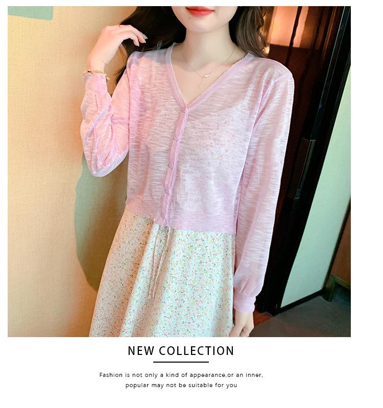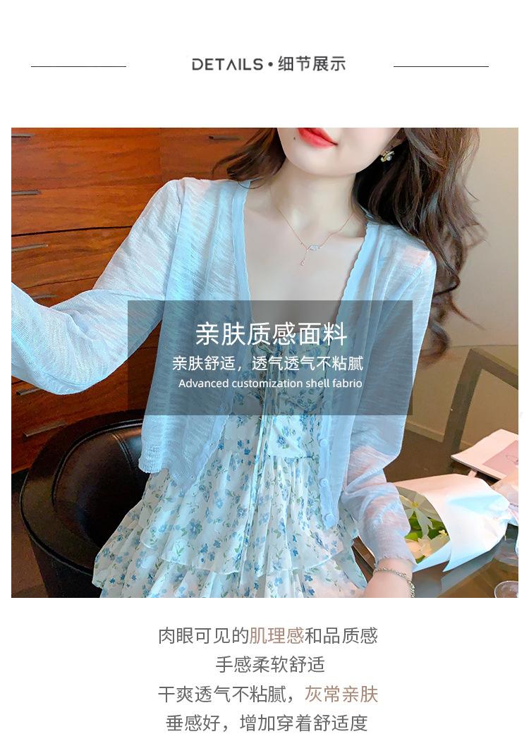 Cárdigan Delgado de Punto de Manga Larga con Cuello en V y Color Puro Estilo Coreano Nuevo de Primavera y Verano 2025 para Protección Solar
