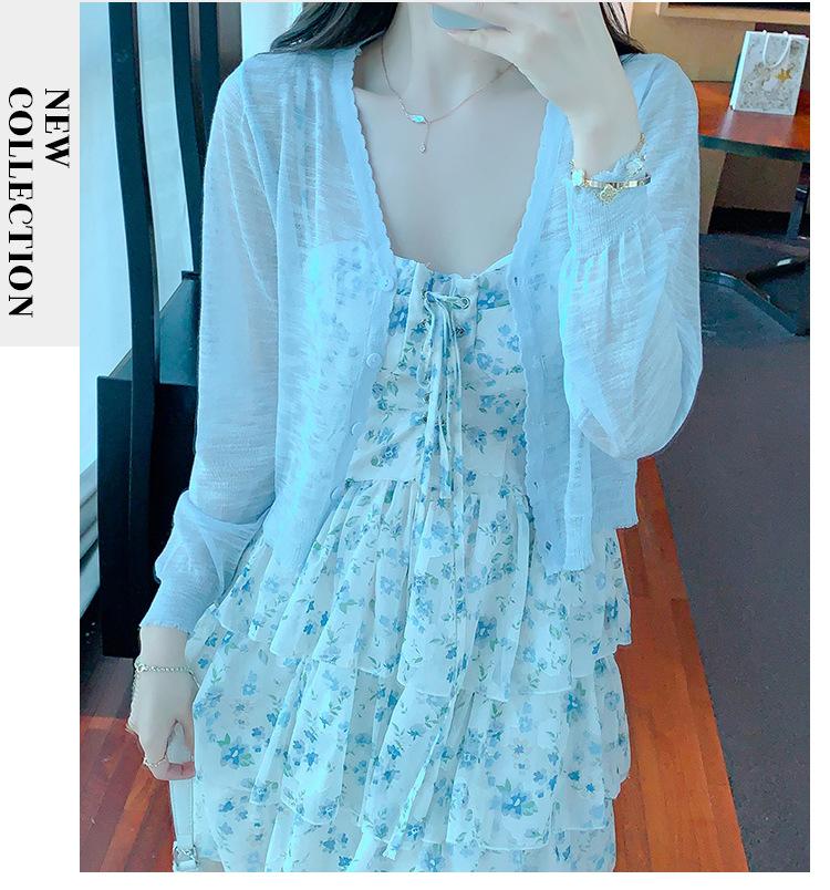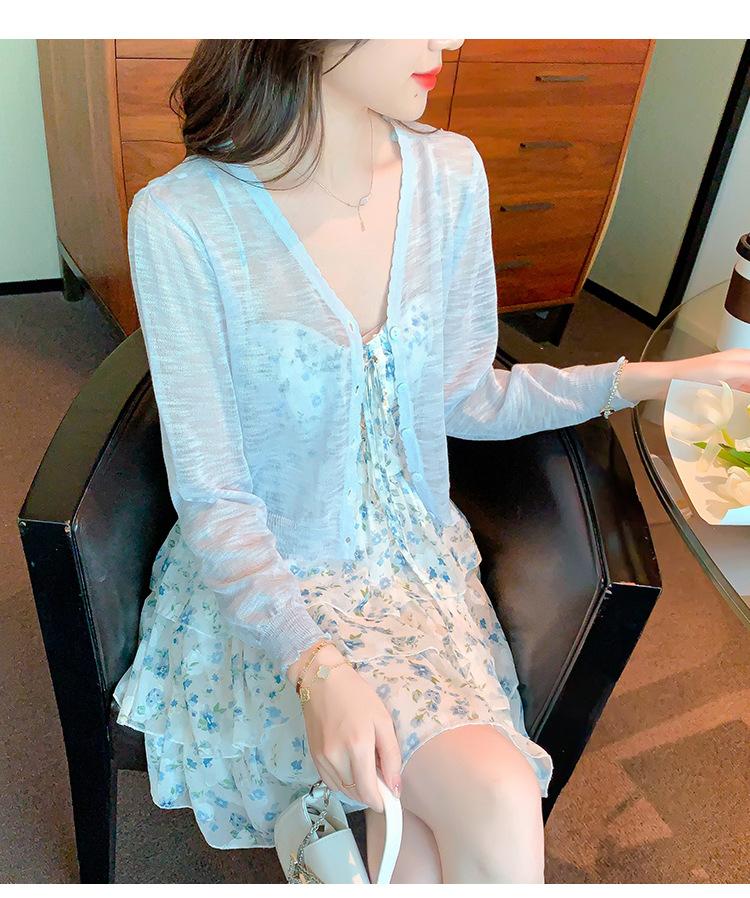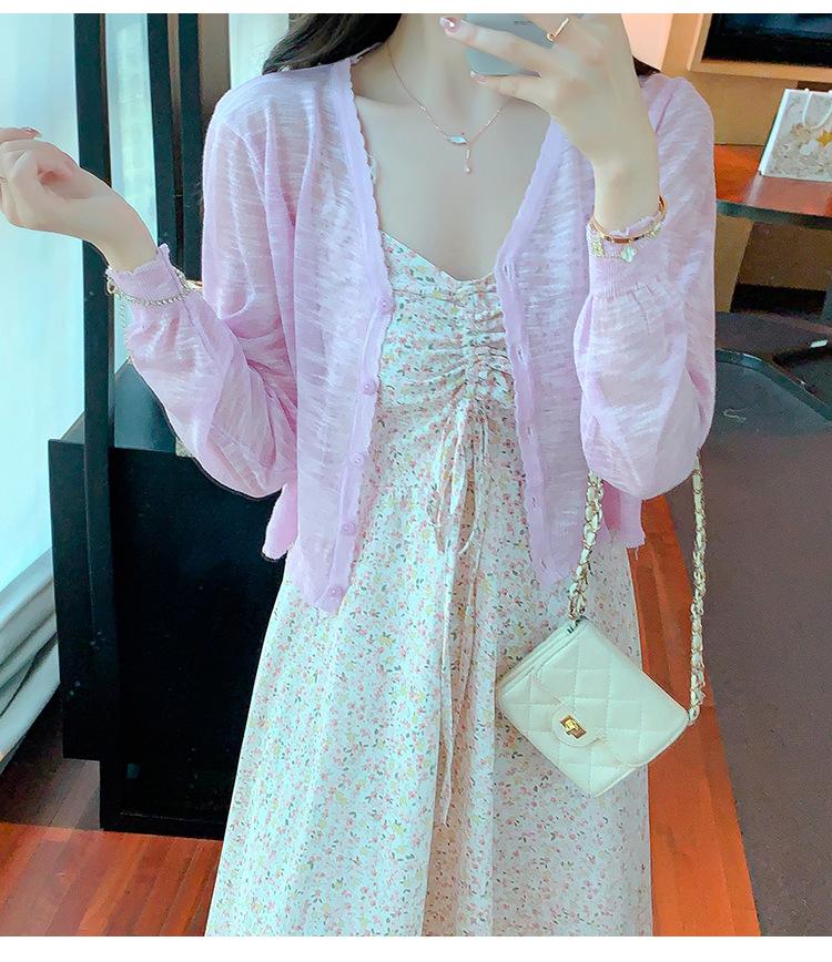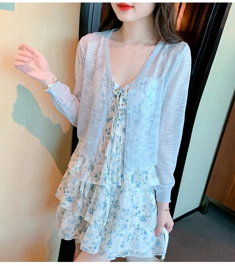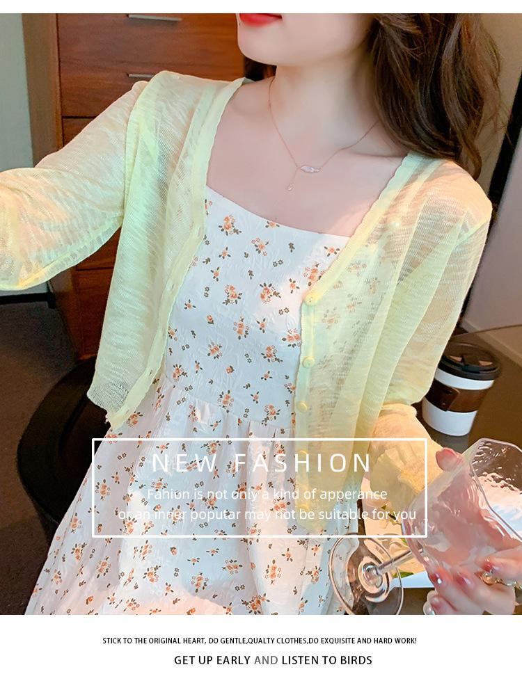 Cárdigan Delgado de Punto de Manga Larga con Cuello en V y Color Puro Estilo Coreano Nuevo de Primavera y Verano 2025 para Protección Solar