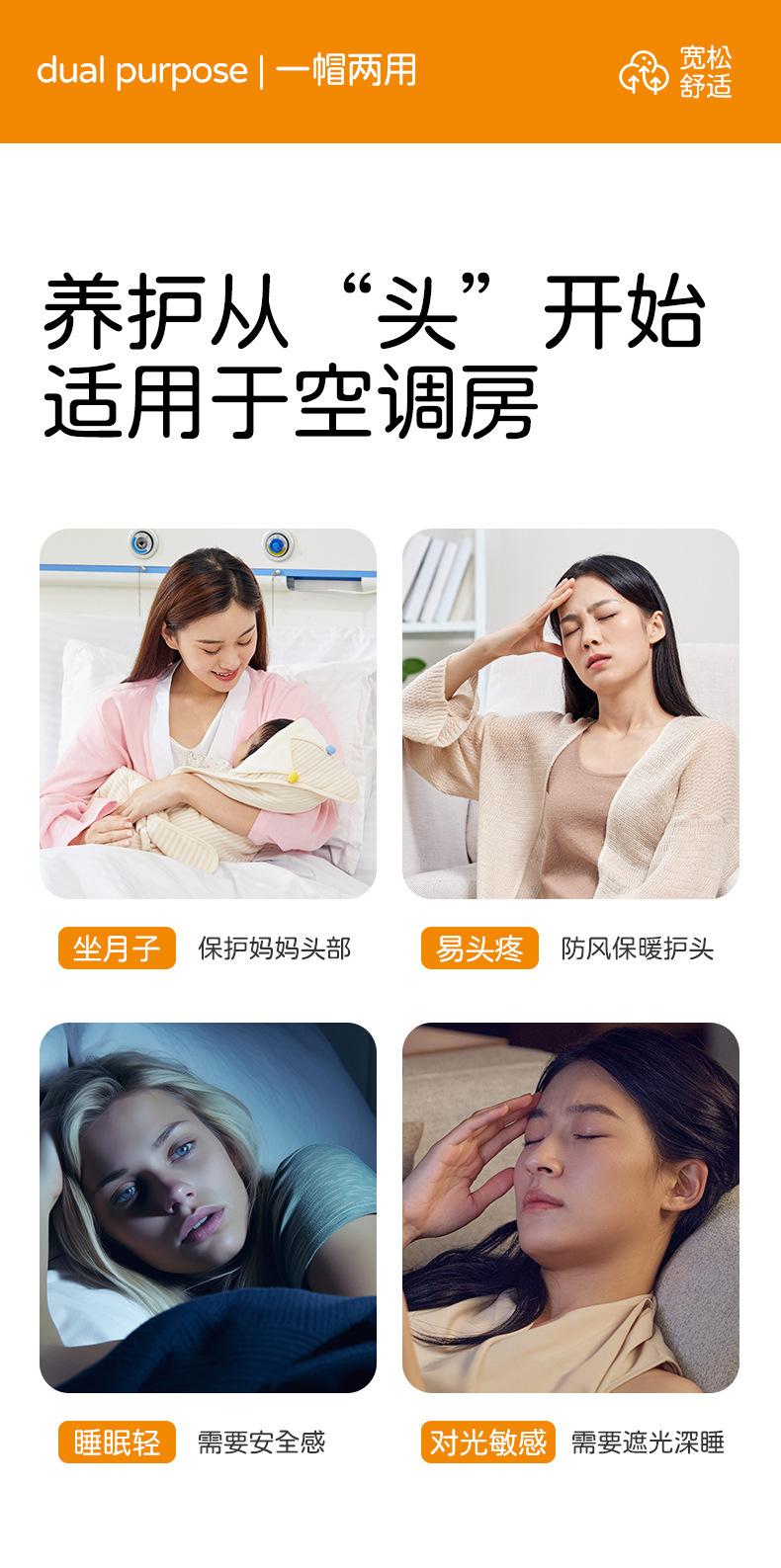 Gorro de Luna Anti-cabello desordenado Noche Dormir Sombreado A prueba de viento Cálido Protección para la cabeza Gorro para mujeres embarazadas Gorro para dormir Máscara para ojos para hombres y mujeres