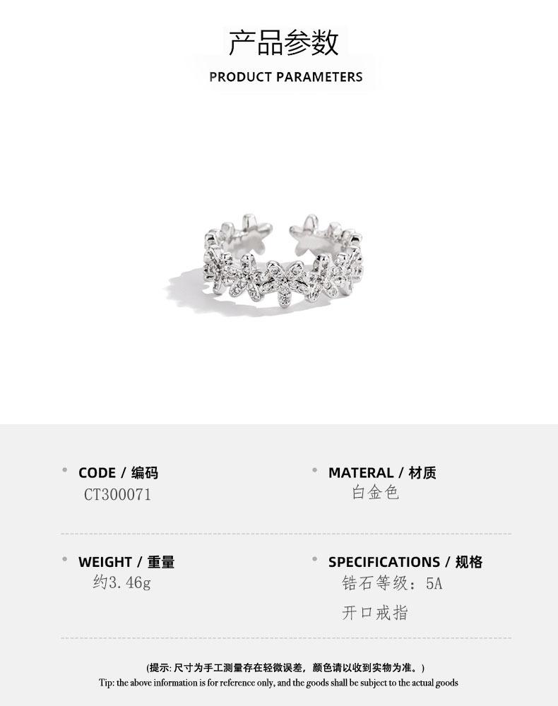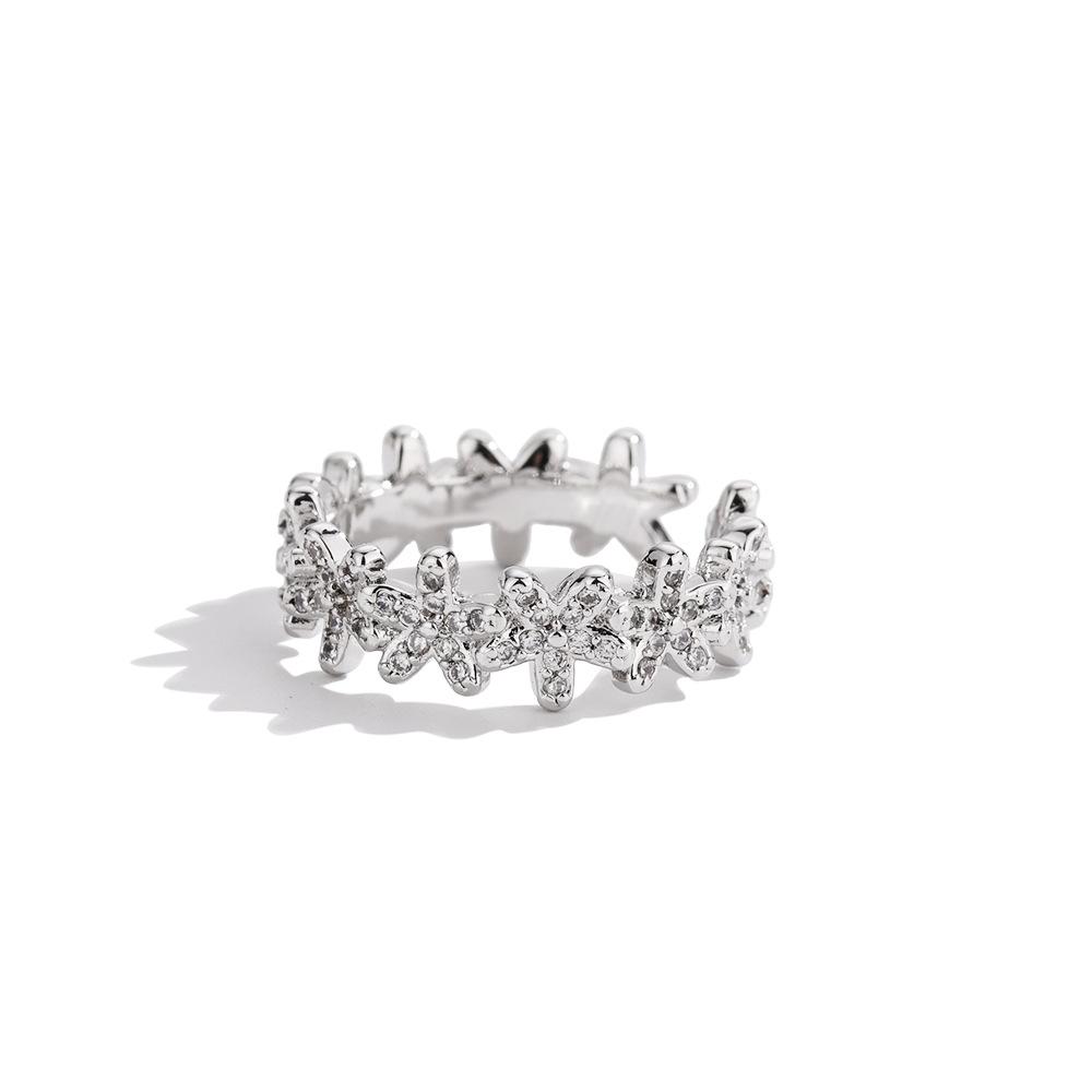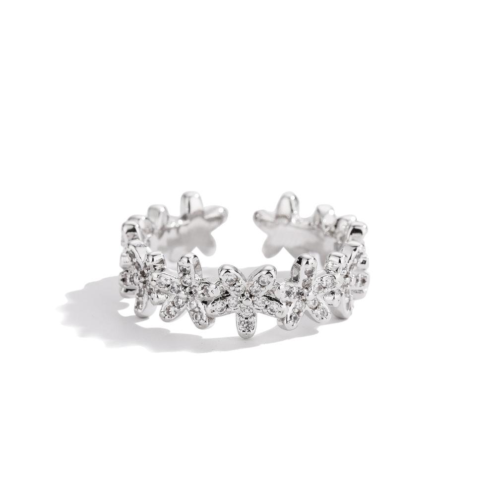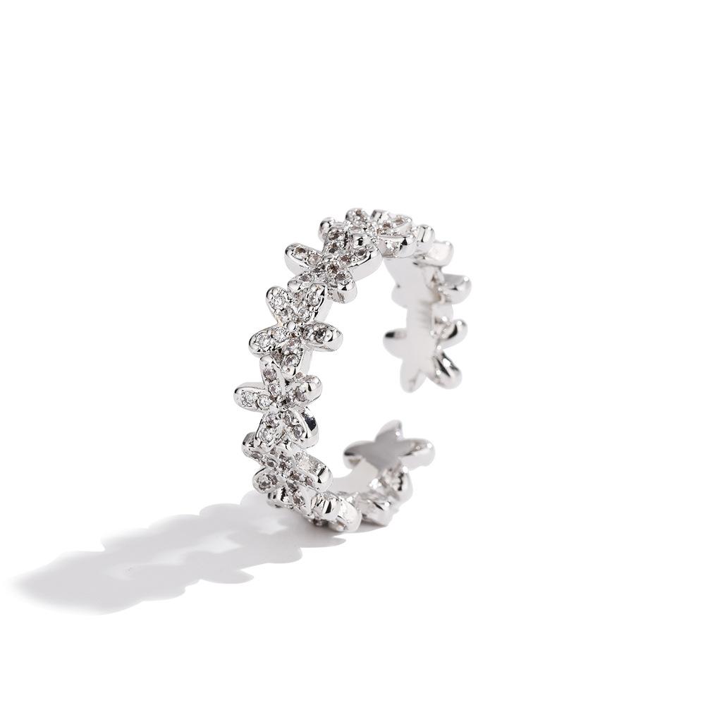 Anillo de Flor de Diamantes Completos Más Vendido Coreano y Japonés para Mujer, Temperamento de Viajera Moderno y Elegante, Anillo Abierto Versátil Minimalista
