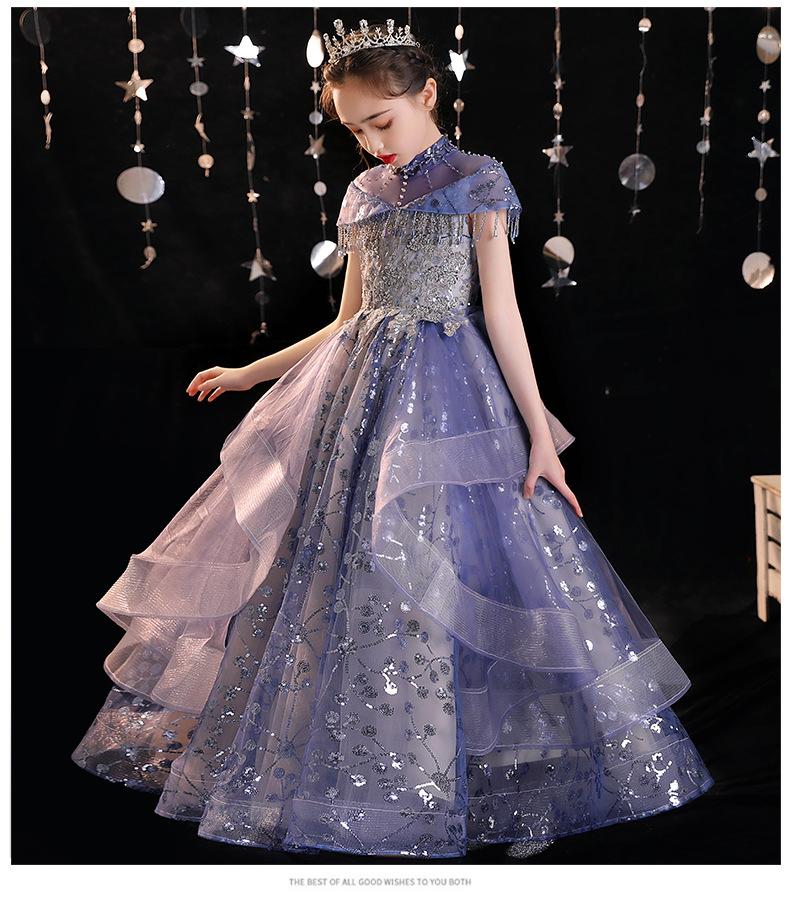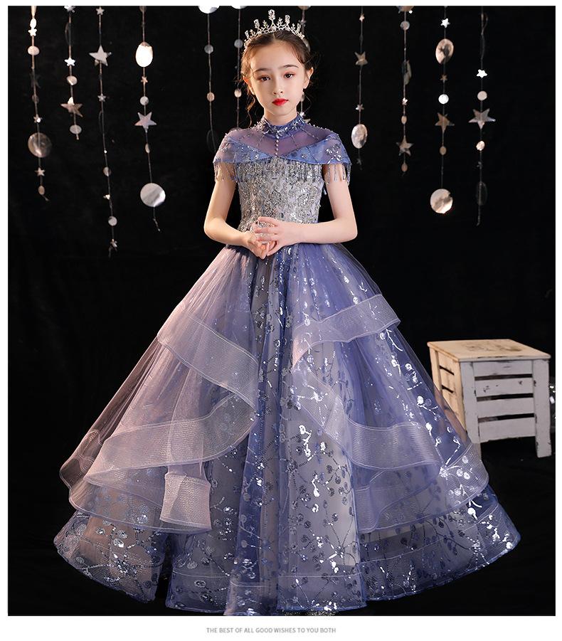 Vestido de noche para niños, vestido de princesa, hilo hinchado, niña de las flores, presentadora, pasarela, cumpleaños de niña, disfraz de actuación de piano