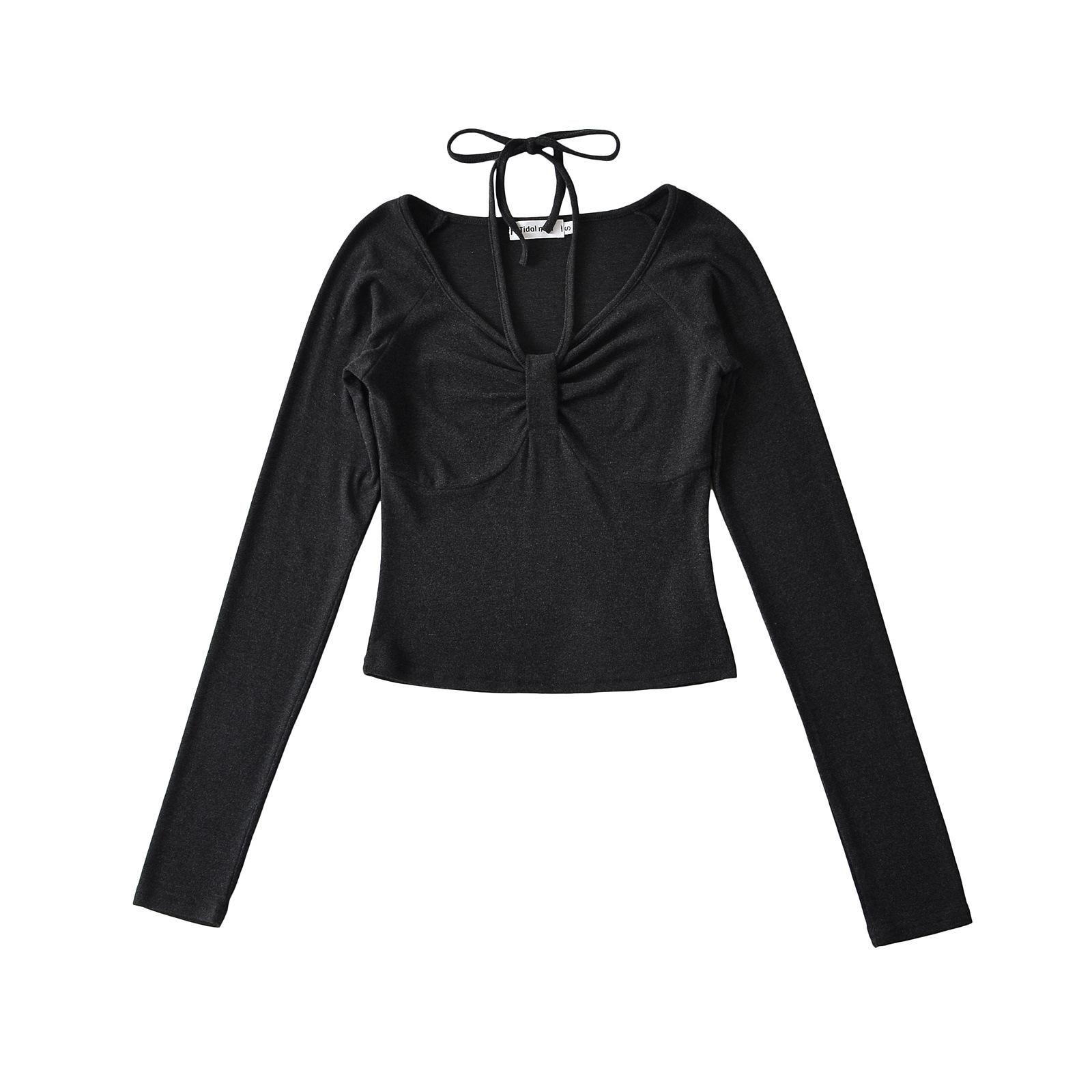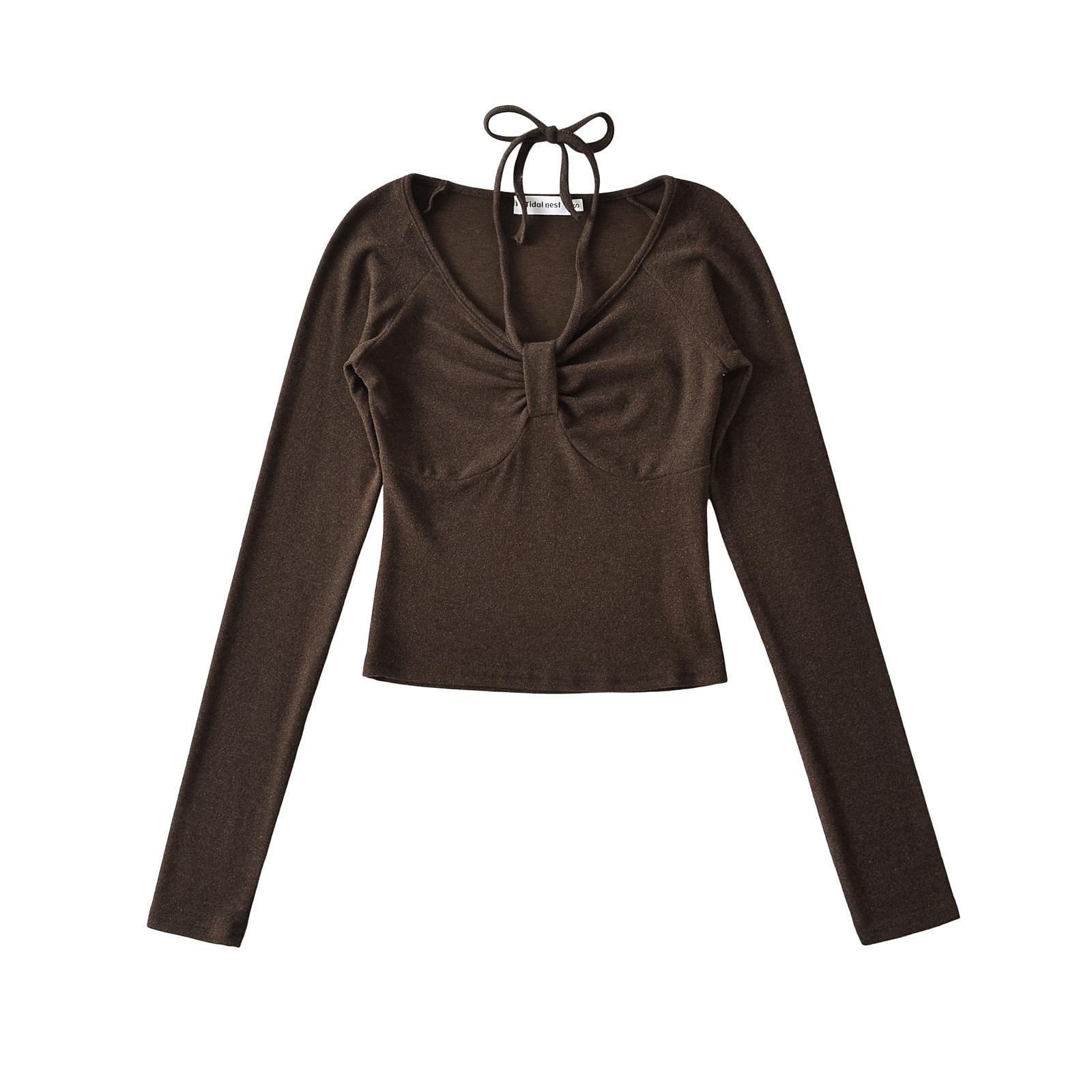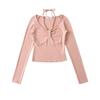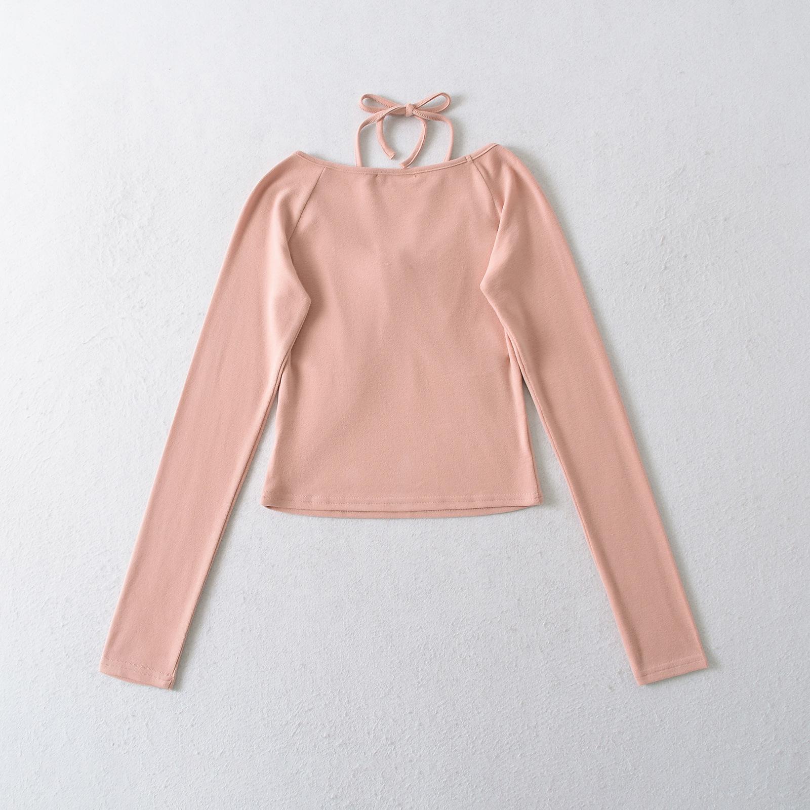 Camiseta de manga larga con cintura sexy y lijado de doble cara para otoño e invierno, camiseta interior de punto para mujer