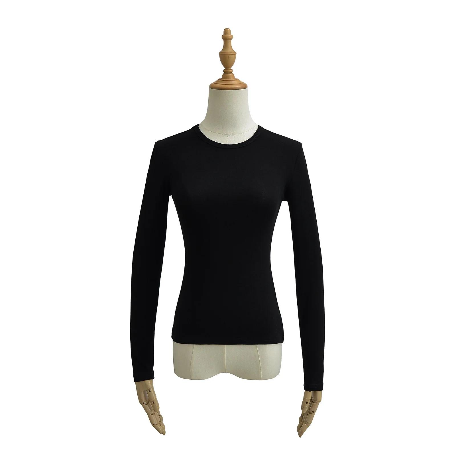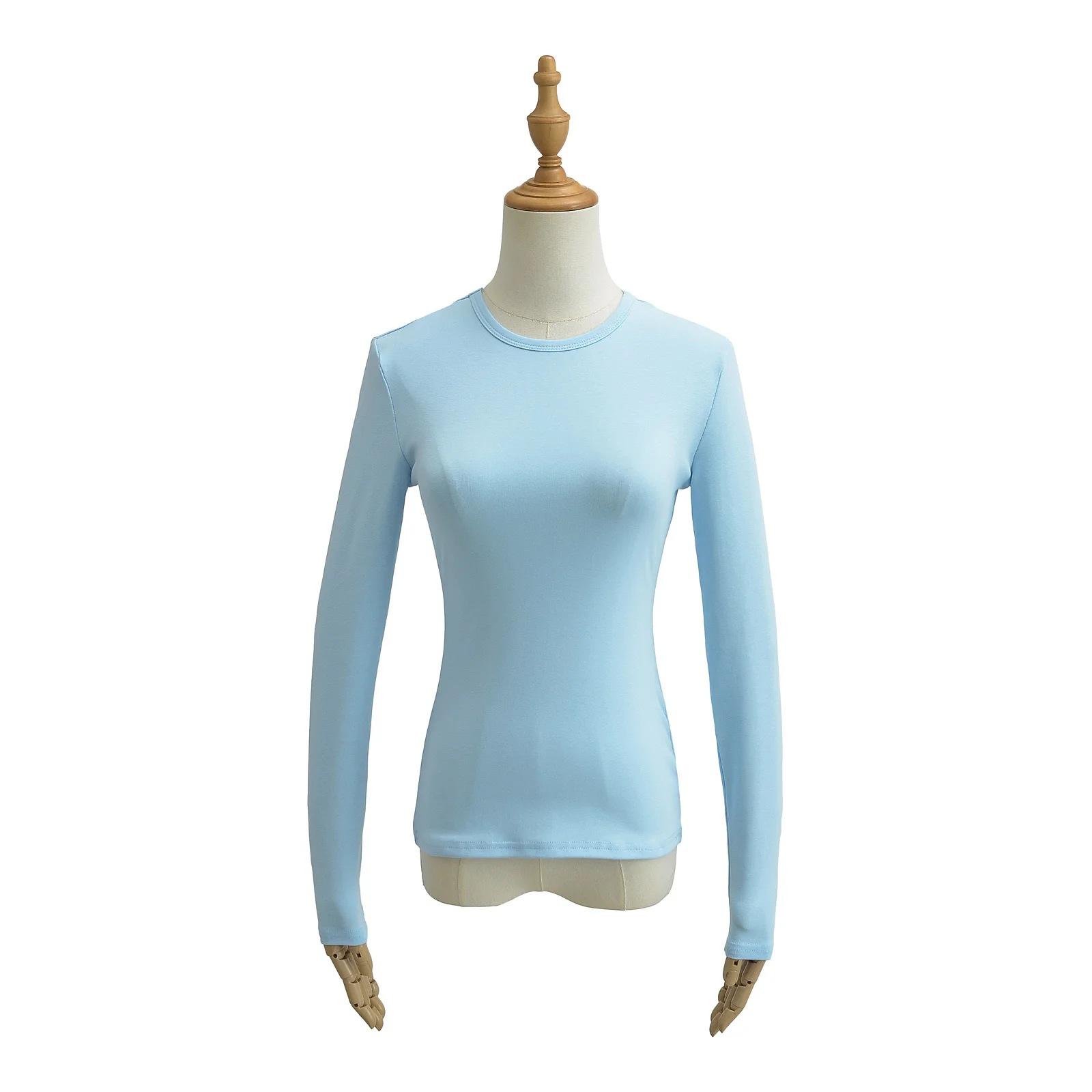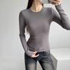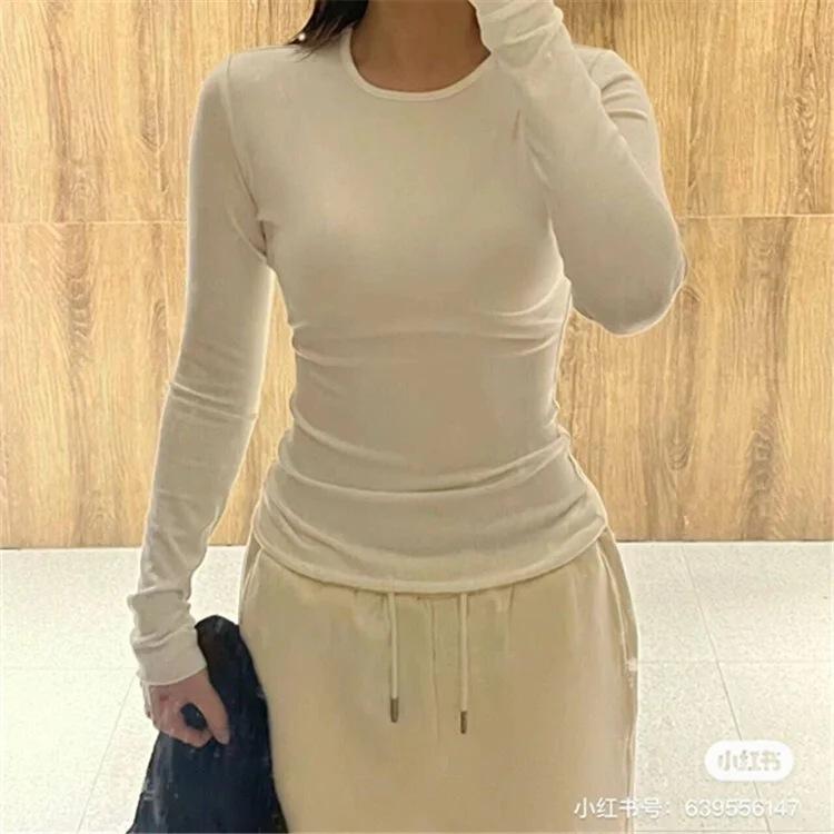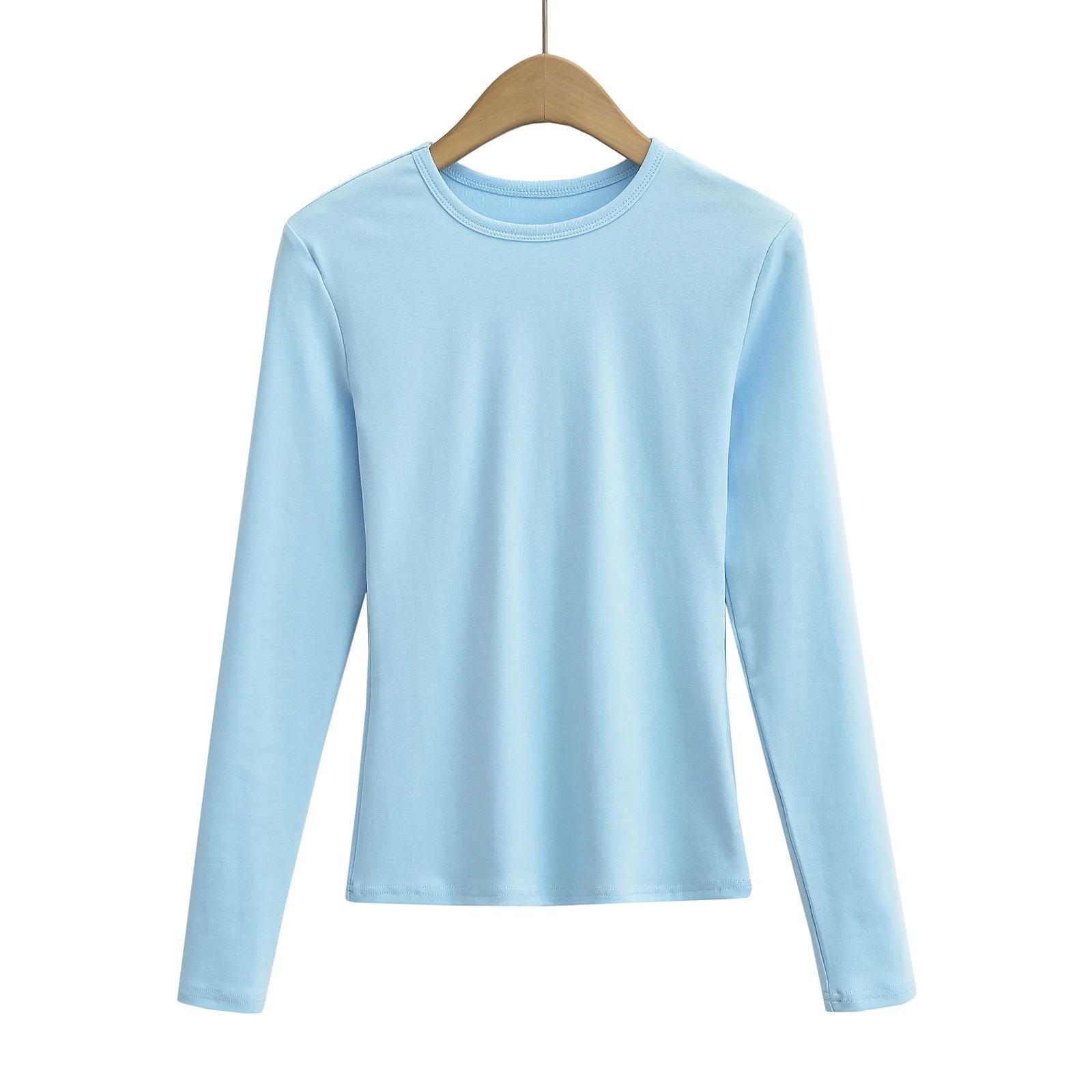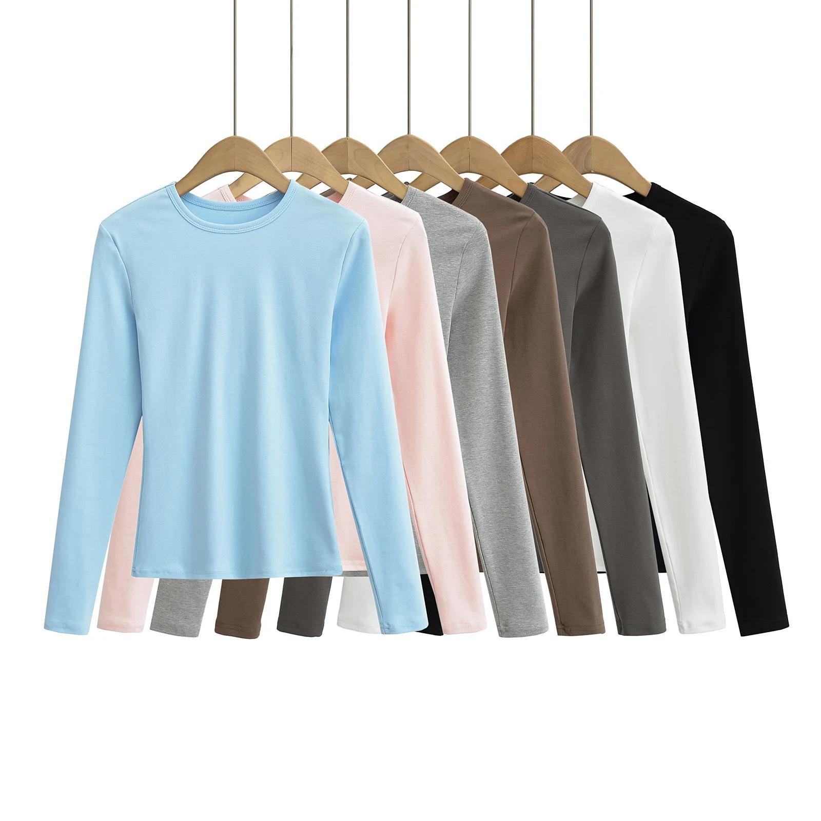Nueva camiseta básica de manga larga versátil con cuello redondo pequeño de estilo europeo y americano para mujer, primavera y otoño, nueva camisa elástica ajustada para mujer