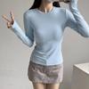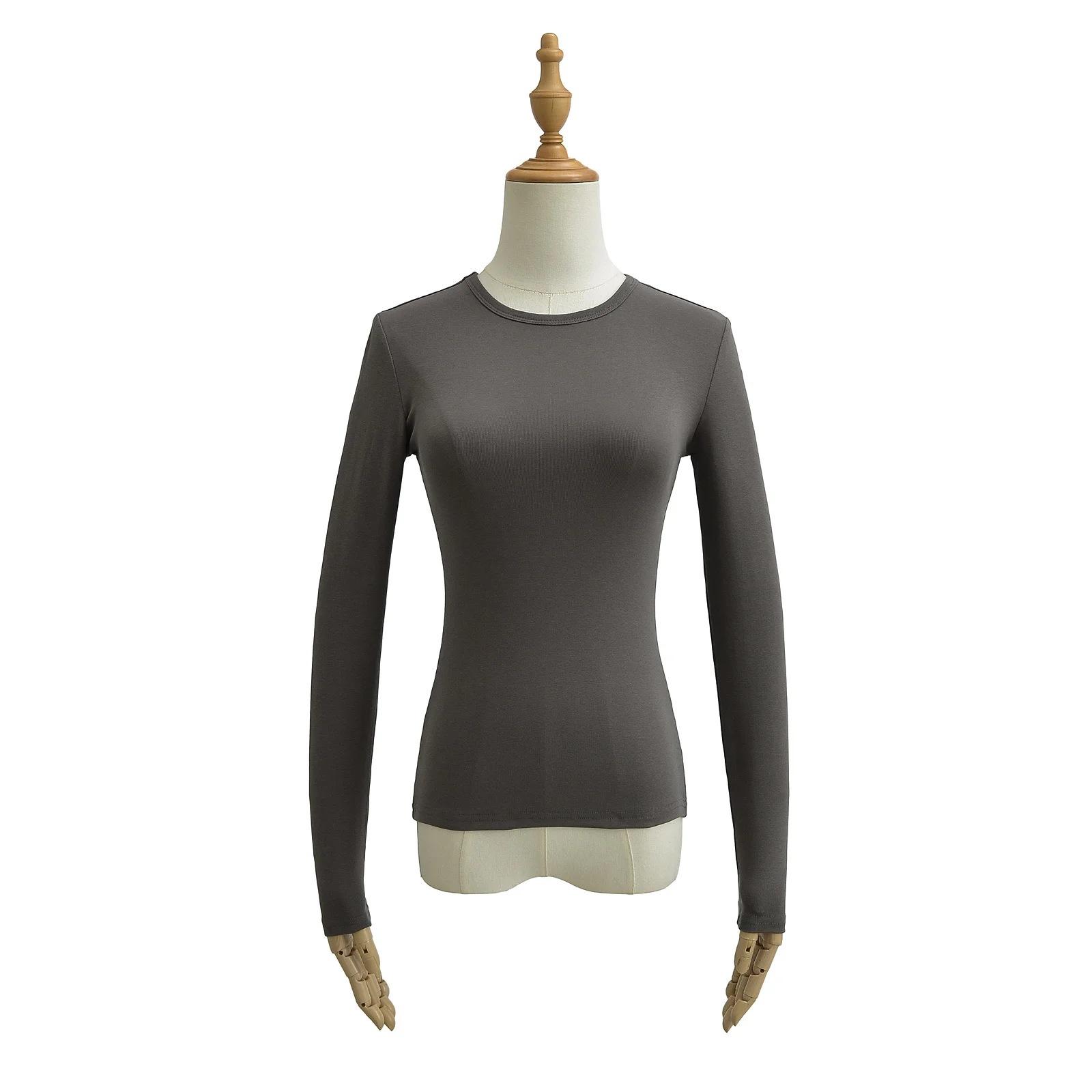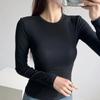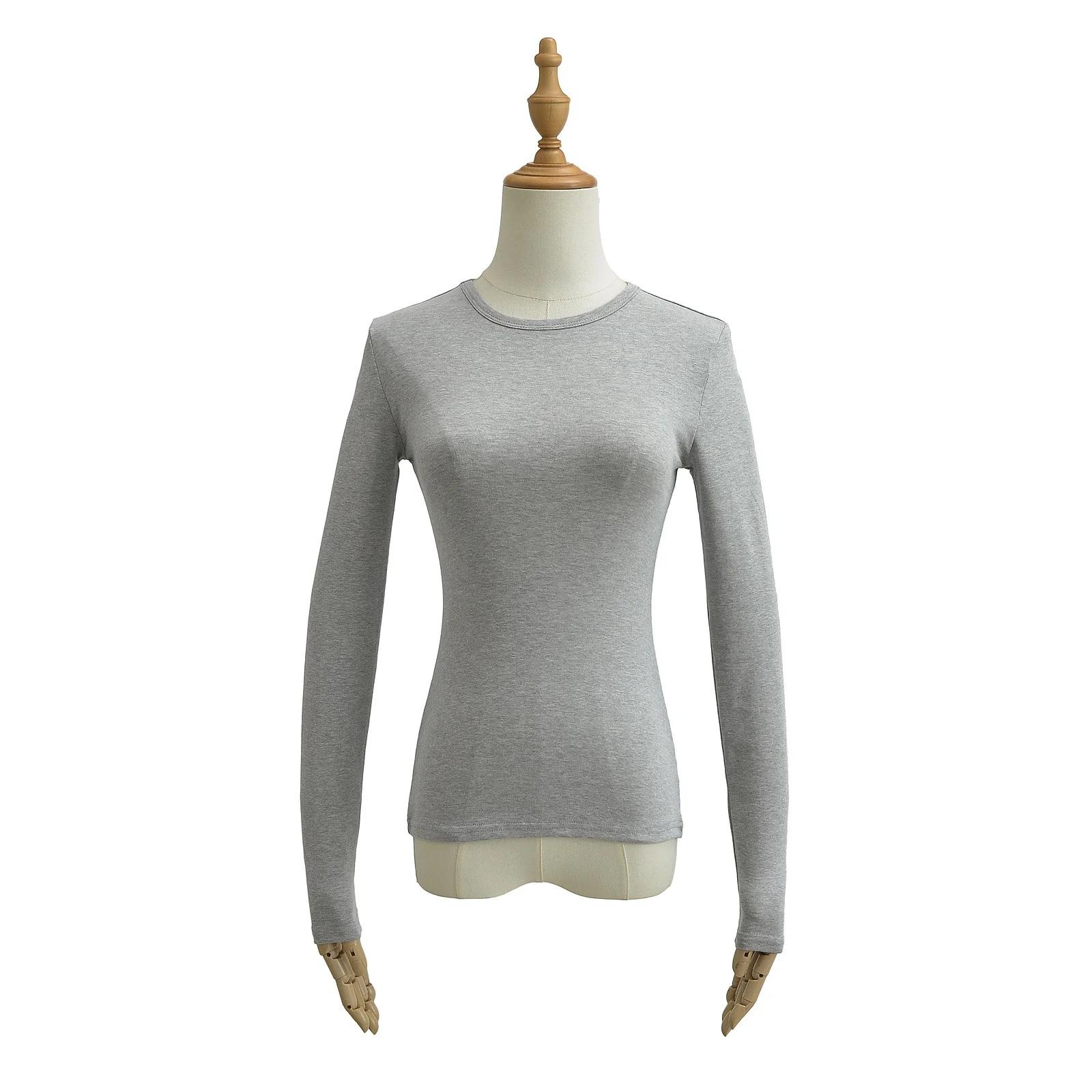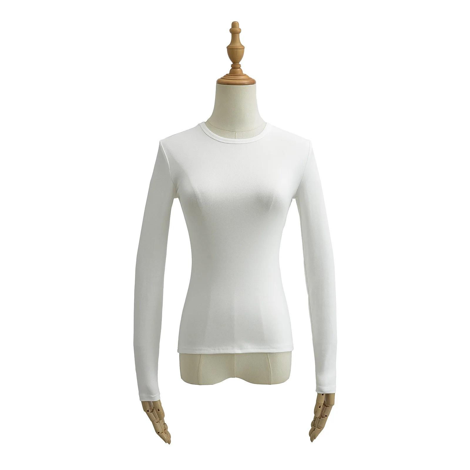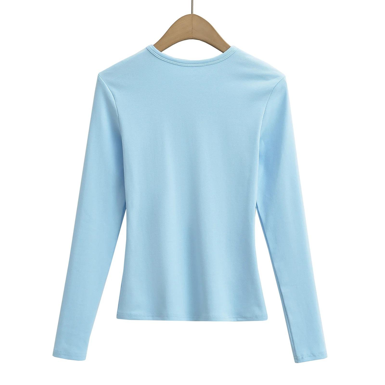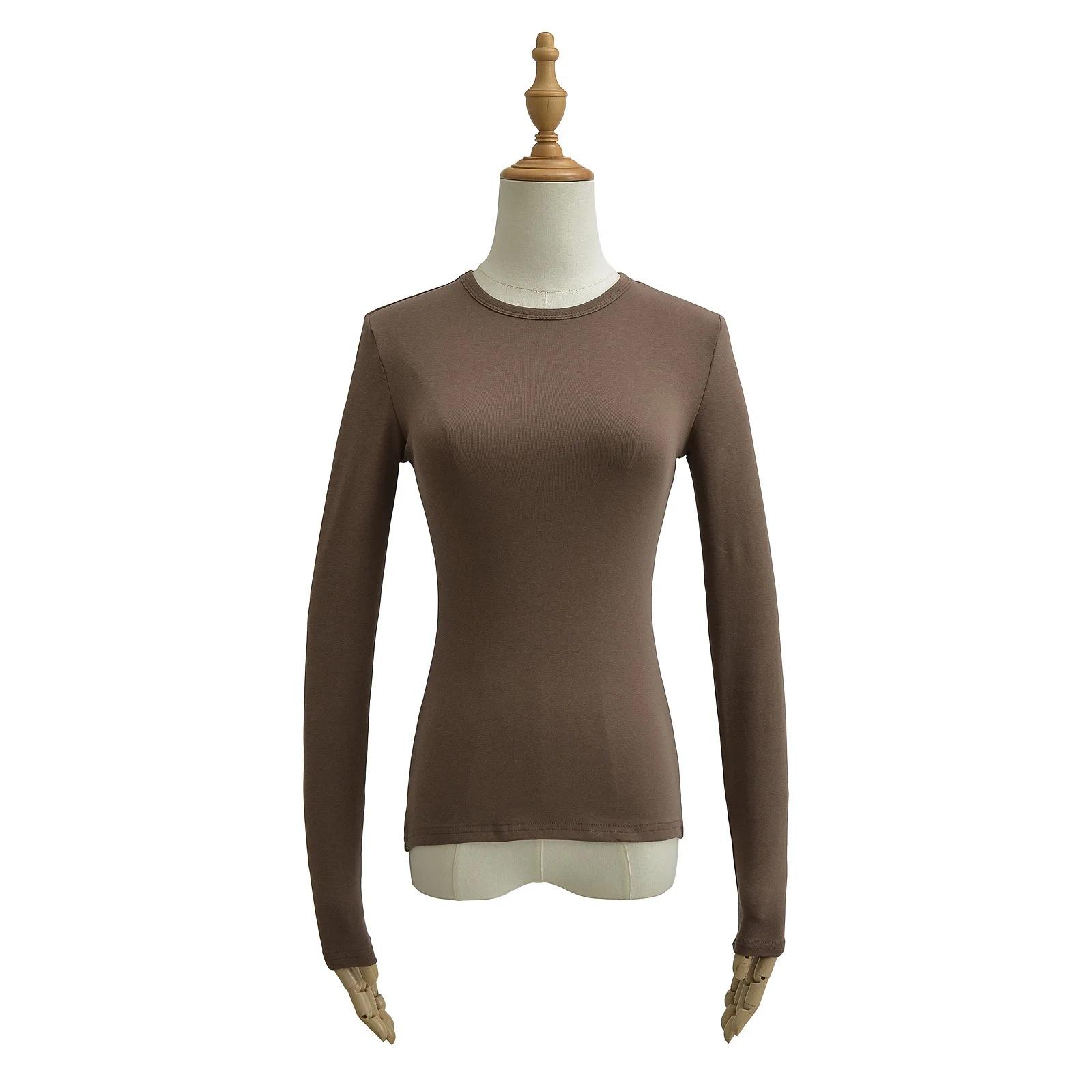Nueva camiseta básica de manga larga versátil con cuello redondo pequeño de estilo europeo y americano para mujer, primavera y otoño, nueva camisa elástica ajustada para mujer