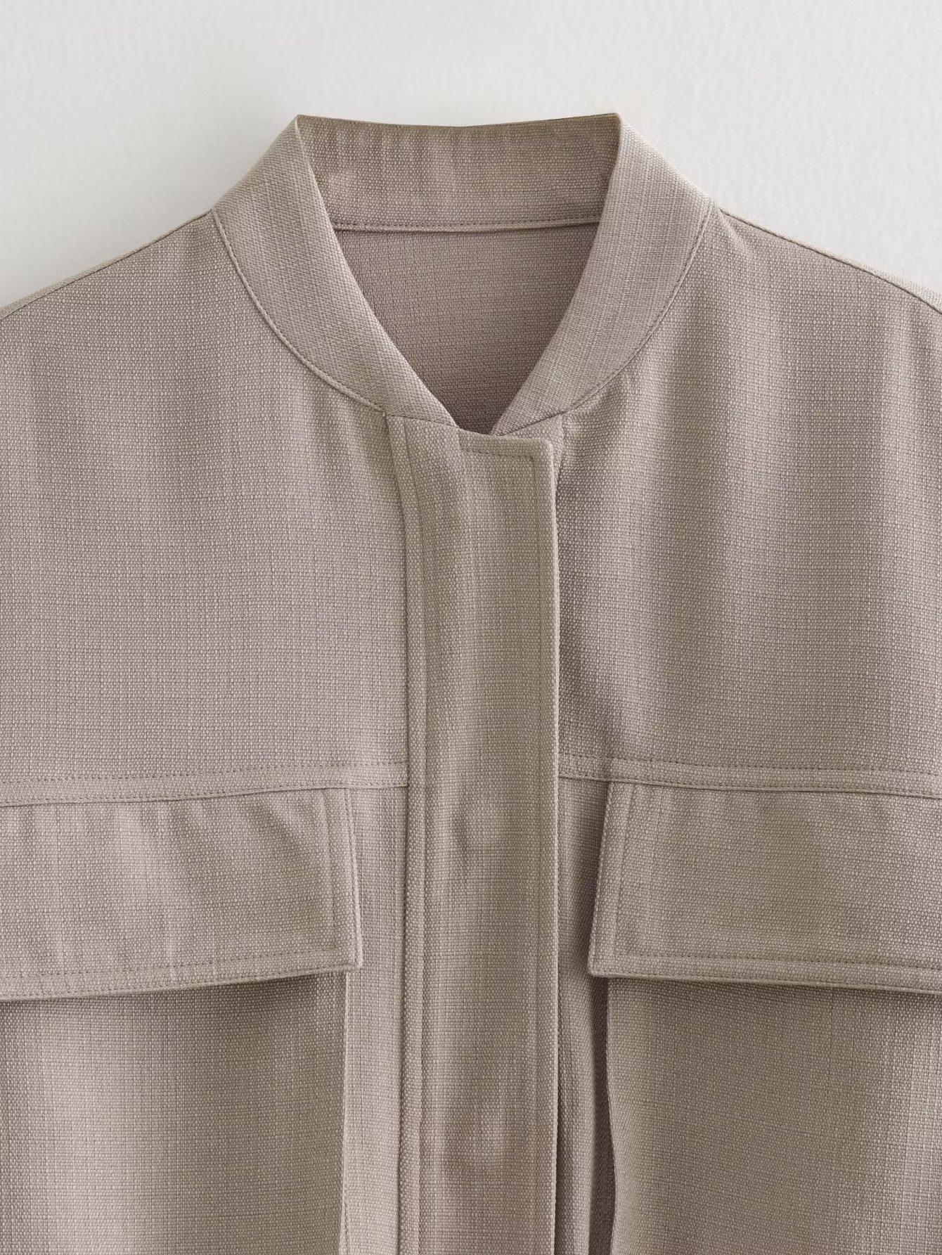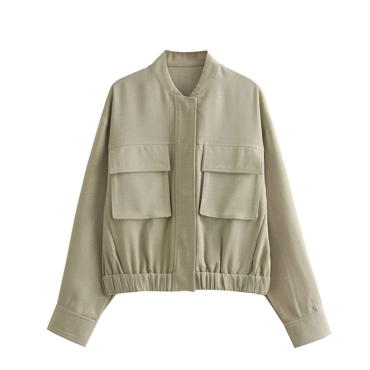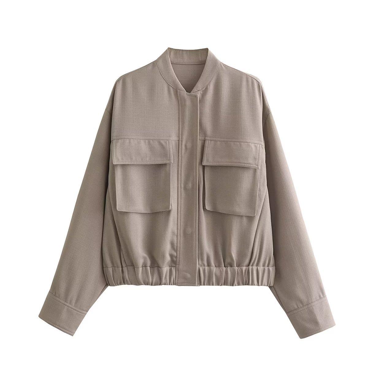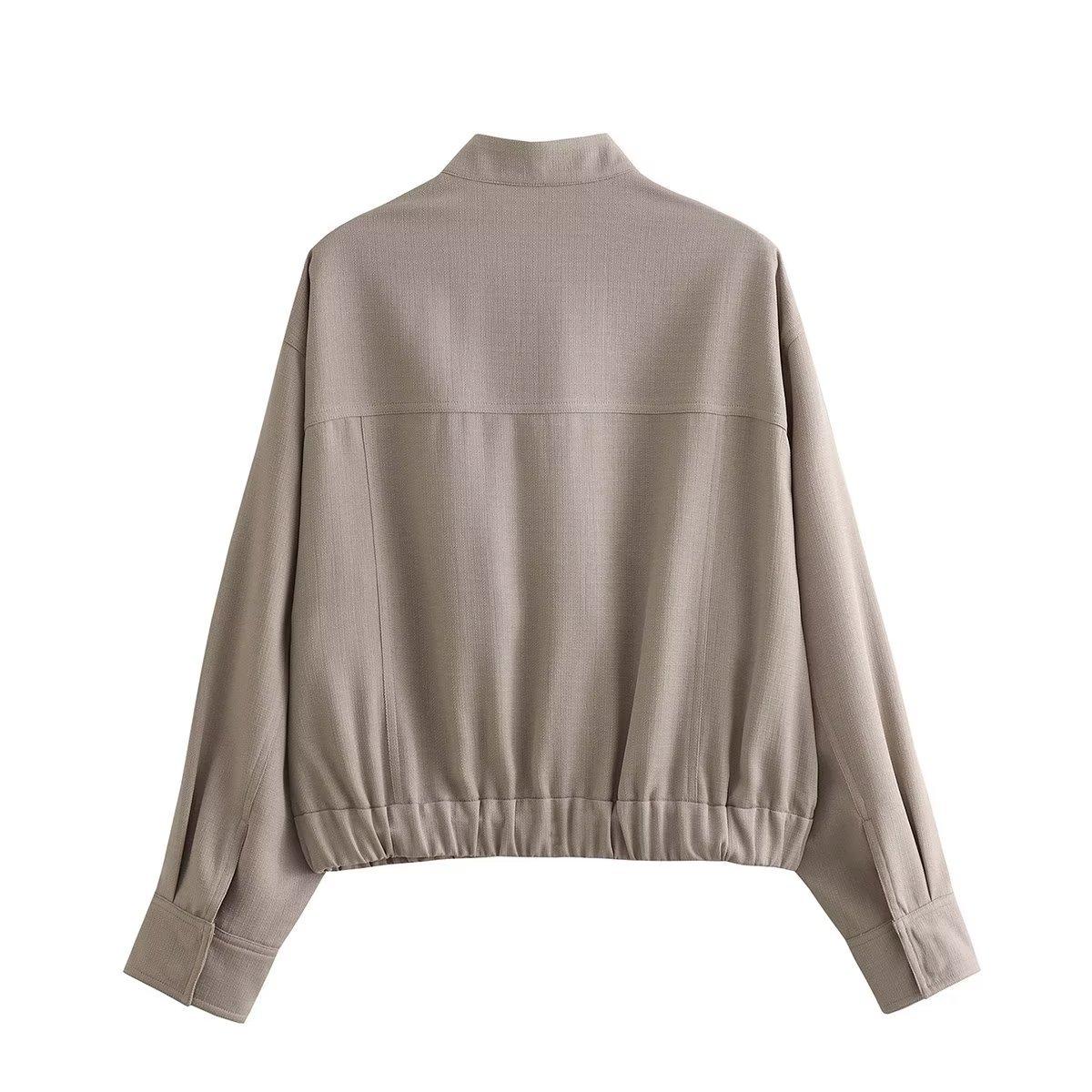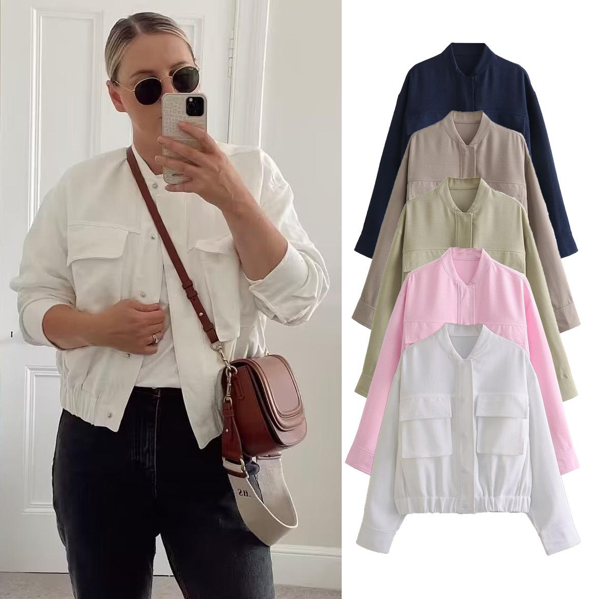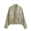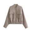 Amazon Europeo y Americano Otoño e Invierno Mujer Algodón y Lino Mezclado Chaqueta Bomber Tops 8Bs9834