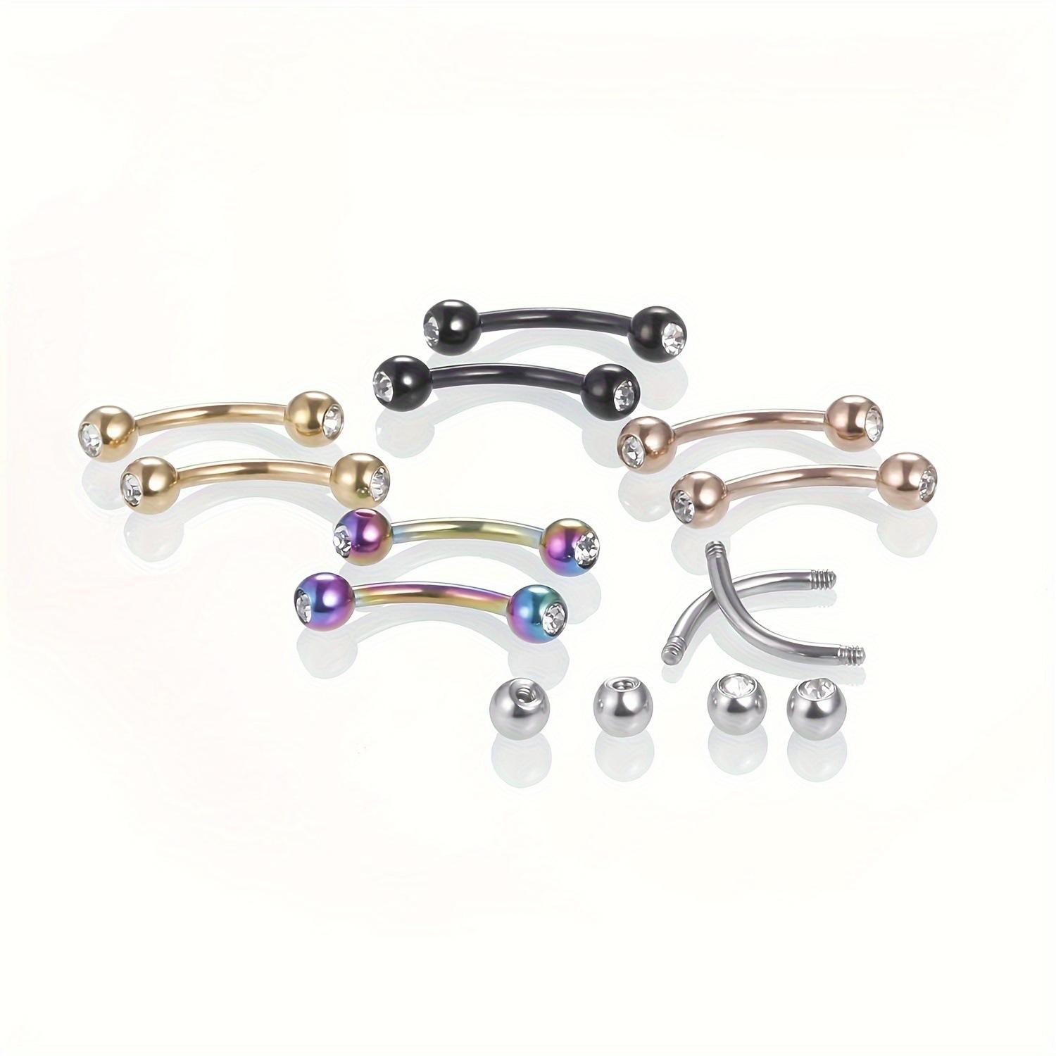 Transfronterizo 10 piezas de acero inoxidable ceja stud diamante circonita bola barra curva piercing joyería traje combinado Amazon temu