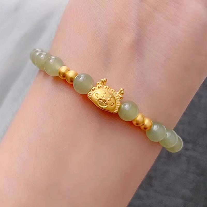 Creativo Simple Un Dragón Empanadillas al Vapor Pulsera Jade Hetian para Mujer Nicho Pulsera Regalo de Cumpleaños Año del Dragón