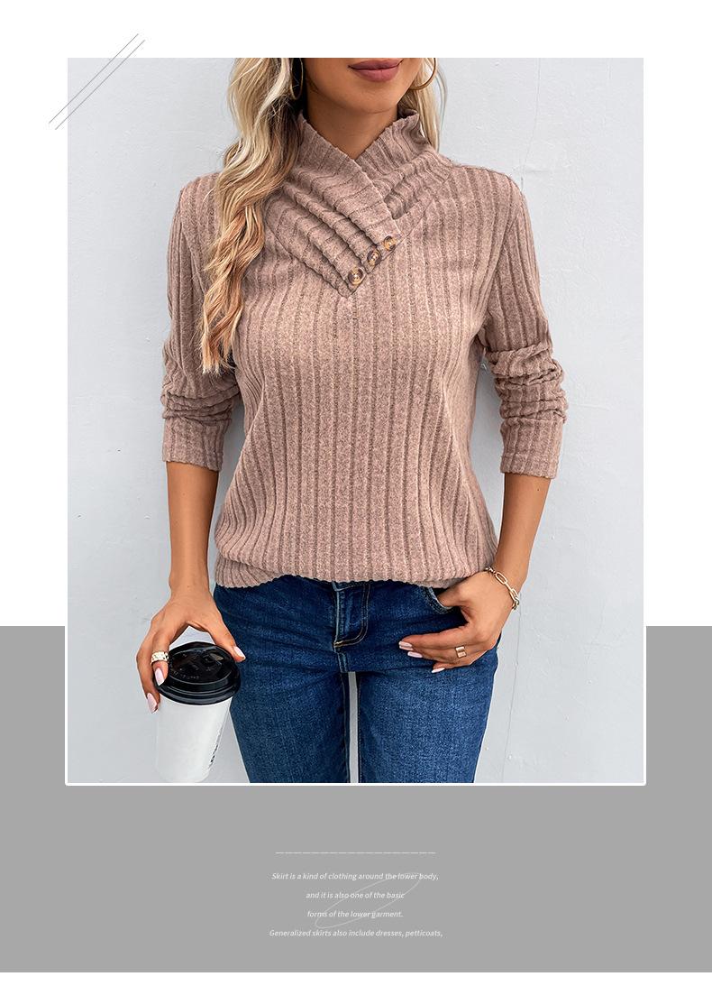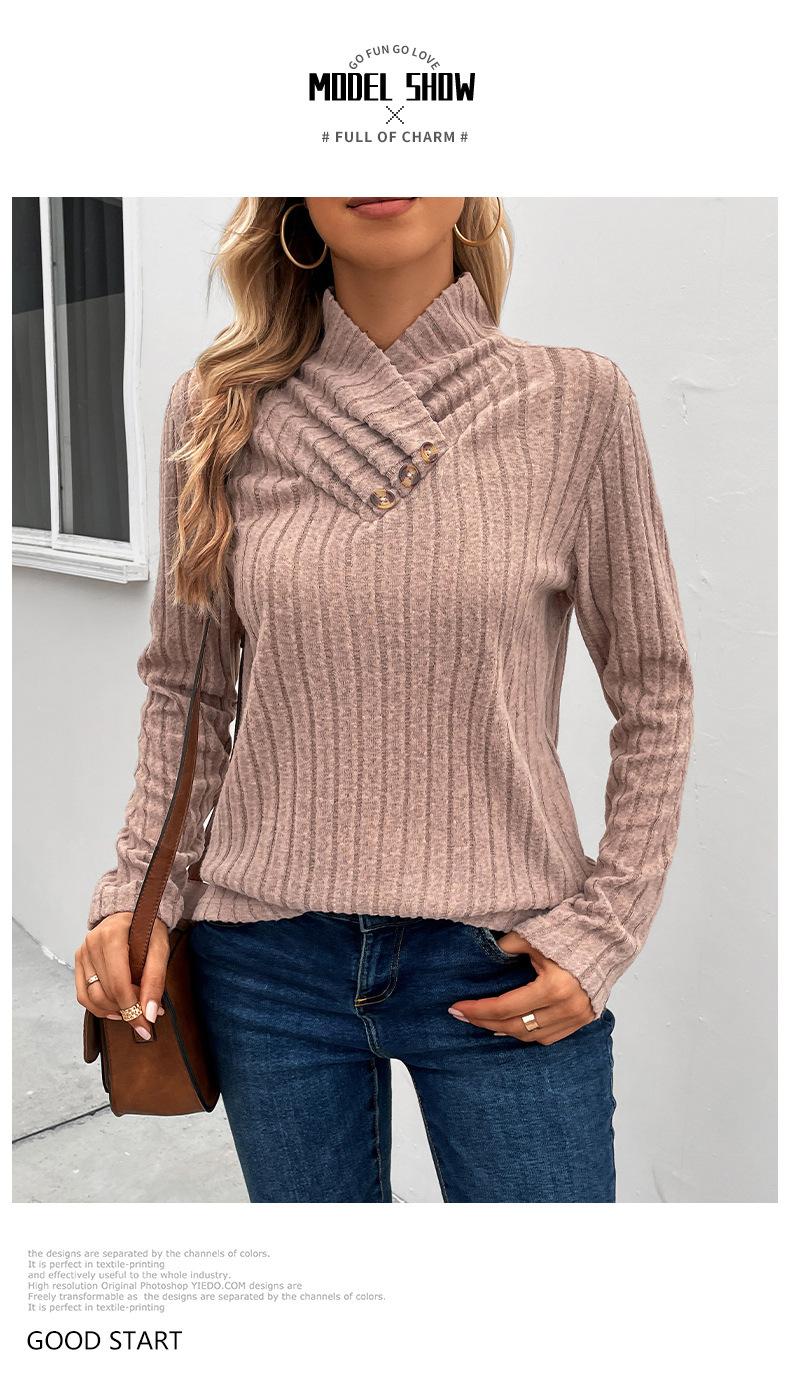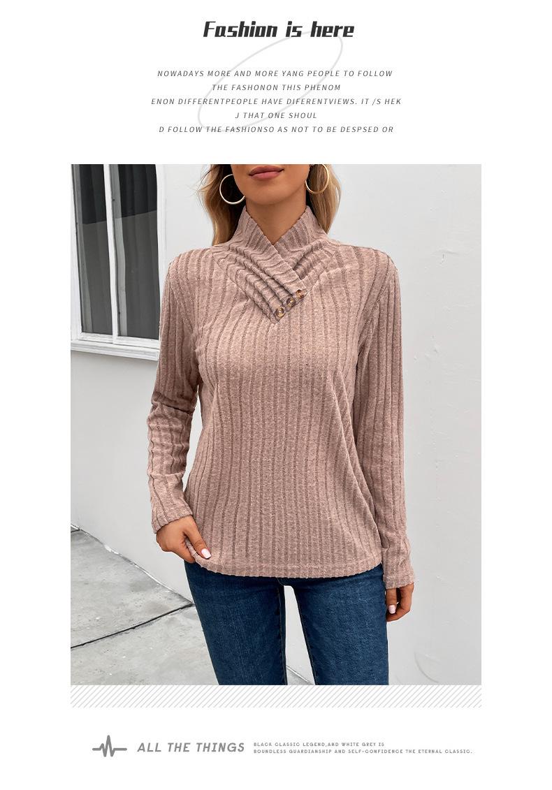 Estación Independiente de Amazon Comercio Exterior 2024 Nuevo Otoño Europeo y Americano para Mujer Top de Color Sólido de Manga Larga con Cuello Medio para Mujer