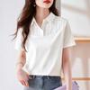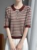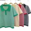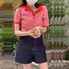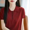 2025 Verano Cómodo y Transpirable Camisa Polo Solapa Holgada Aspecto Adelgazante Corte Delgado Recorte Tencel Camiseta Tejida de Manga Corta para Mujer