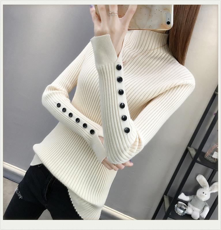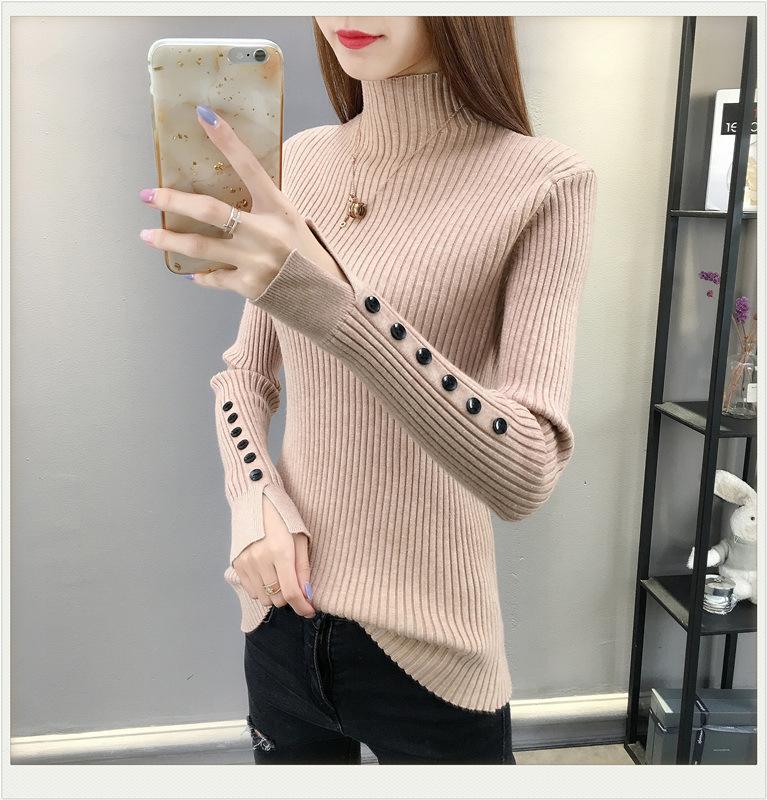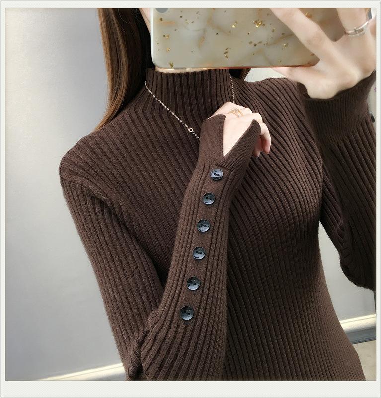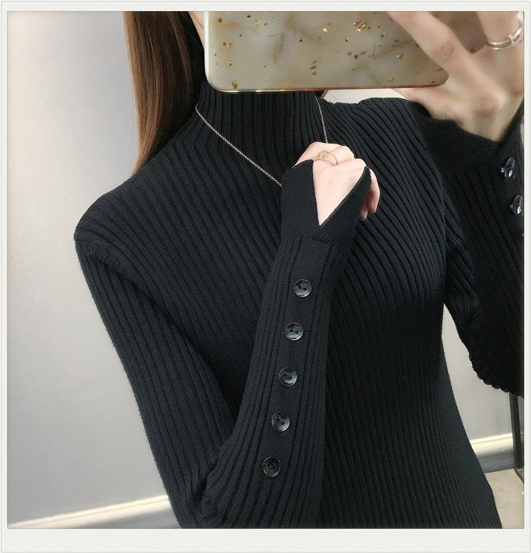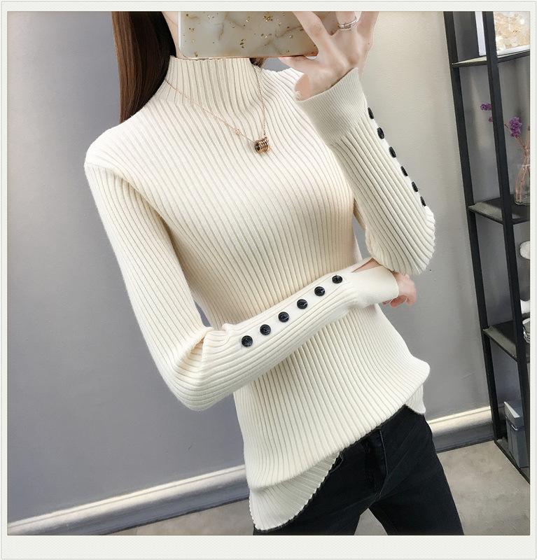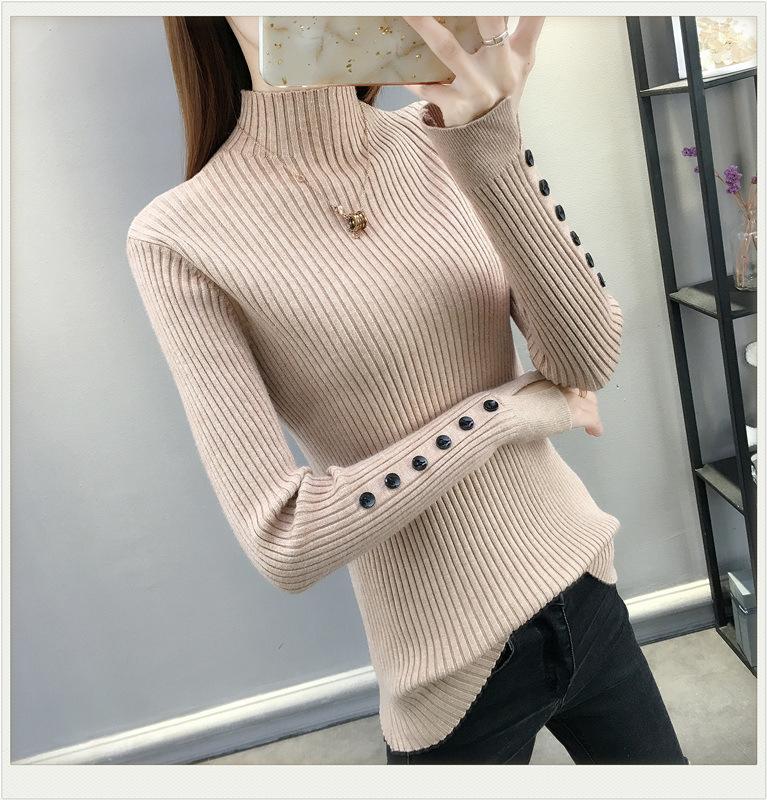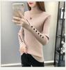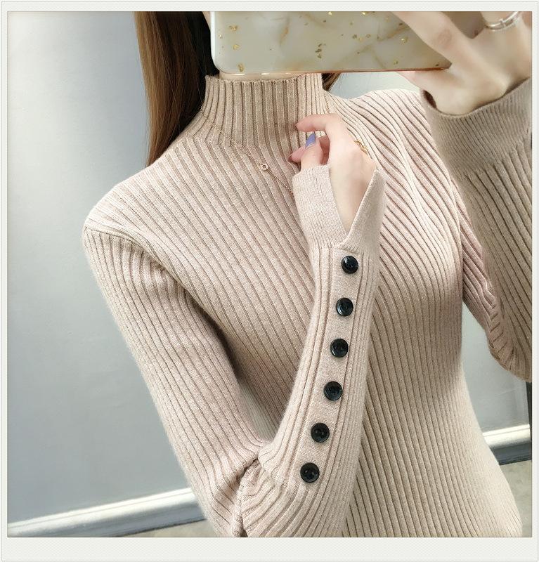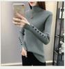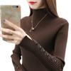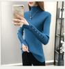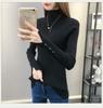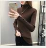 Suéter de Cuello Alto Jersey Camiseta Base Ajustada Tejido de Punto Suéter de Color Sólido Top de Manga Larga Invierno Mujer