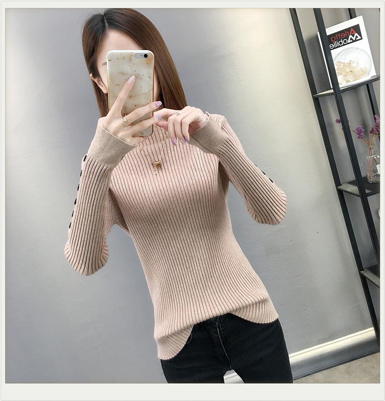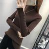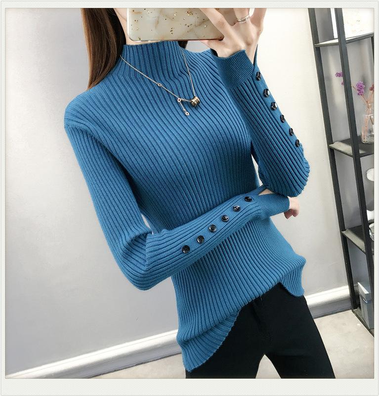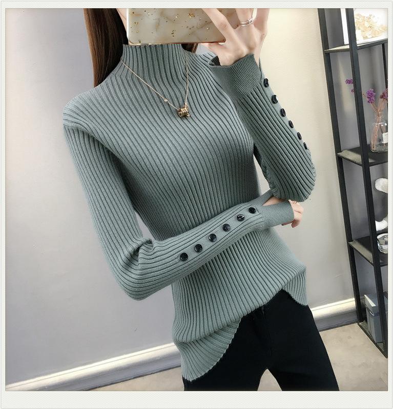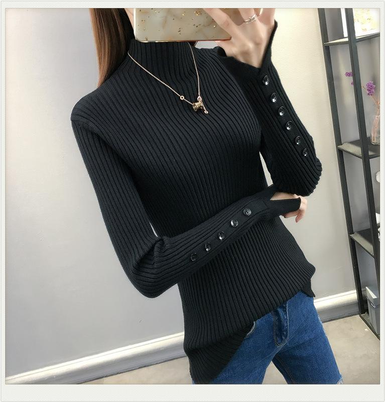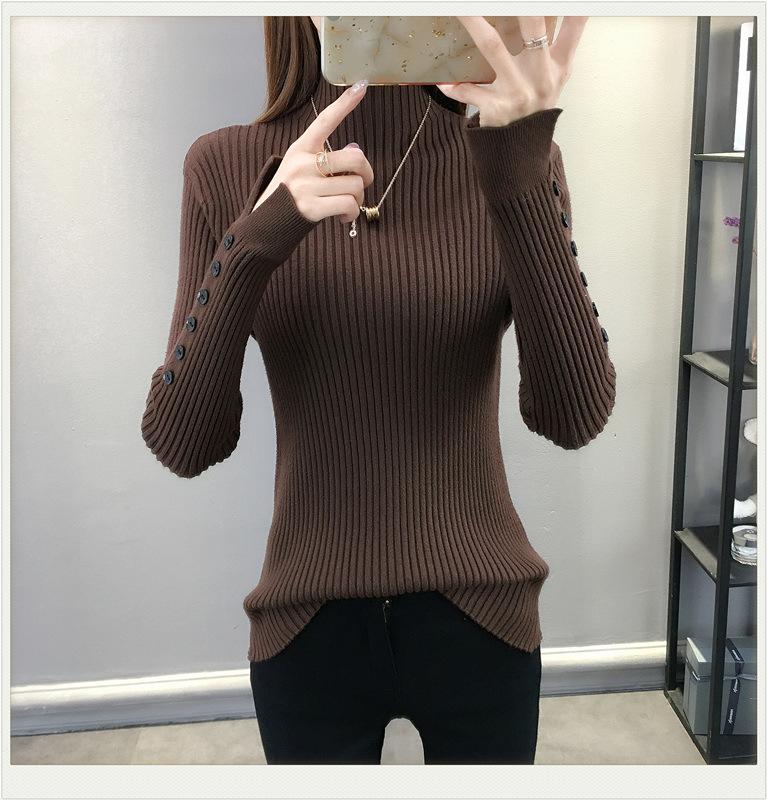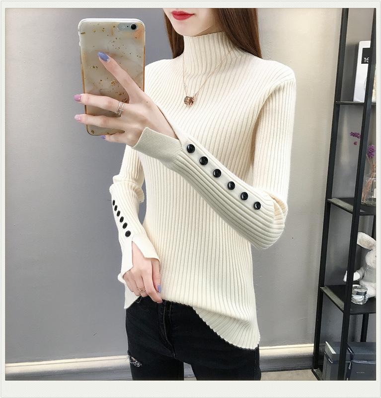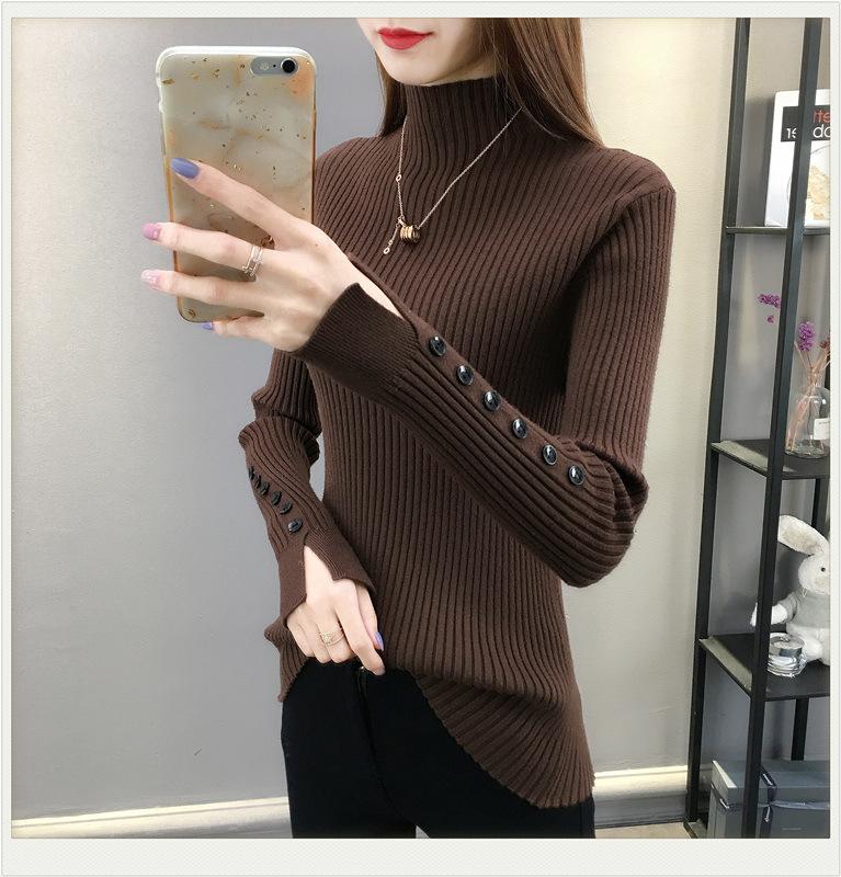 Suéter de Cuello Alto Jersey Camiseta Base Ajustada Tejido de Punto Suéter de Color Sólido Top de Manga Larga Invierno Mujer