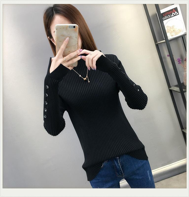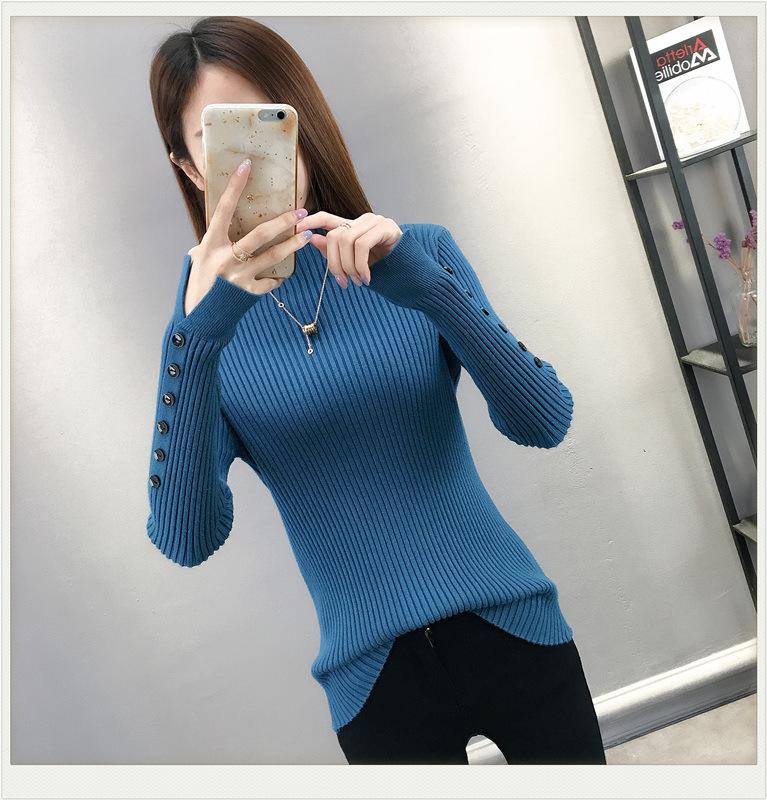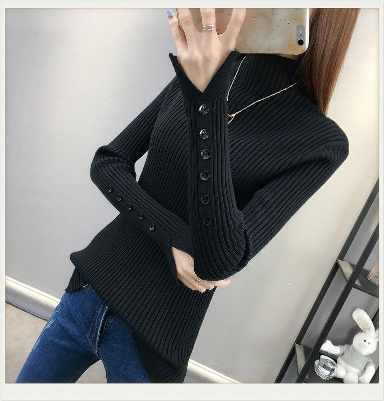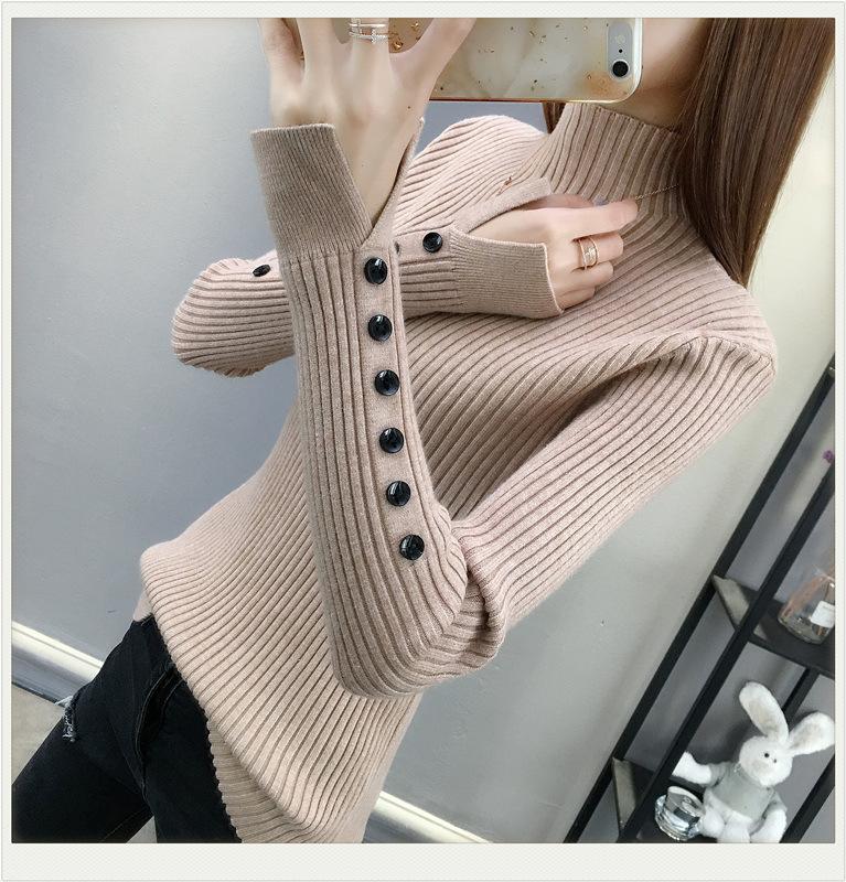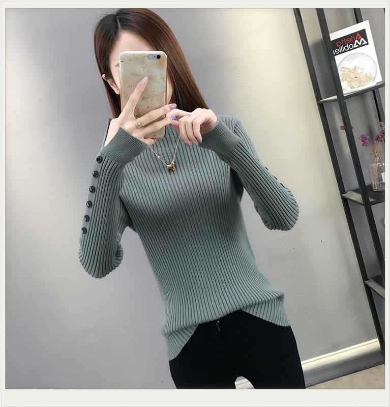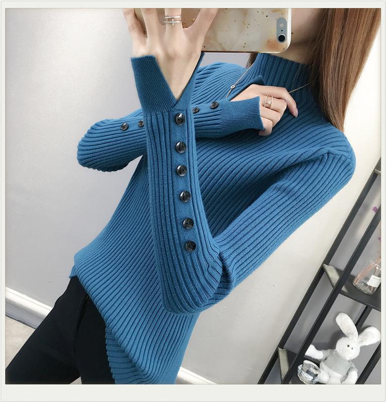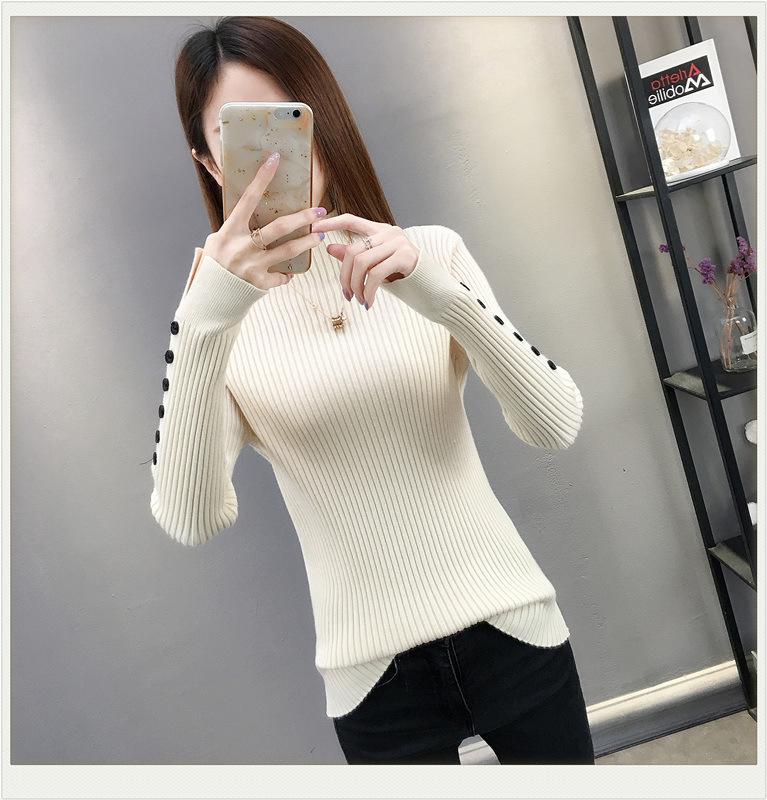 Suéter de Cuello Alto Jersey Camiseta Base Ajustada Tejido de Punto Suéter de Color Sólido Top de Manga Larga Invierno Mujer