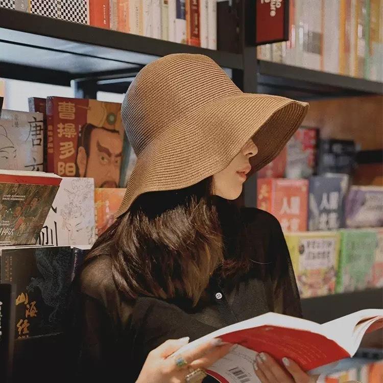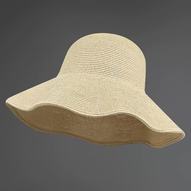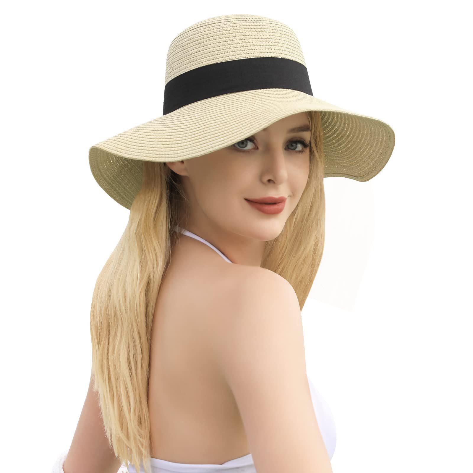 Sombrero de playa para mujer, de ala ancha, de paja, para verano, parasol, de viaje, plegable, con protección UV